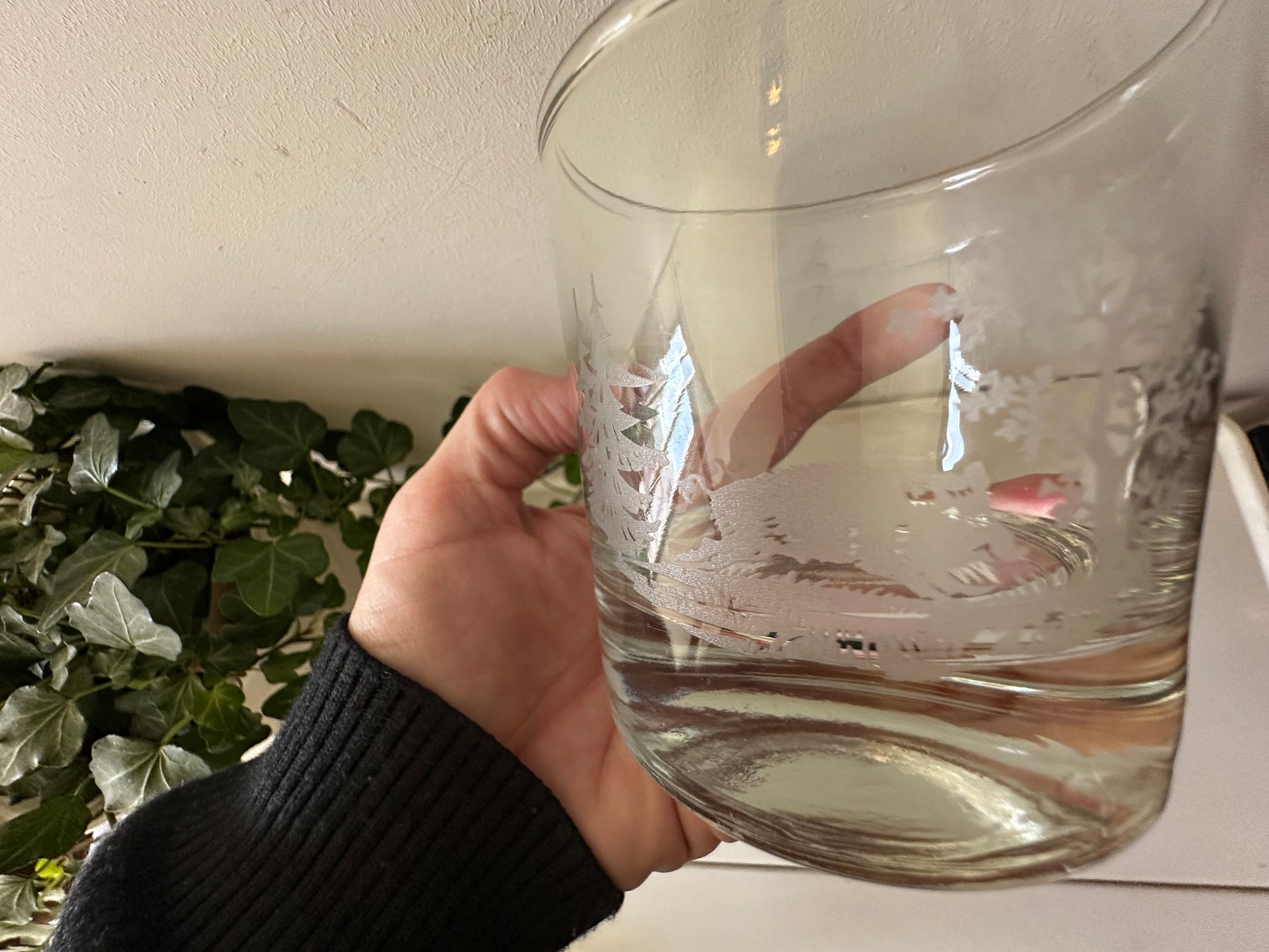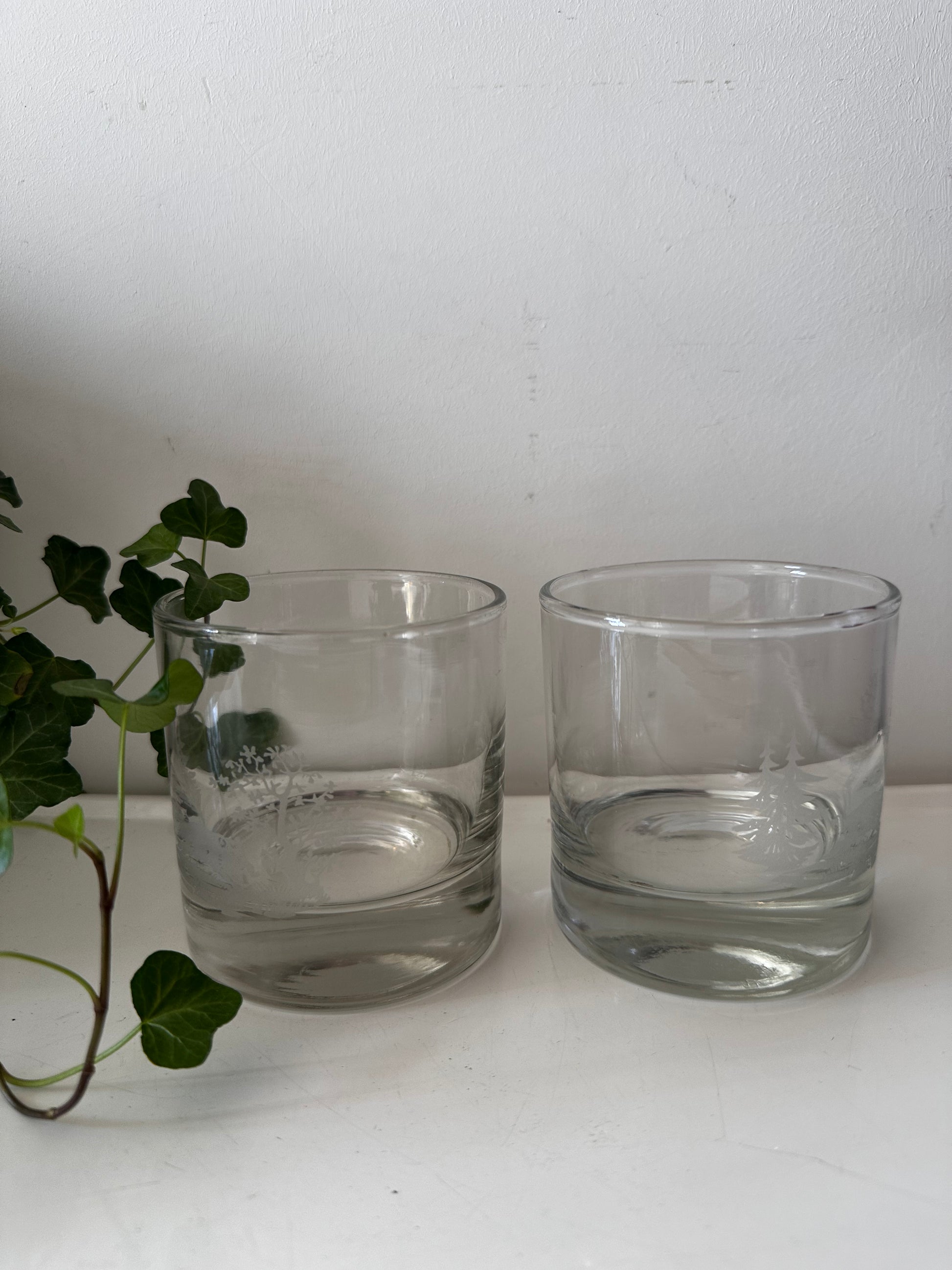 Prachtige set van 2 vintage kristallen whiskeyglazen met een fijn gegraveerd jachttafereel. De glazen hebben een zware, stevige bodem. Ze zijn in een top vintage staat. Q700
