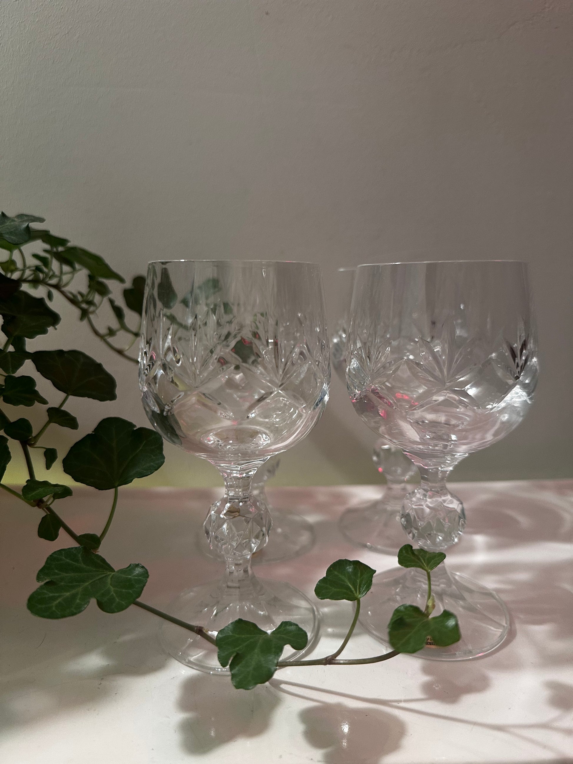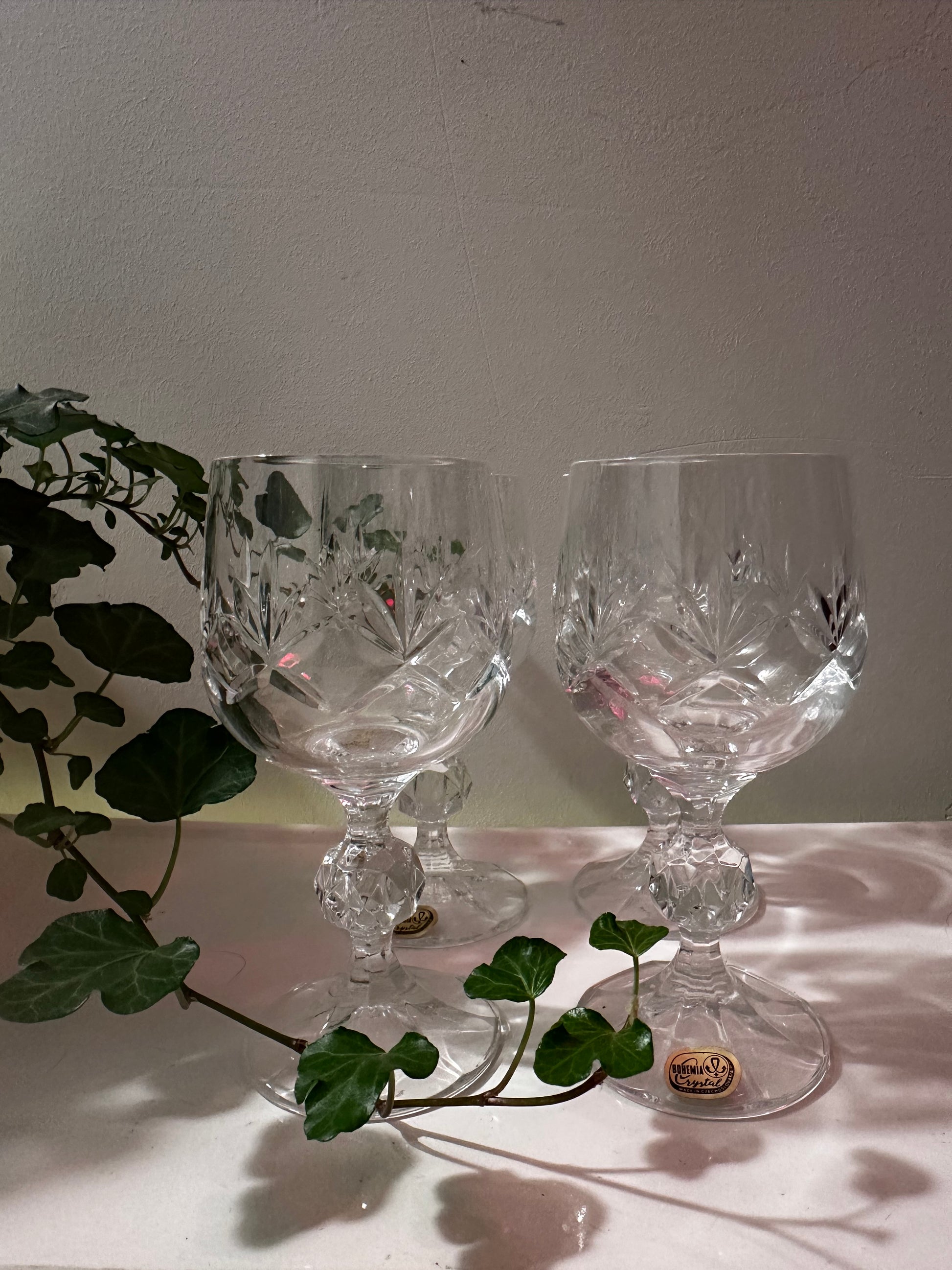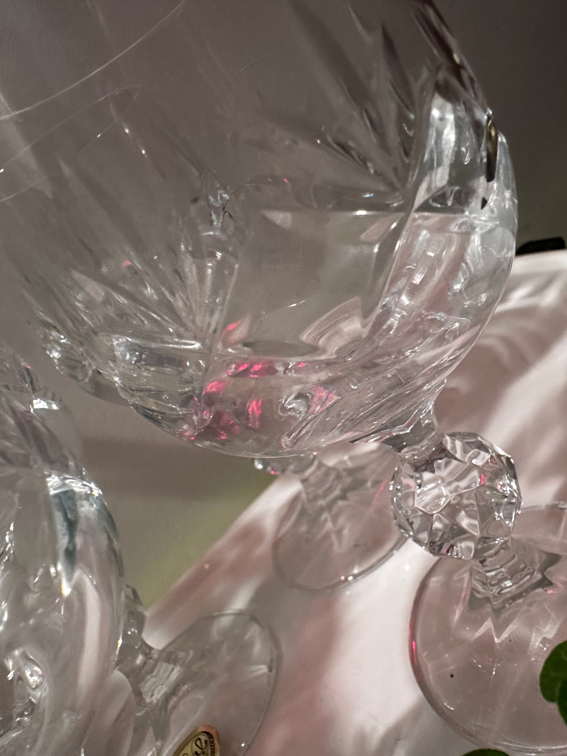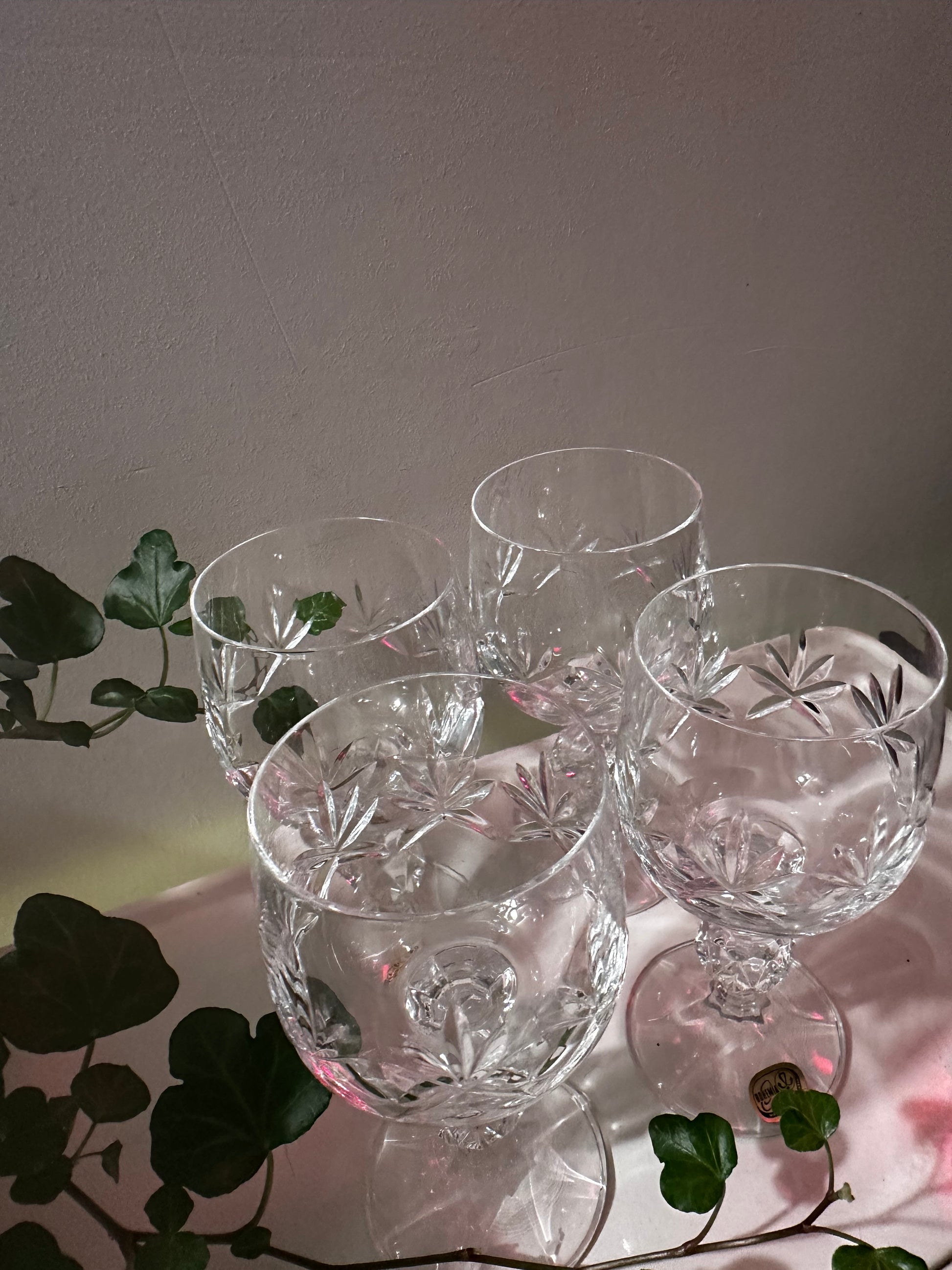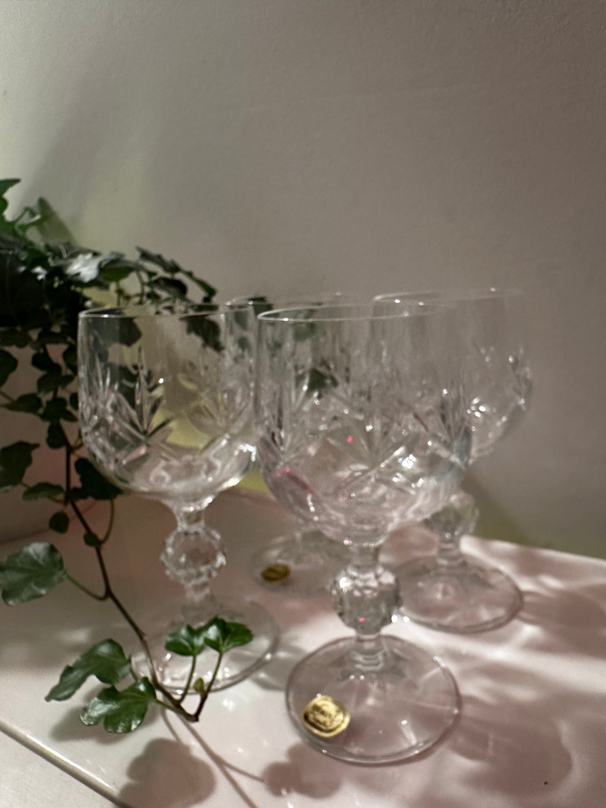 Set van 4 prachtig kristallen wijnglazen . De wijnglazen zijn heel mooi geslepen en hebben een merksticker van echt kristal. Super staat. Hoe leuk zijn deze voor de feestdagen?