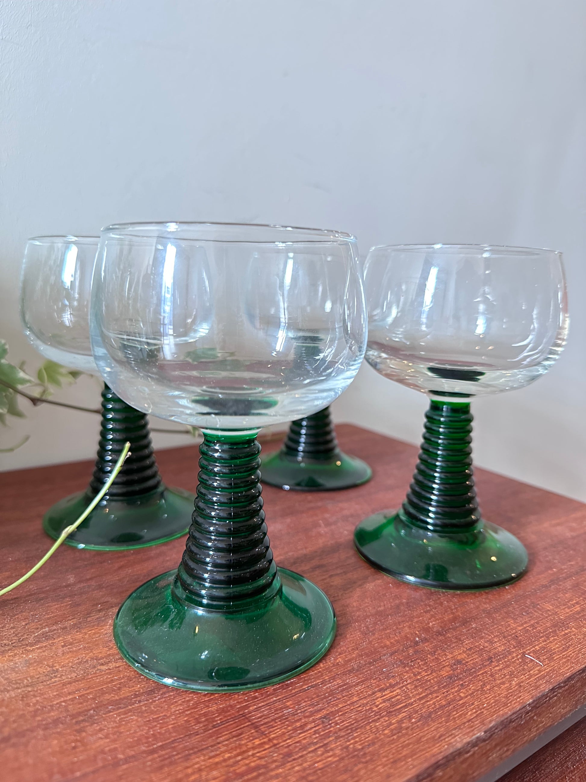 In een geweldige staat deze Roemer glazen met kenmerkende groene voet met de mooie ribbels. Dit zijn de grotere modellen. Afkomstig uit Duitsland rond de jaren 70