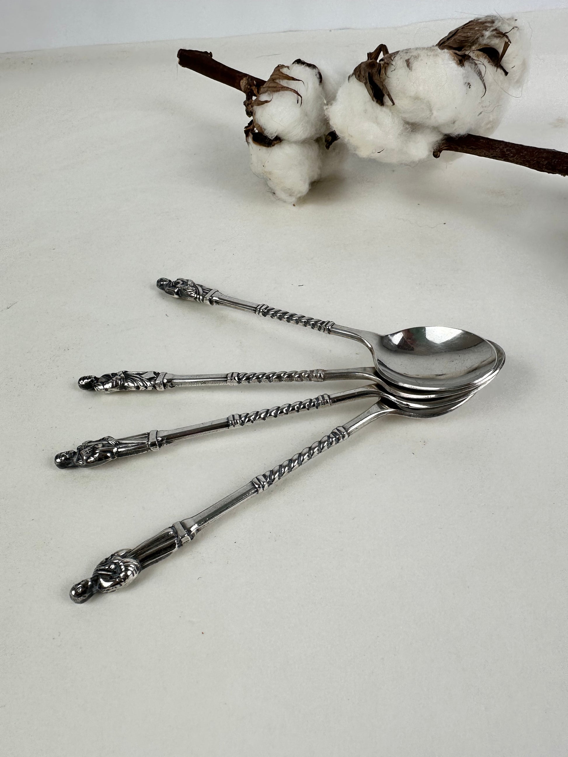 4 hele mooie verzilverde koffie of thee lepeltjes. In een hele mooie vintage staat. De lepeltjes hebben een zilvermerkje