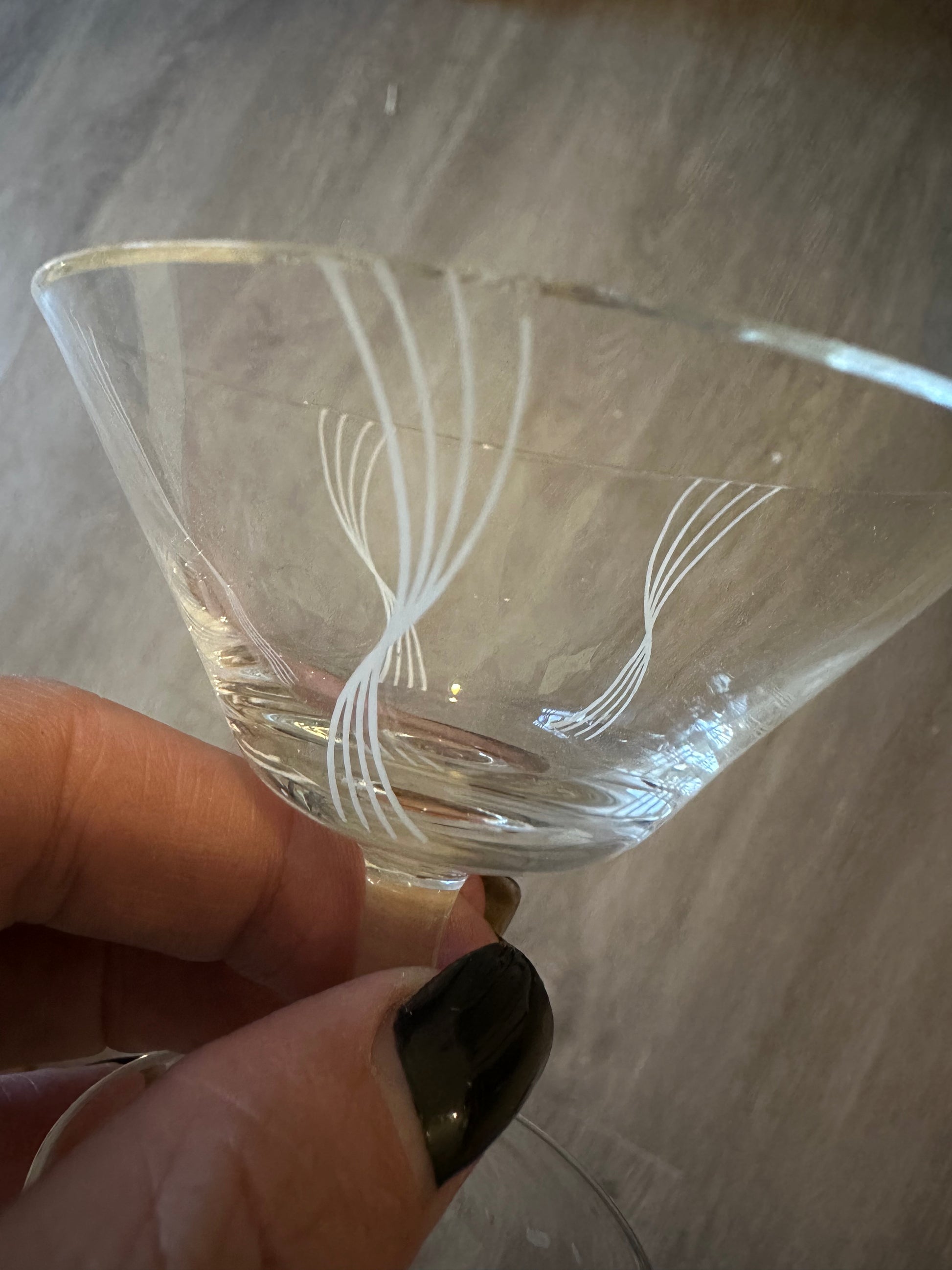 Prachtig mooie vintage kristallen borrelglaasjes. In een perfecte vintage staat. Heel dun glas met een wit gegraveerd golfje in het glas. Glaasjes komen uit Duitsland rond de jaren 60.