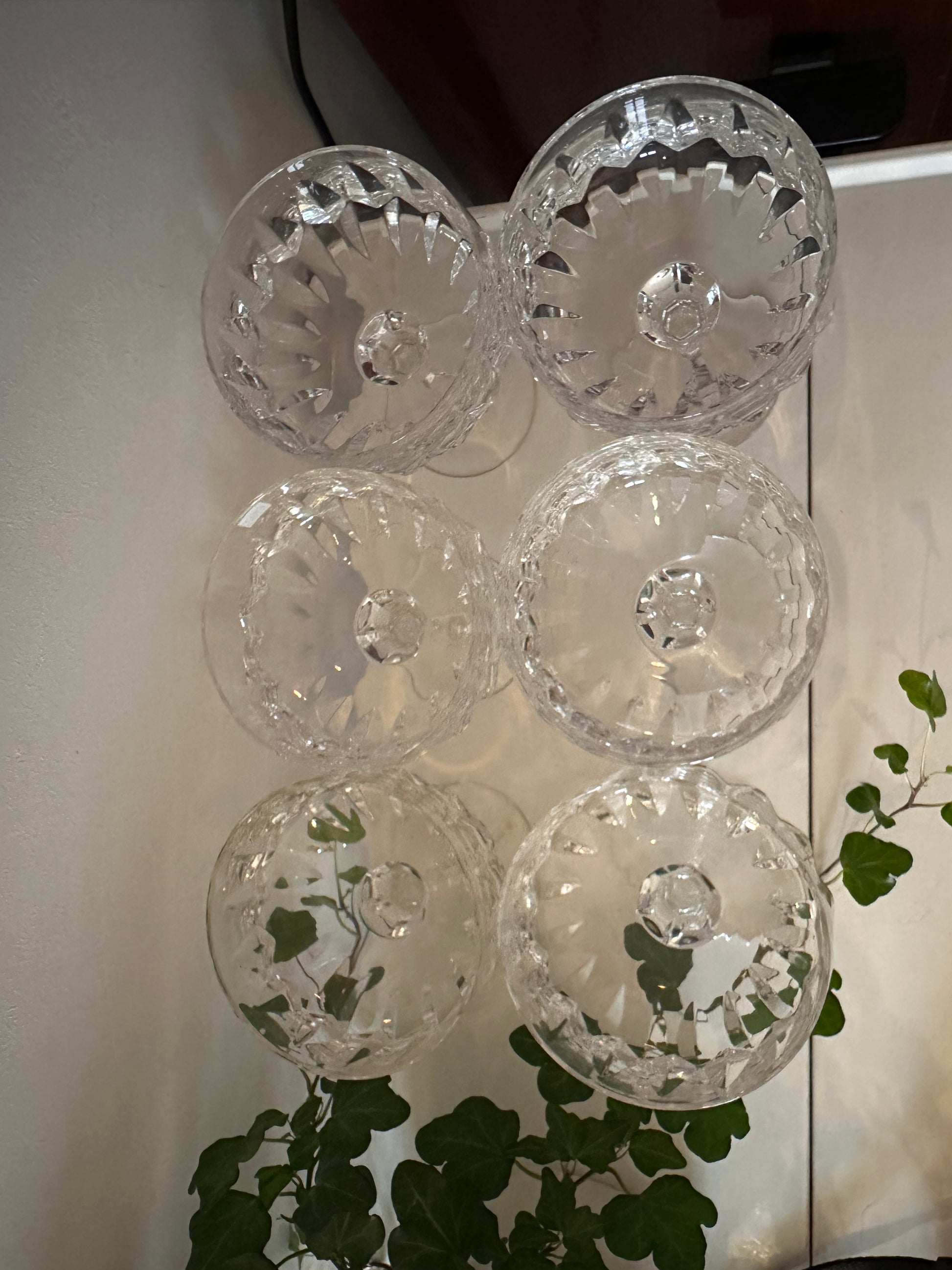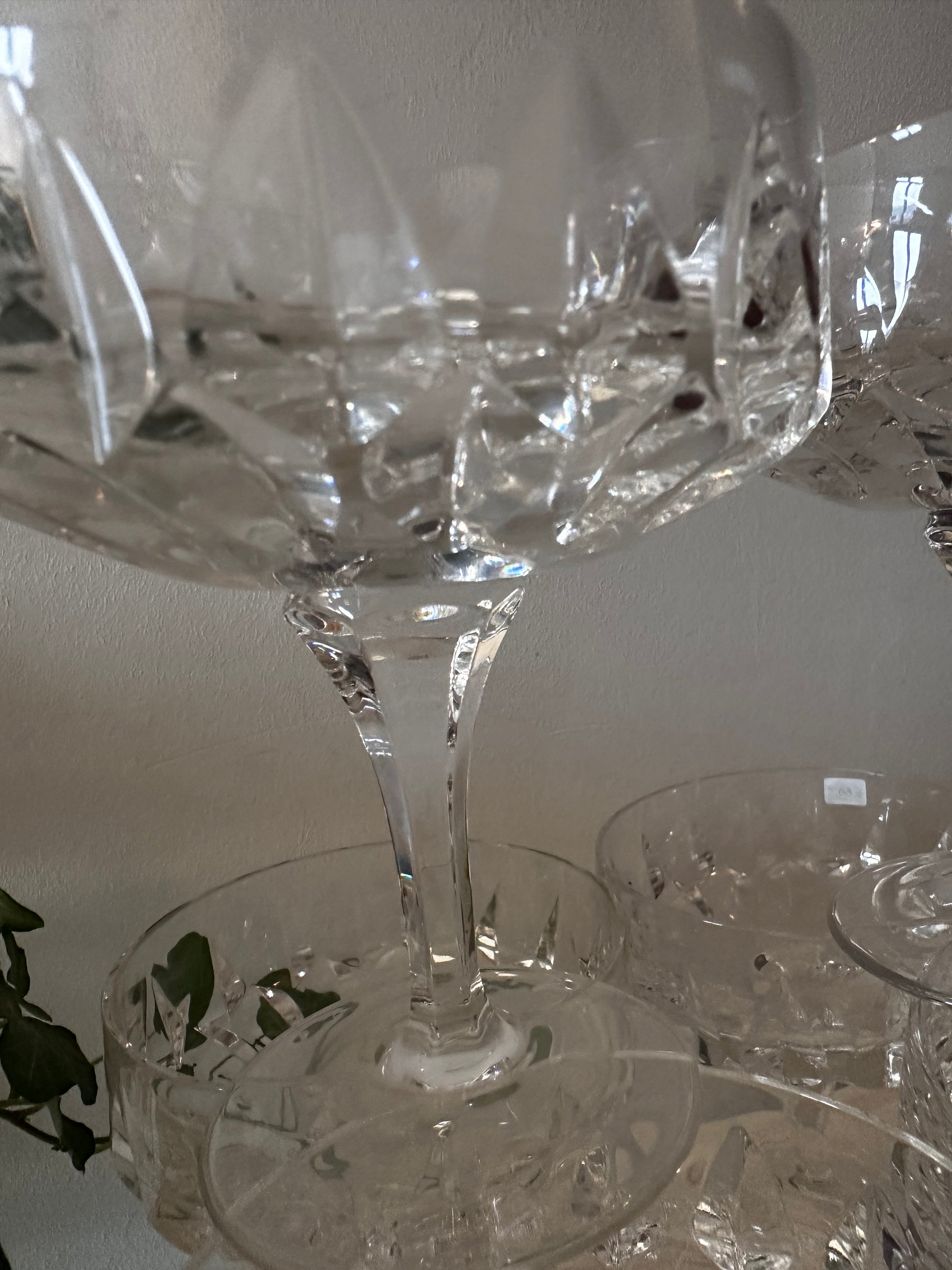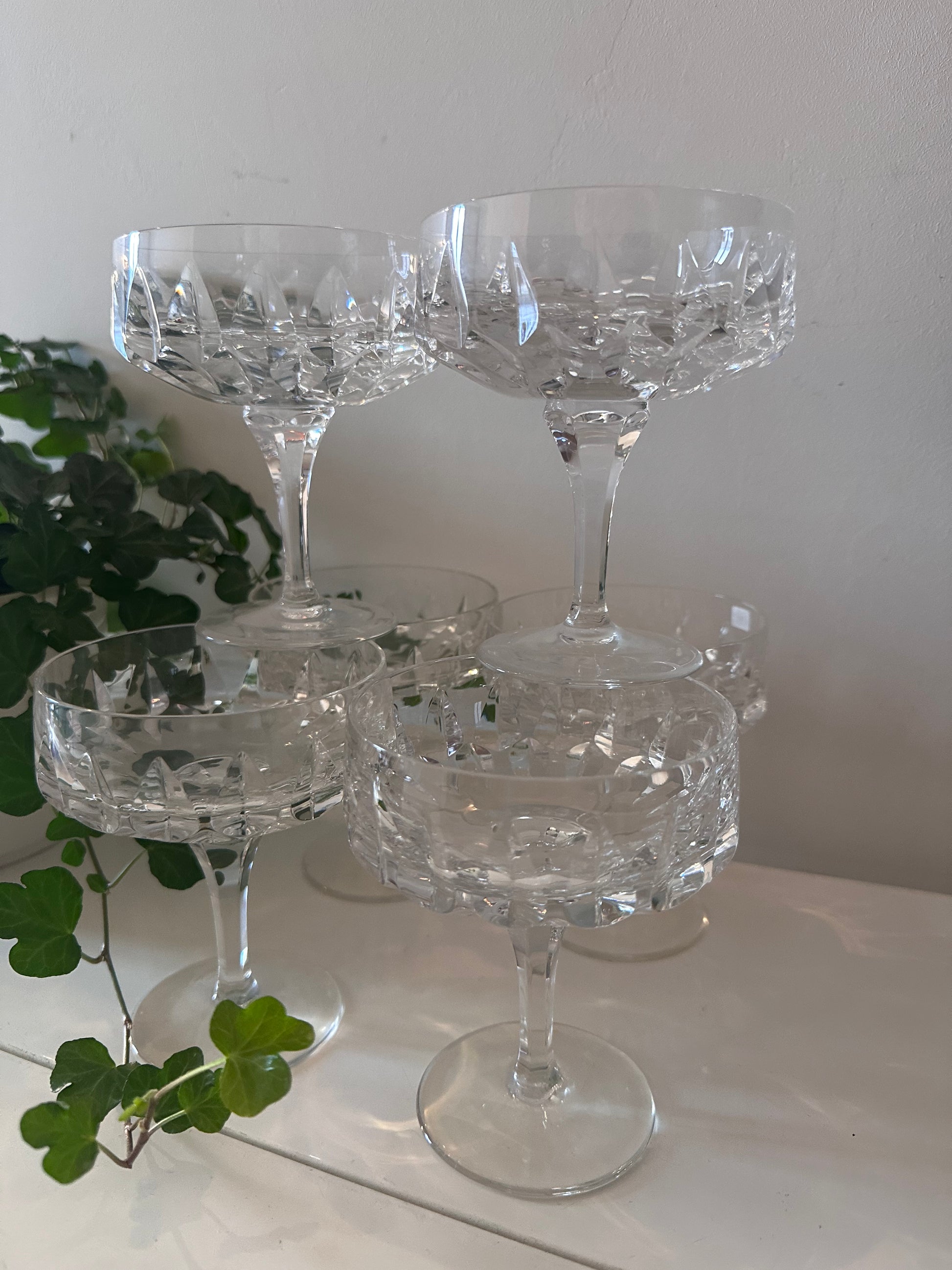 Set van 6 waanzinnig mooie coupe champagne glazen. In een top staat. Glazen zijn in een geslepen design en staan super classy op een mooi gedekte tafel.