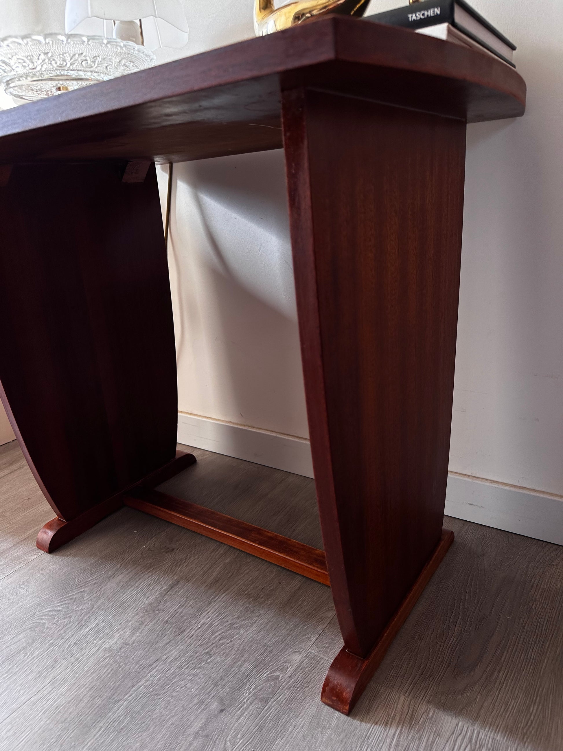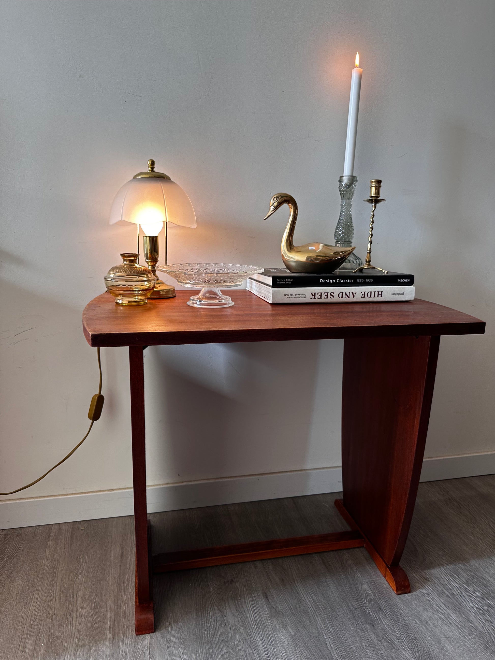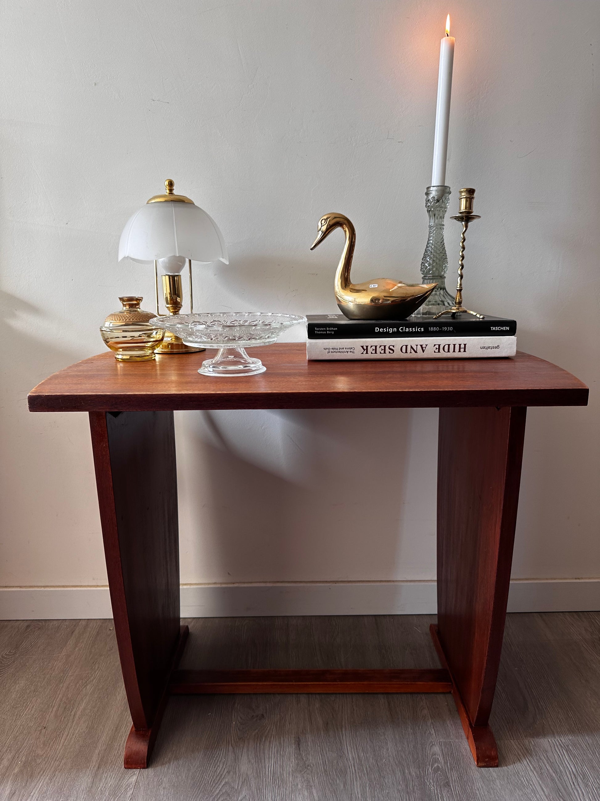 Een te gek art deco bijzettafeltje. Tafeltje is in een mooie vintage staat met gebruikssporen passend bij de leeftijd. Tafeltje is schoongemaakt en eeer opnieuw in de olie gezet. Tafeltje is mooi vorm gegeven ronde zijkanten. Super tafeltje voor een vintage of een wat strakker interieur.