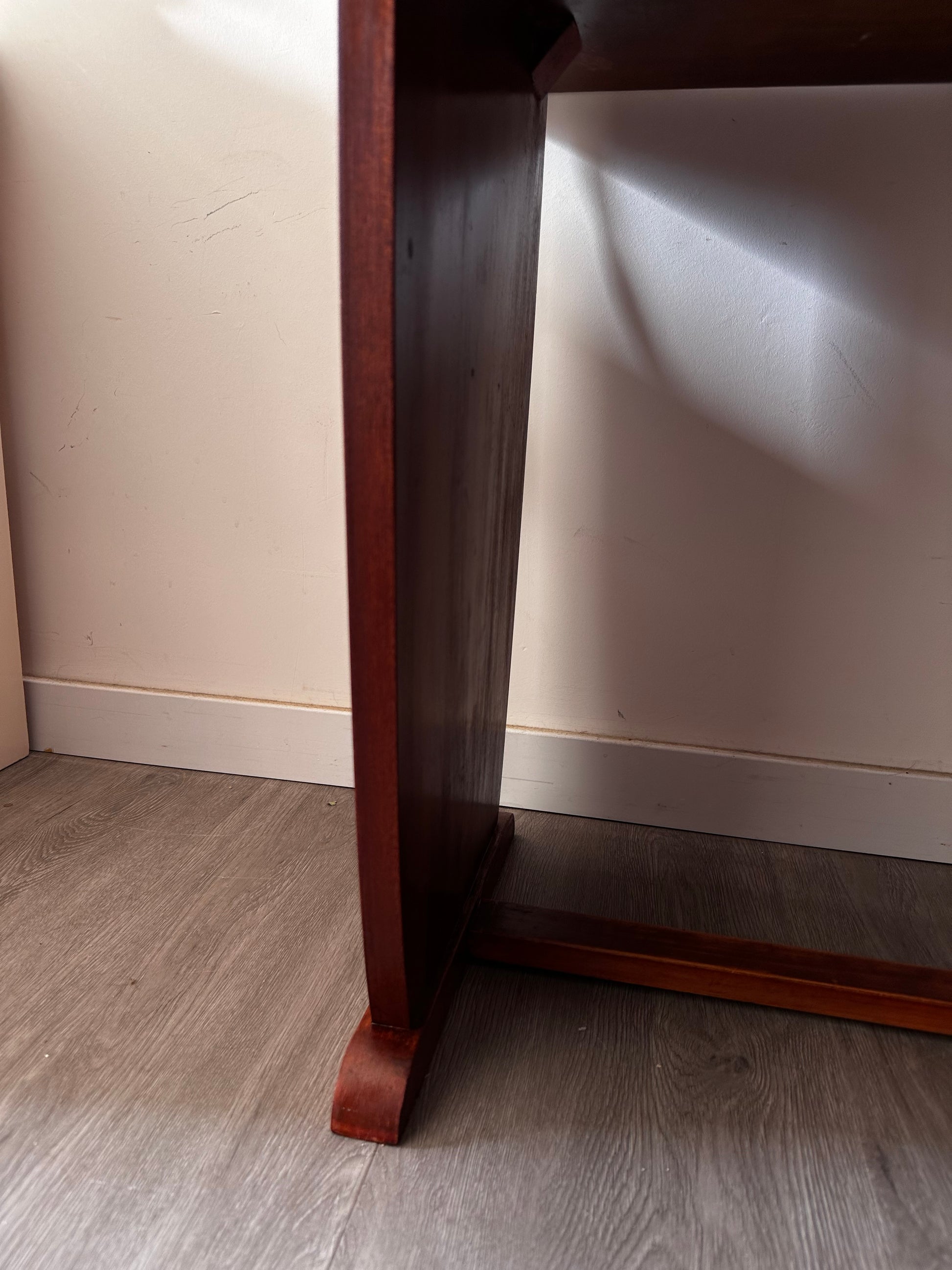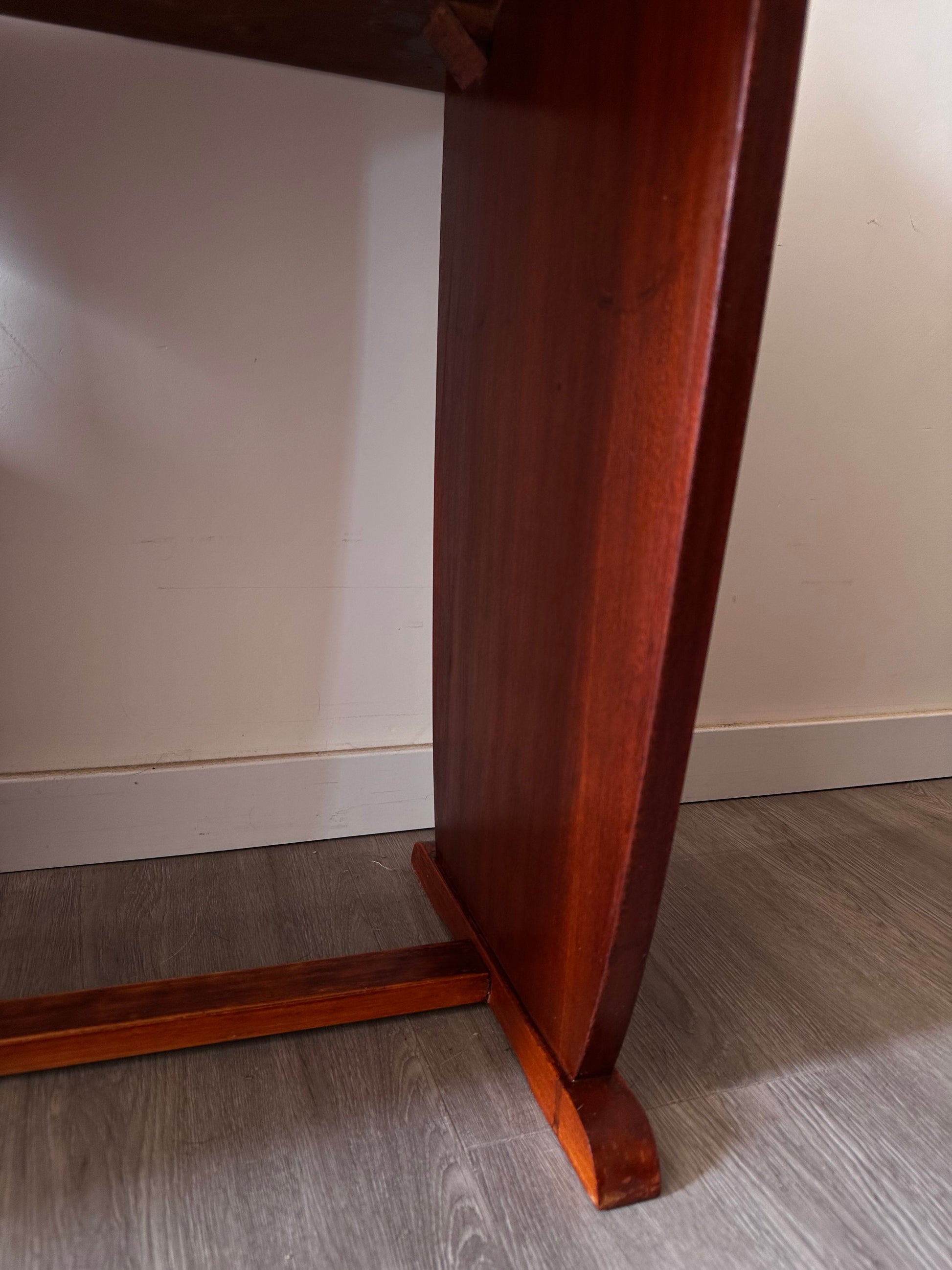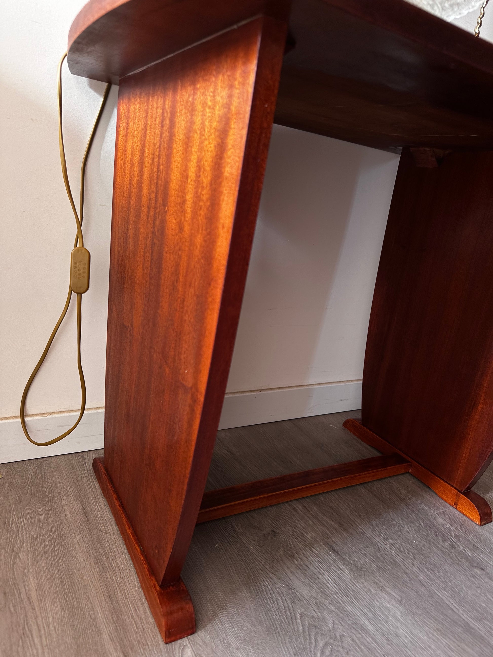 Een te gek art deco bijzettafeltje. Tafeltje is in een mooie vintage staat met gebruikssporen passend bij de leeftijd. Tafeltje is schoongemaakt en eeer opnieuw in de olie gezet. Tafeltje is mooi vorm gegeven ronde zijkanten. Super tafeltje voor een vintage of een wat strakker interieur.