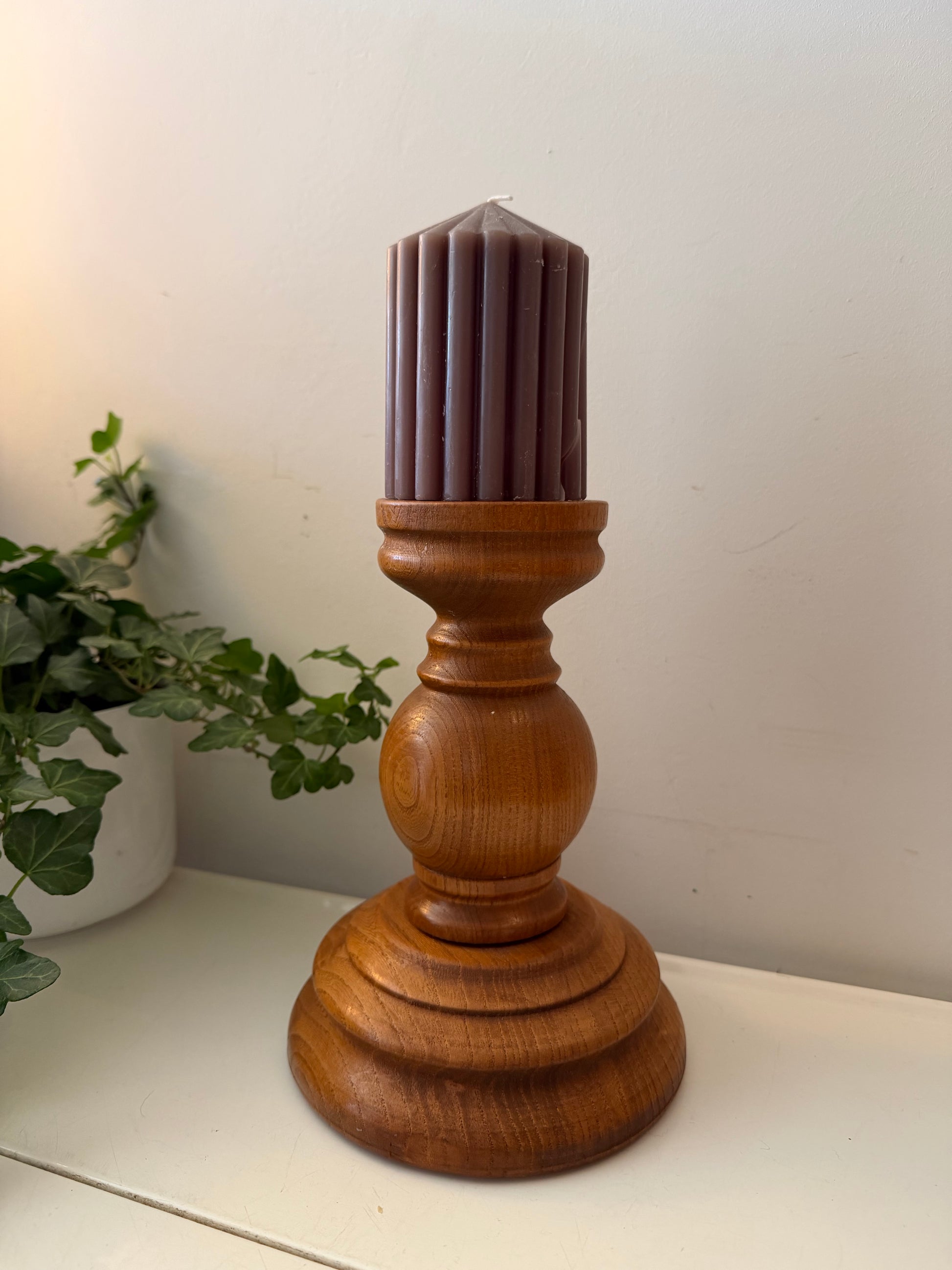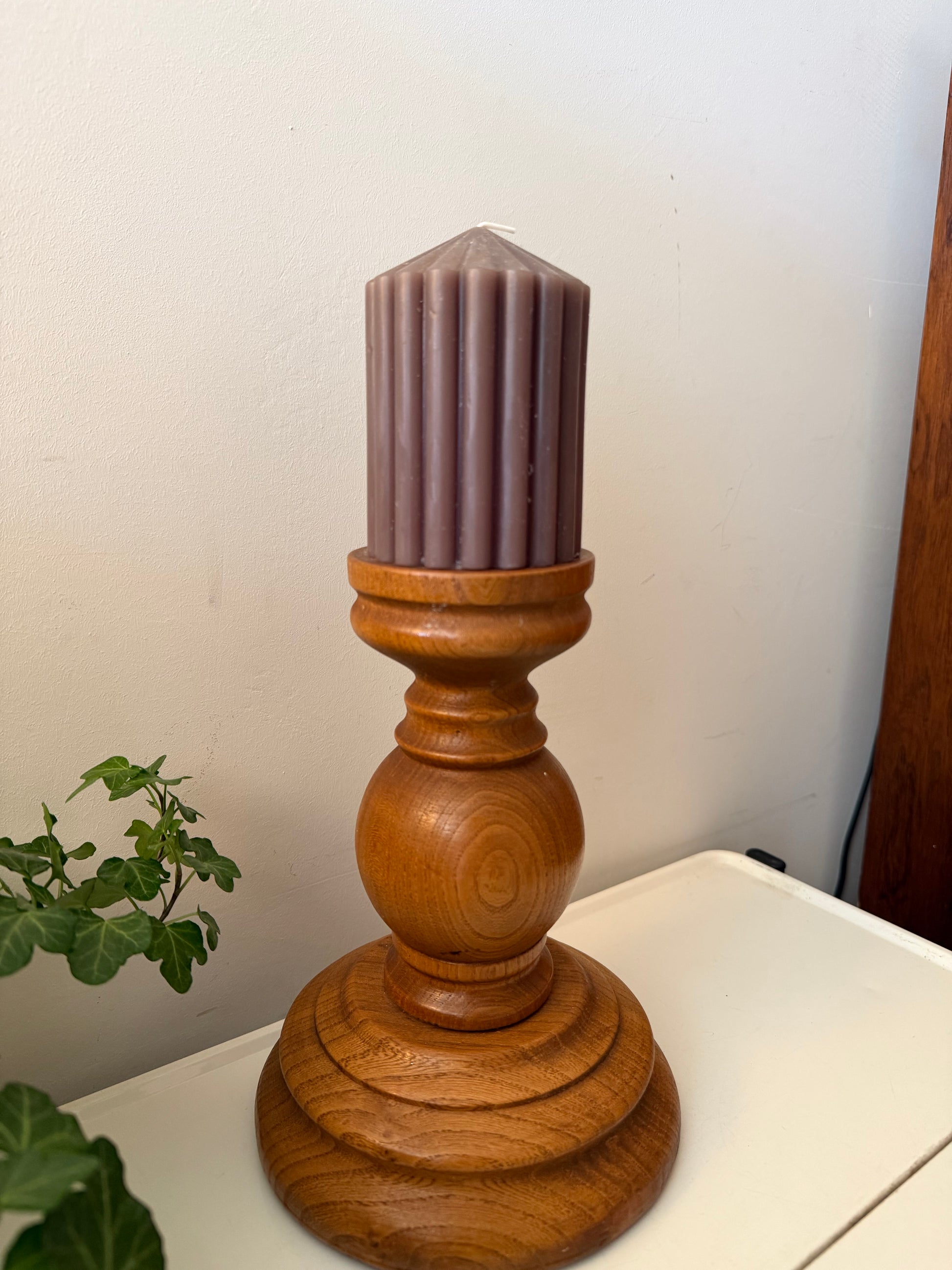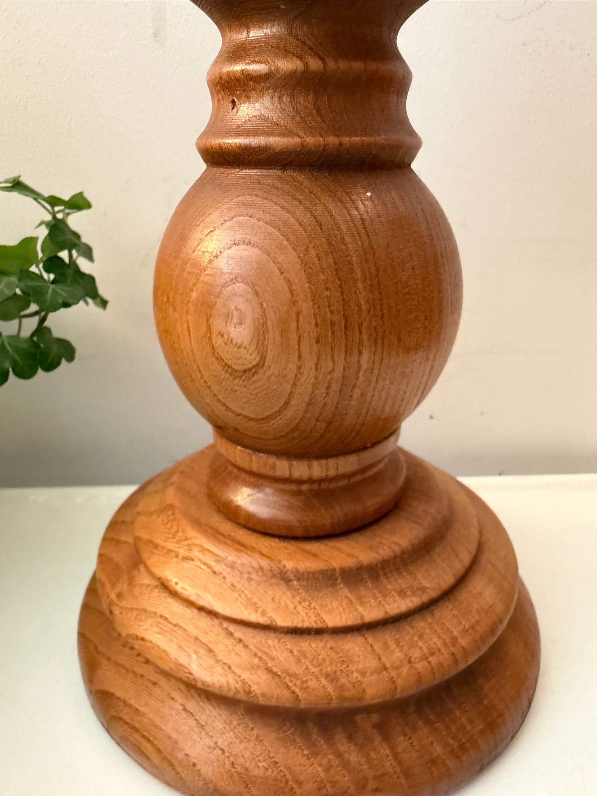 Onwijs leuke houten kandelaar, lekker dik model. Mooie warme houtkleur en ronde vormen. Een echt jaren 70 topper. Staat ook supermooi door z’n formaat. Q862