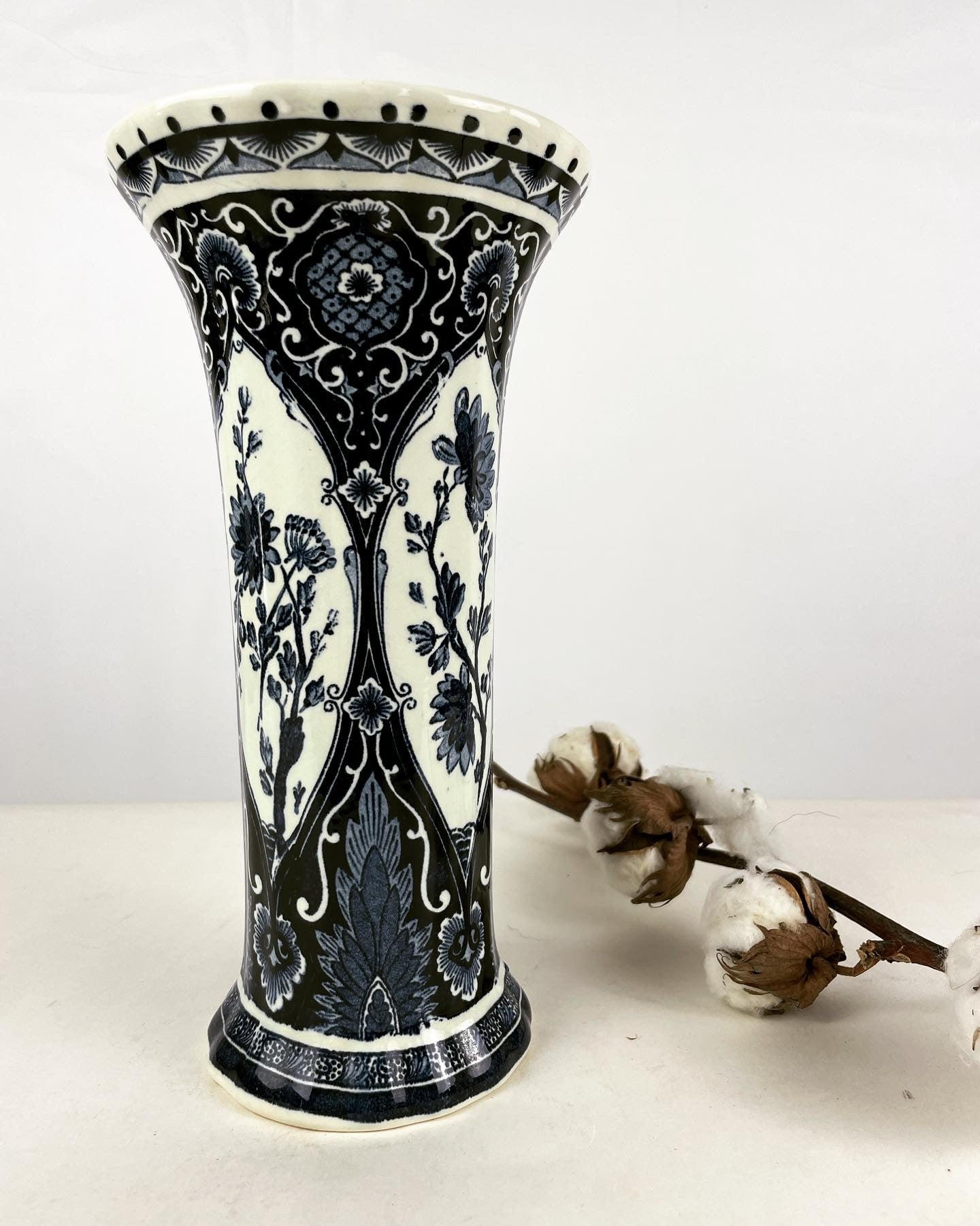 Deze hele mooie trompet vaas gevonden. Een hoog model. Delfts blauwe vaas gemaakt door Boch. In een geweldige vintage staat.