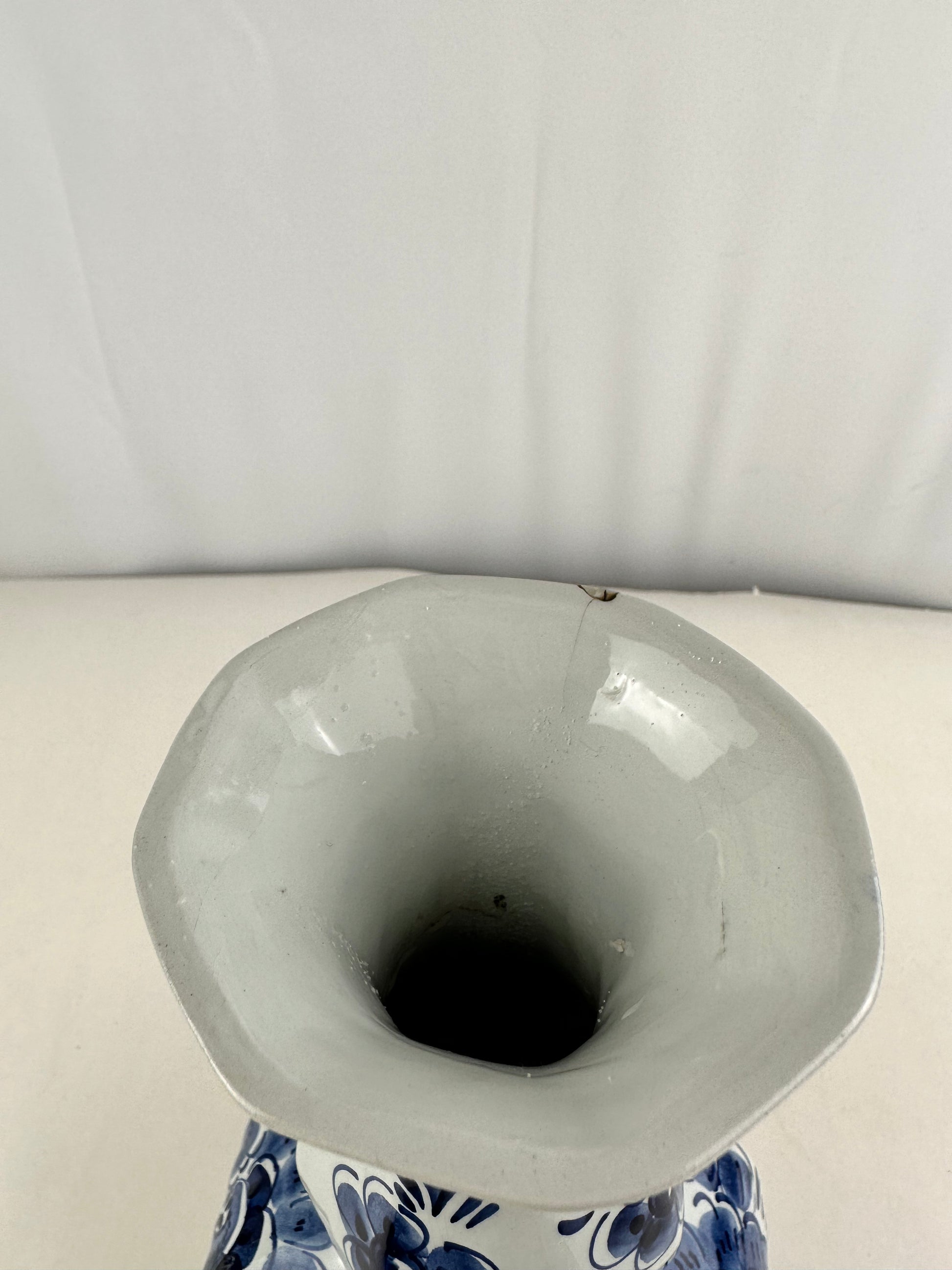 Prachtige hand beschilderde Delfts Blauwe Vaas. Vaas is gemerkt aan de onderkant. Bolvaas met een smalle bovenkant. Gedecoreerd met een bloemenmotief. Een klein gerepareerd chipje aan de bovenrand. Verder in een hele mooie staat.