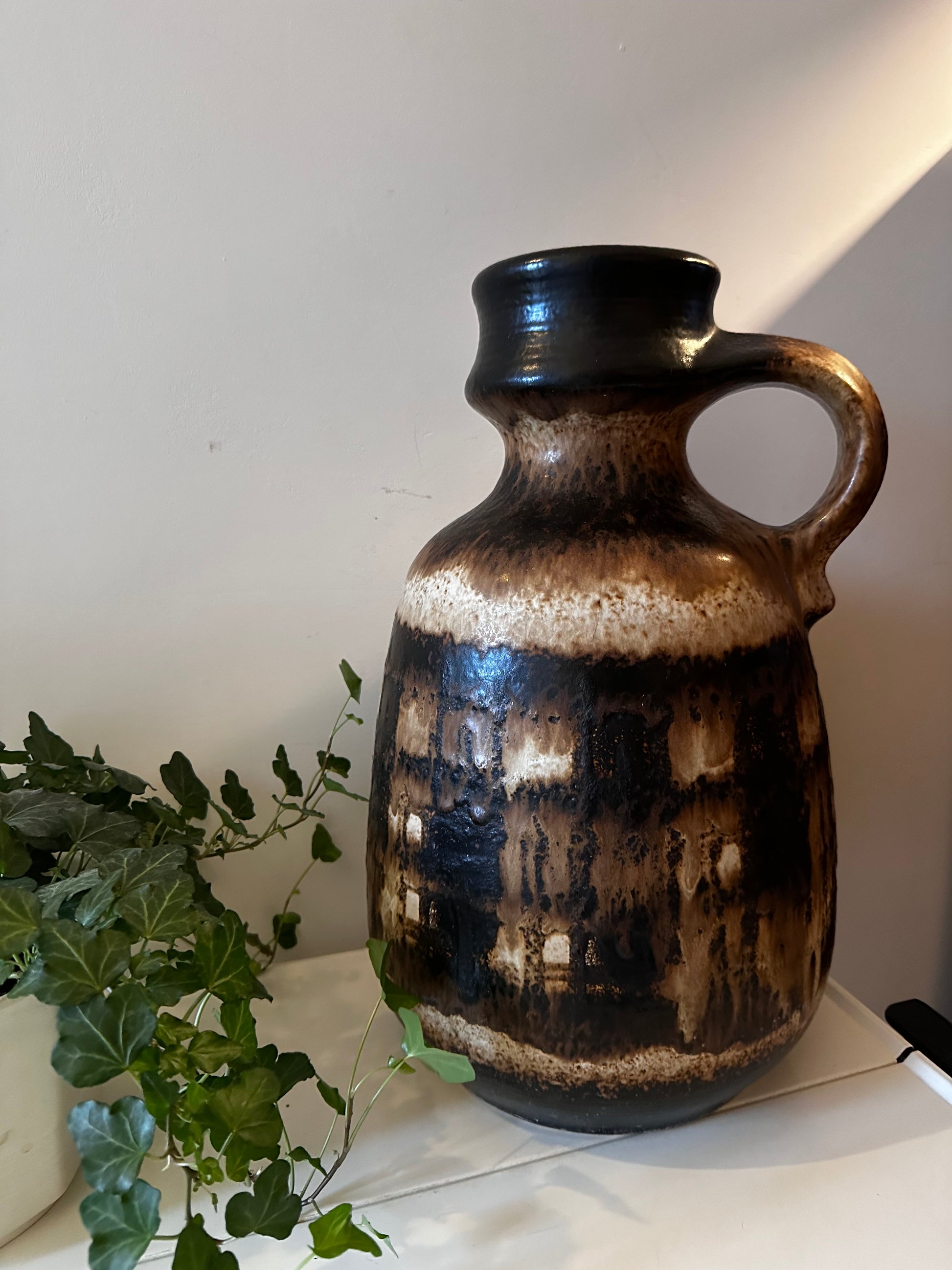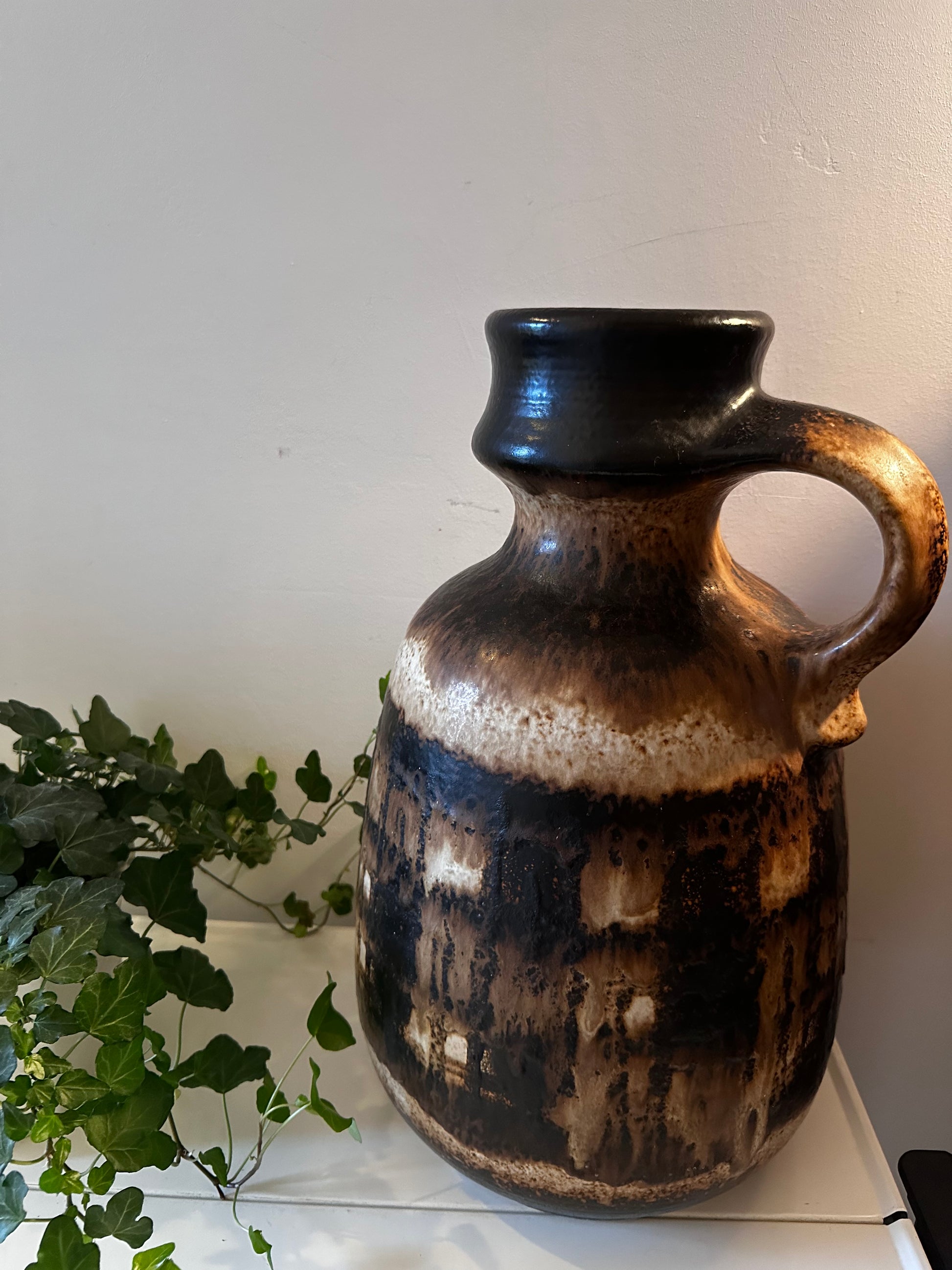 Waanzinnige brutalist vaas. Deze grote XL vaas is een een top staat. Donkerbruin en beige kleuren. De vaas is gemerkt onder en gemaakt door het Duitse merk Dümler & Breiden. Dateert rond de jaren 70.