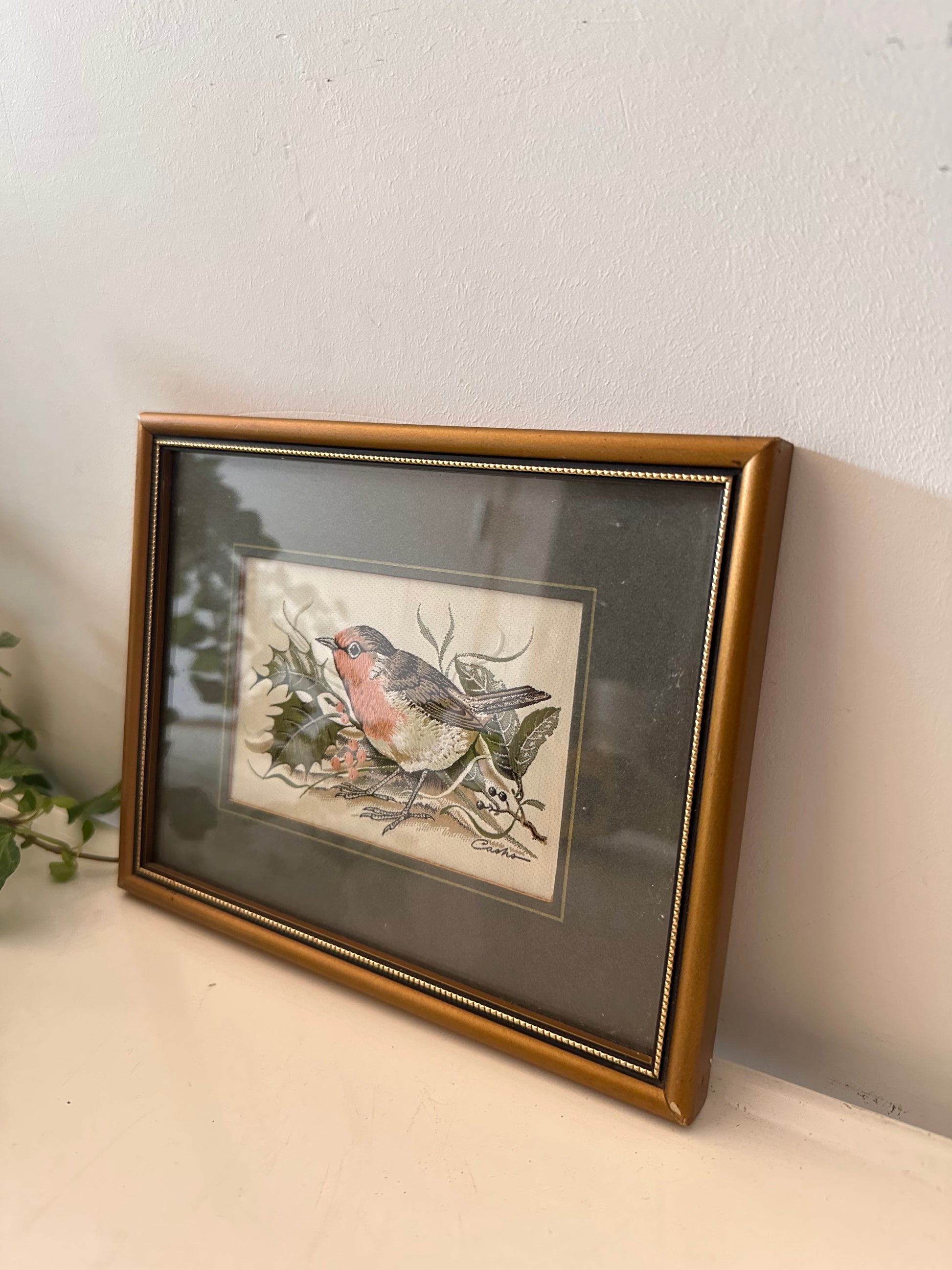 Dit charmante tafereeltje met roodborstje komt uit de Cash’s Collectors Range (Coventry, Engeland).
