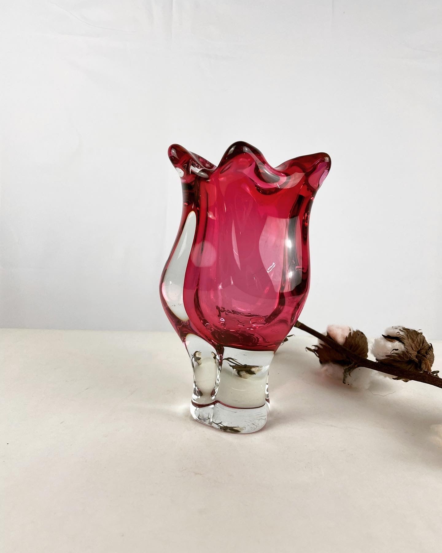 Een geweldige glazen zware vaas in een roze kleur. Het is een handgemaakte vaas van Murano kwaliteit. De vaas is in een goede vintage staat heeft een minuscuul beschadigingetje ik heb t geprobeerd te fotograferen.