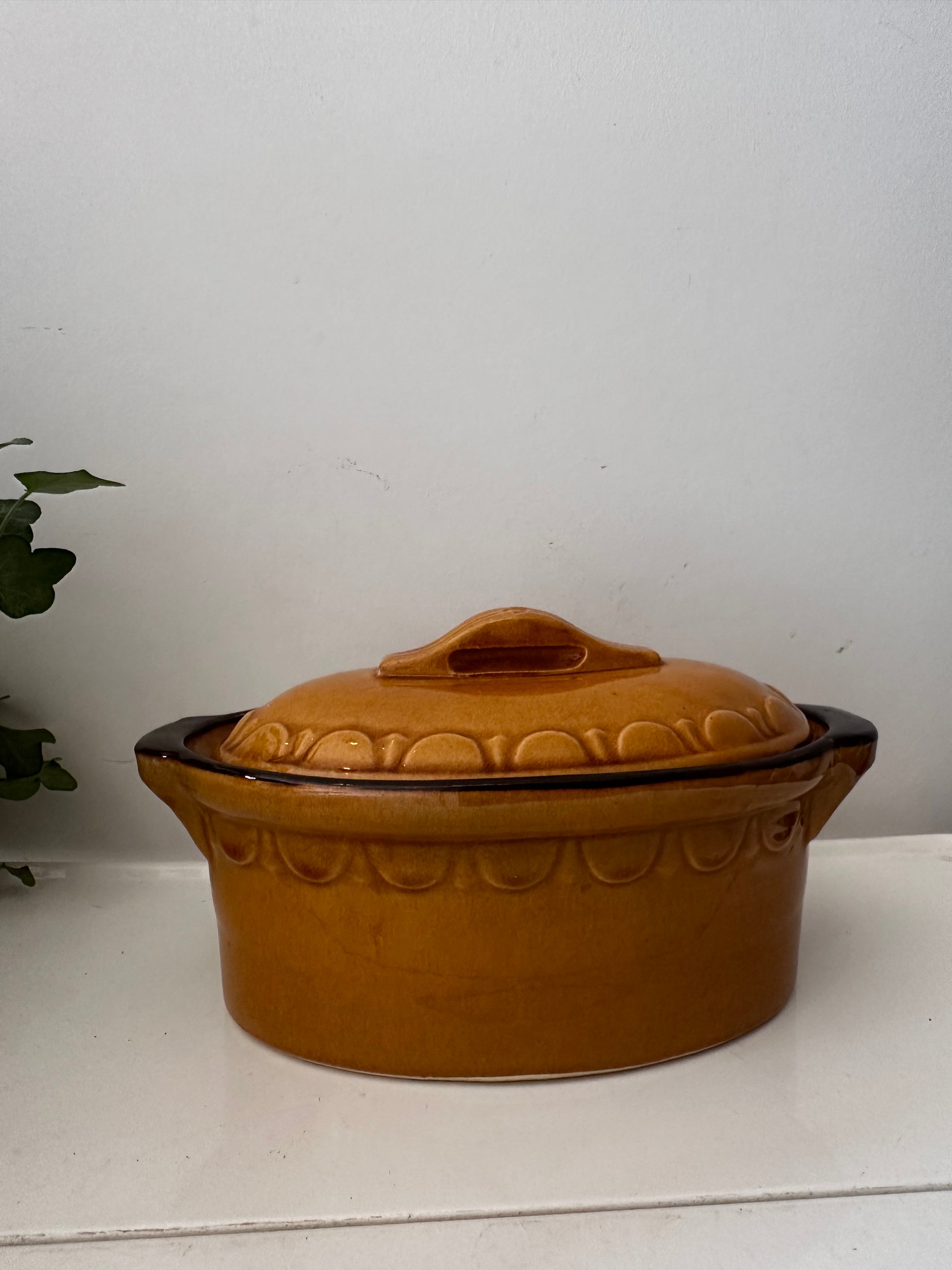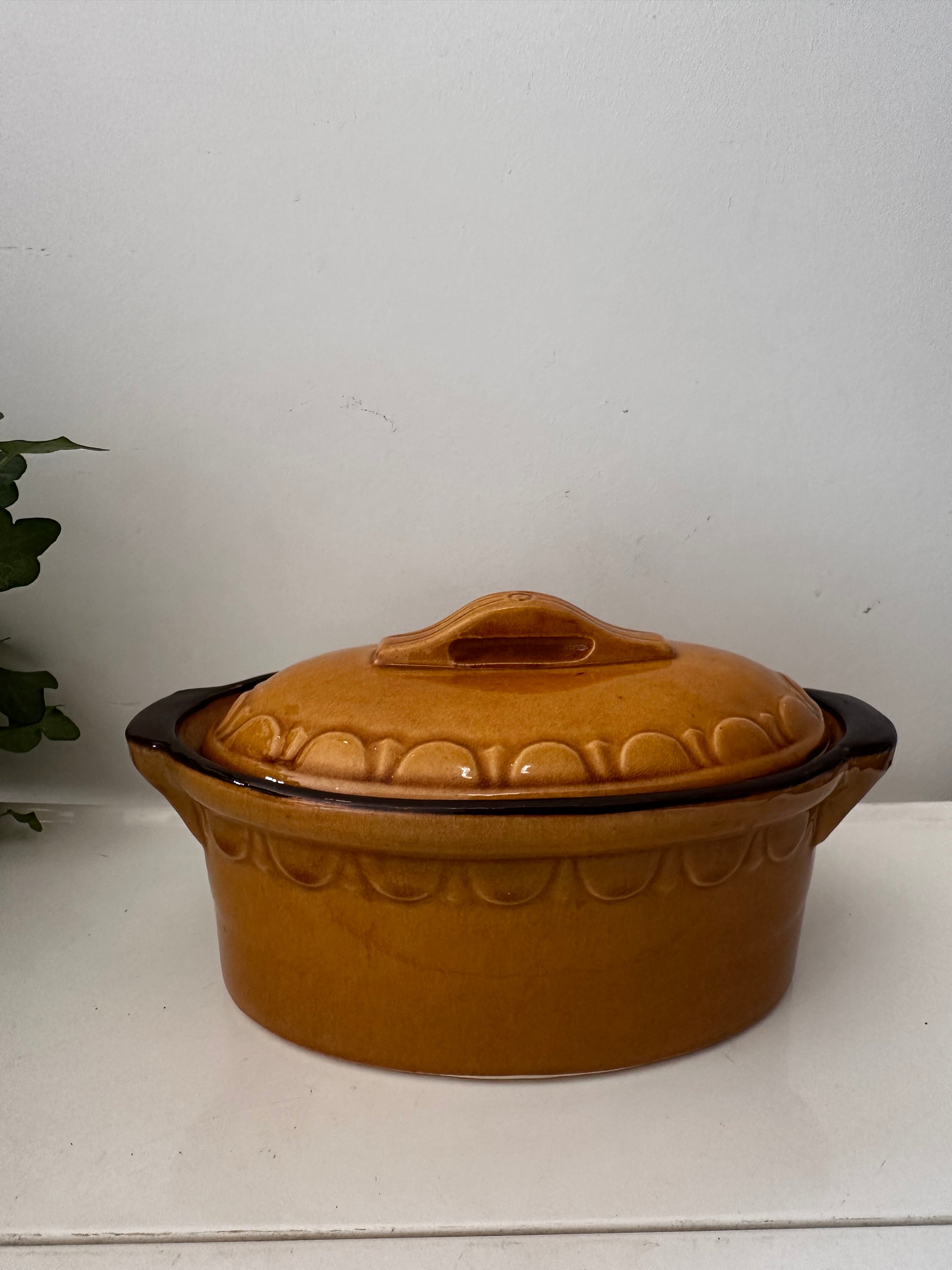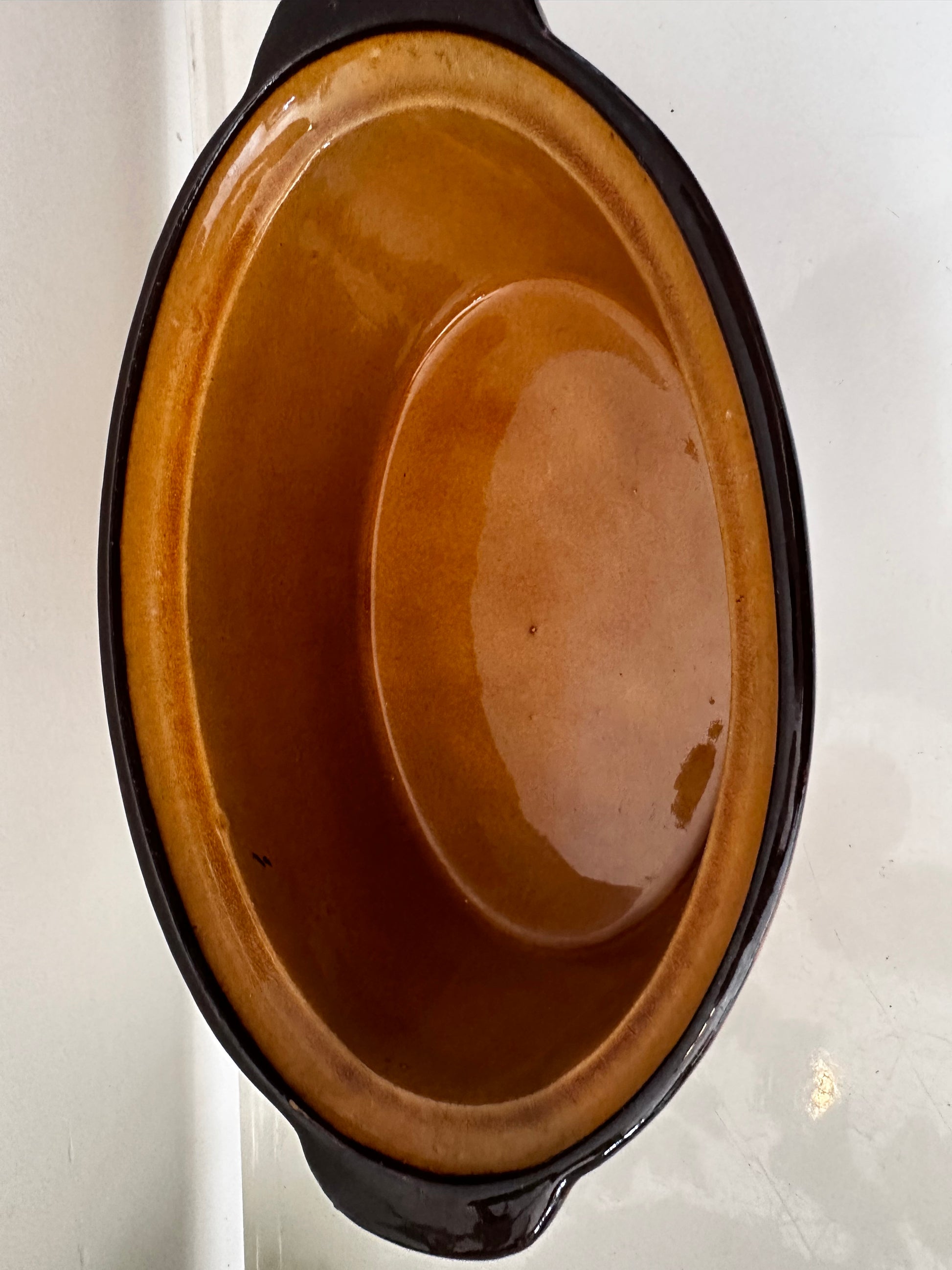 Een te gekke vintage terrine/ovenschaal. Schaal is gemaakt van geglazuurd keramiek. De schaal dateert jaren 70 en is afkomstig uit Duitsland. De schaal is in een supermooie vintage staat!