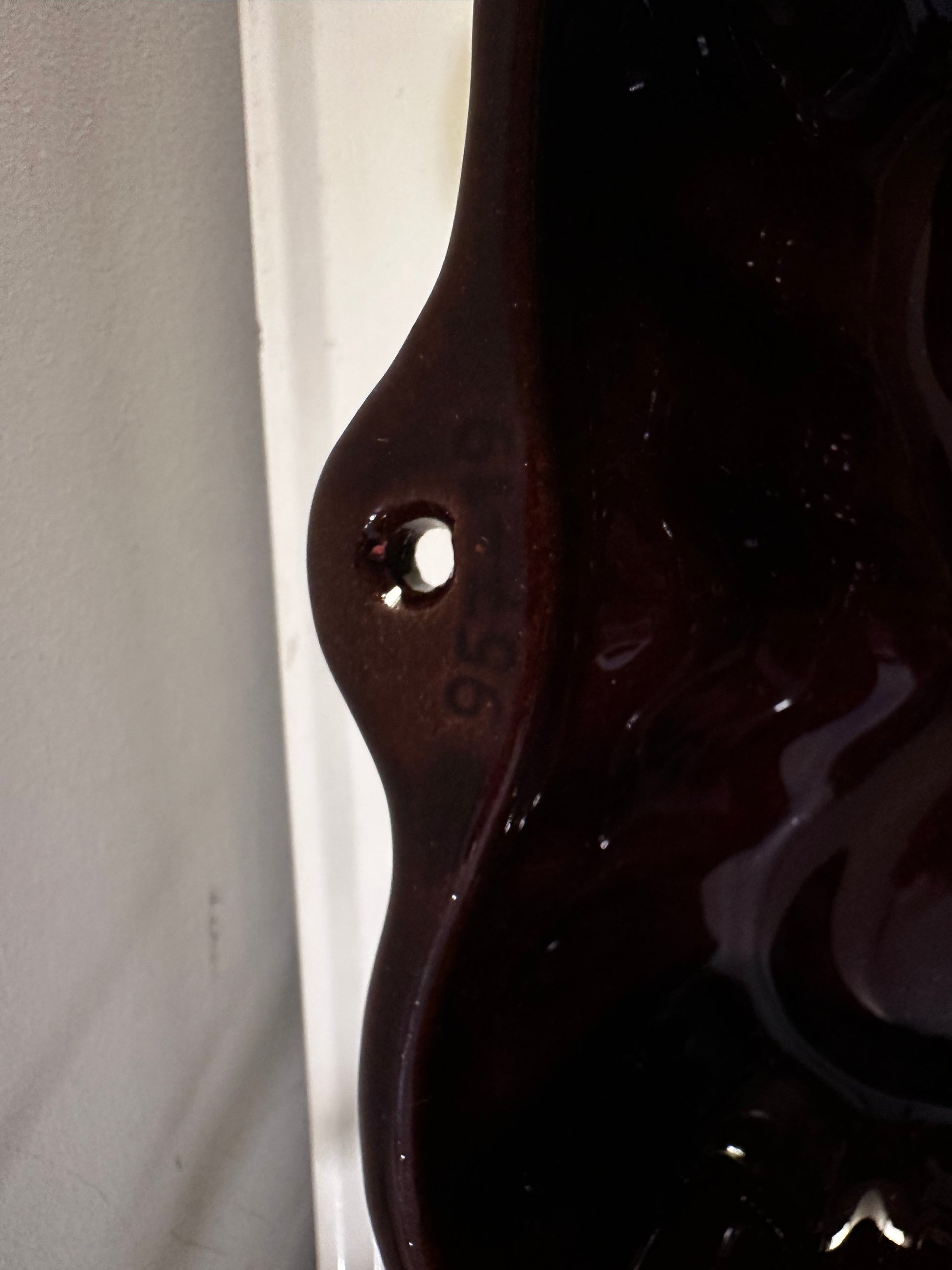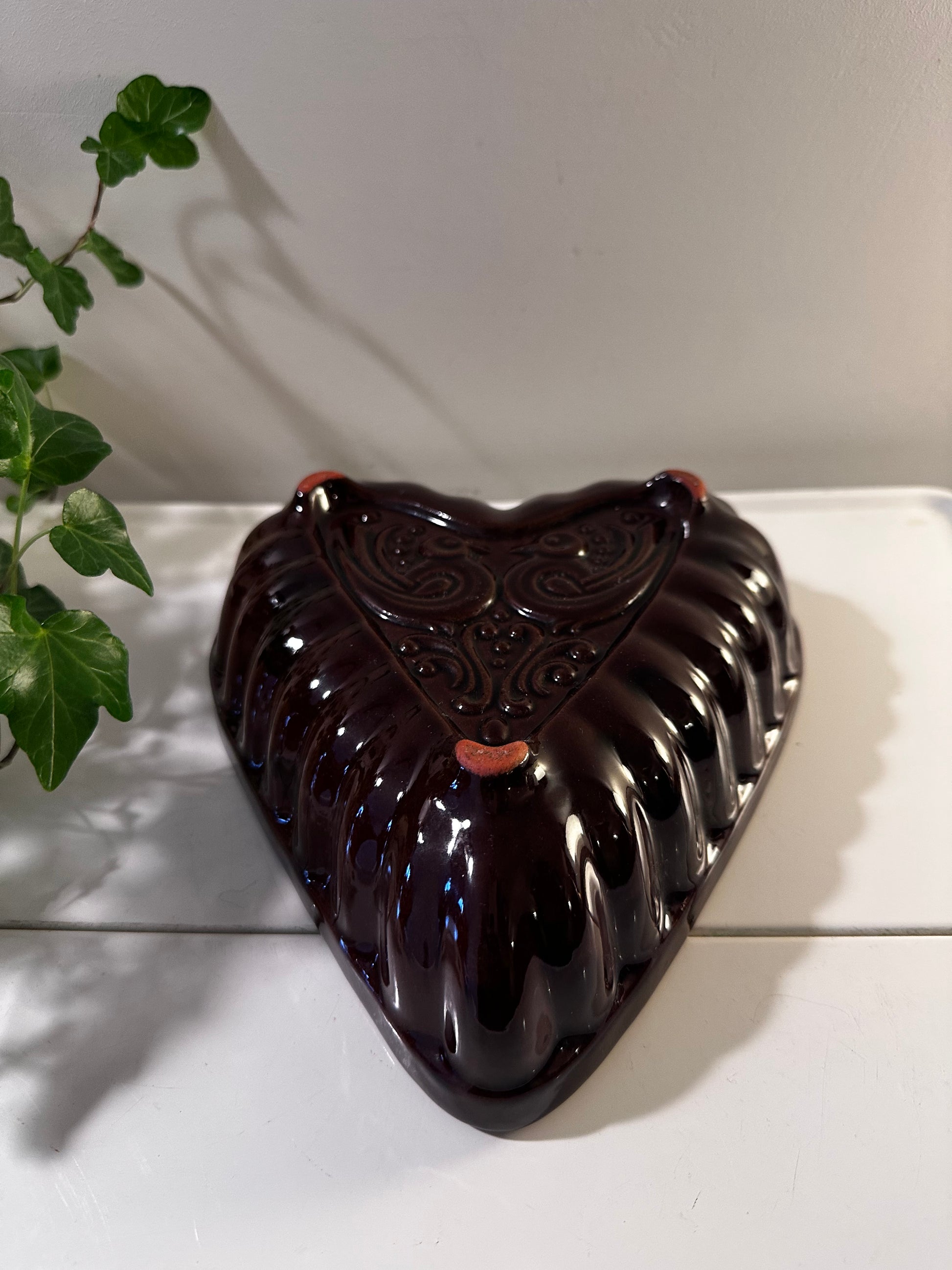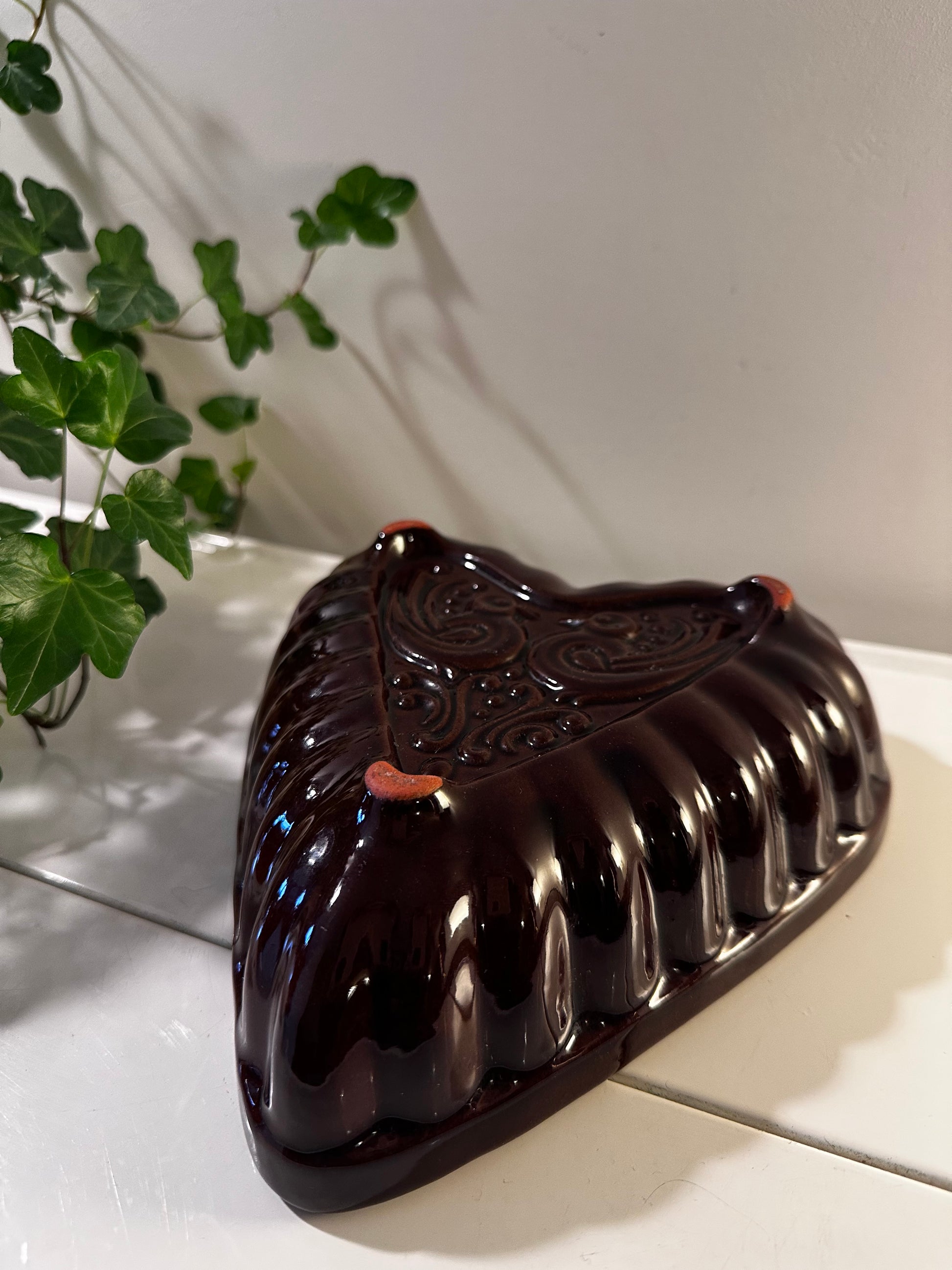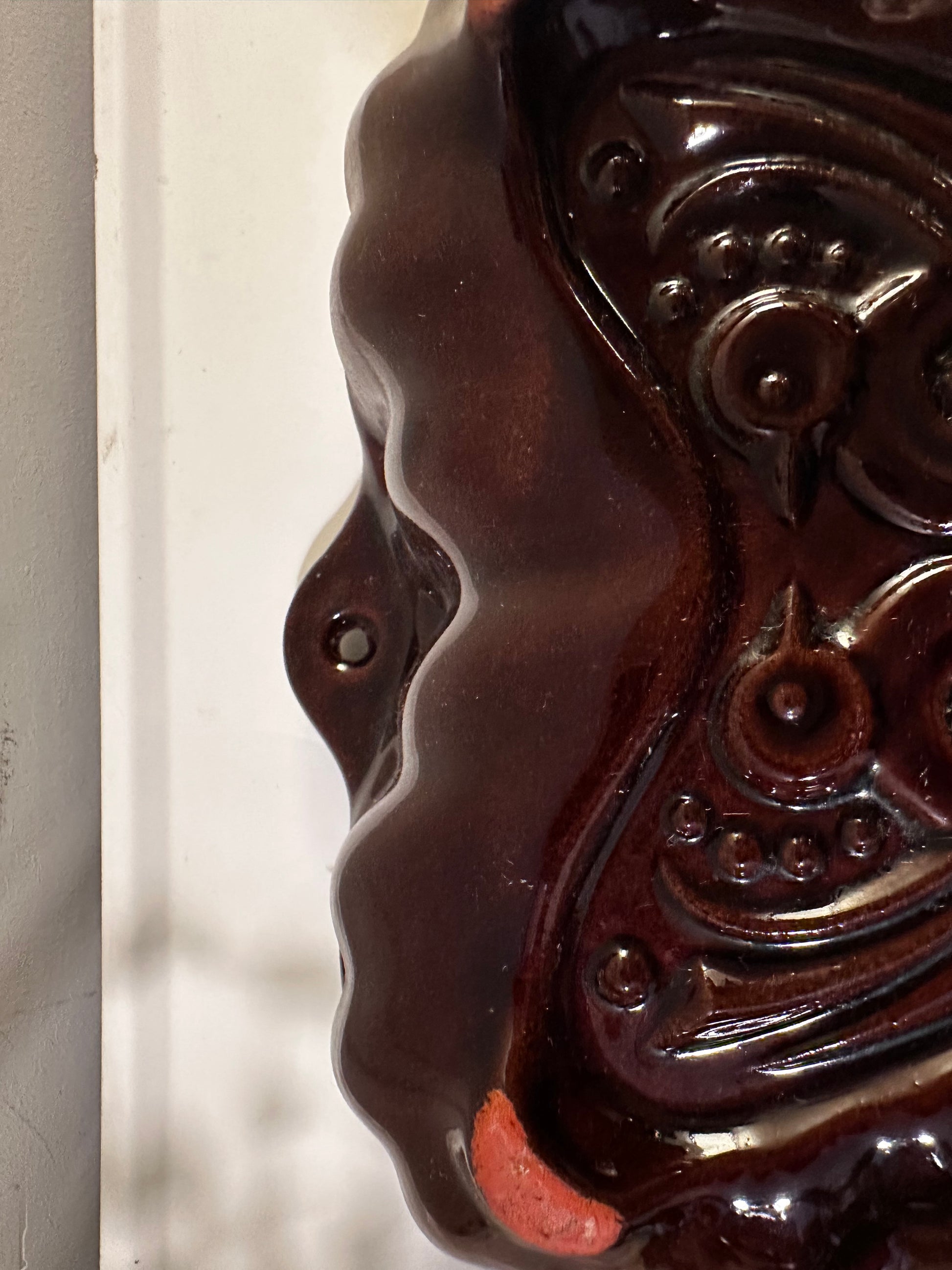 Deze prachtige keramieken bakvorm is superleuk stukje voor in je keuken. De vorm heeft een diepbruine glazuur en sierlijke reliëf patronen. Dankzij het ophangoog kan het ook als muurdecoratie gebruikt worden. Q704