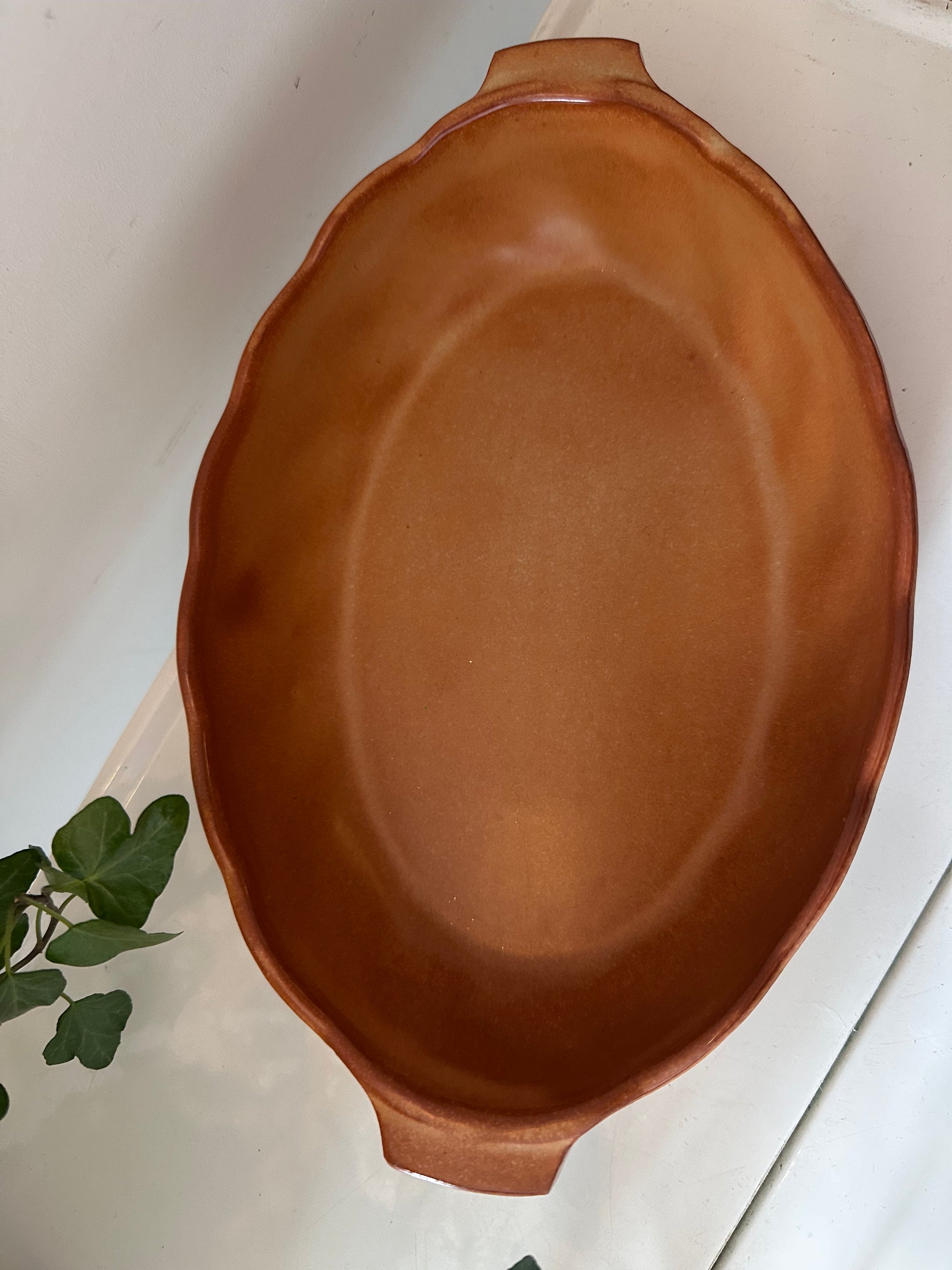 Te gekke ovenschaal in mooie bruintinten en een klassiek korenmotief: deze keramieken ovenschaal uit Italië is in een supermooie staat. Leuk voor ovenschotels, appeltaart of gewoon als sfeermaker in je keuken. Q930