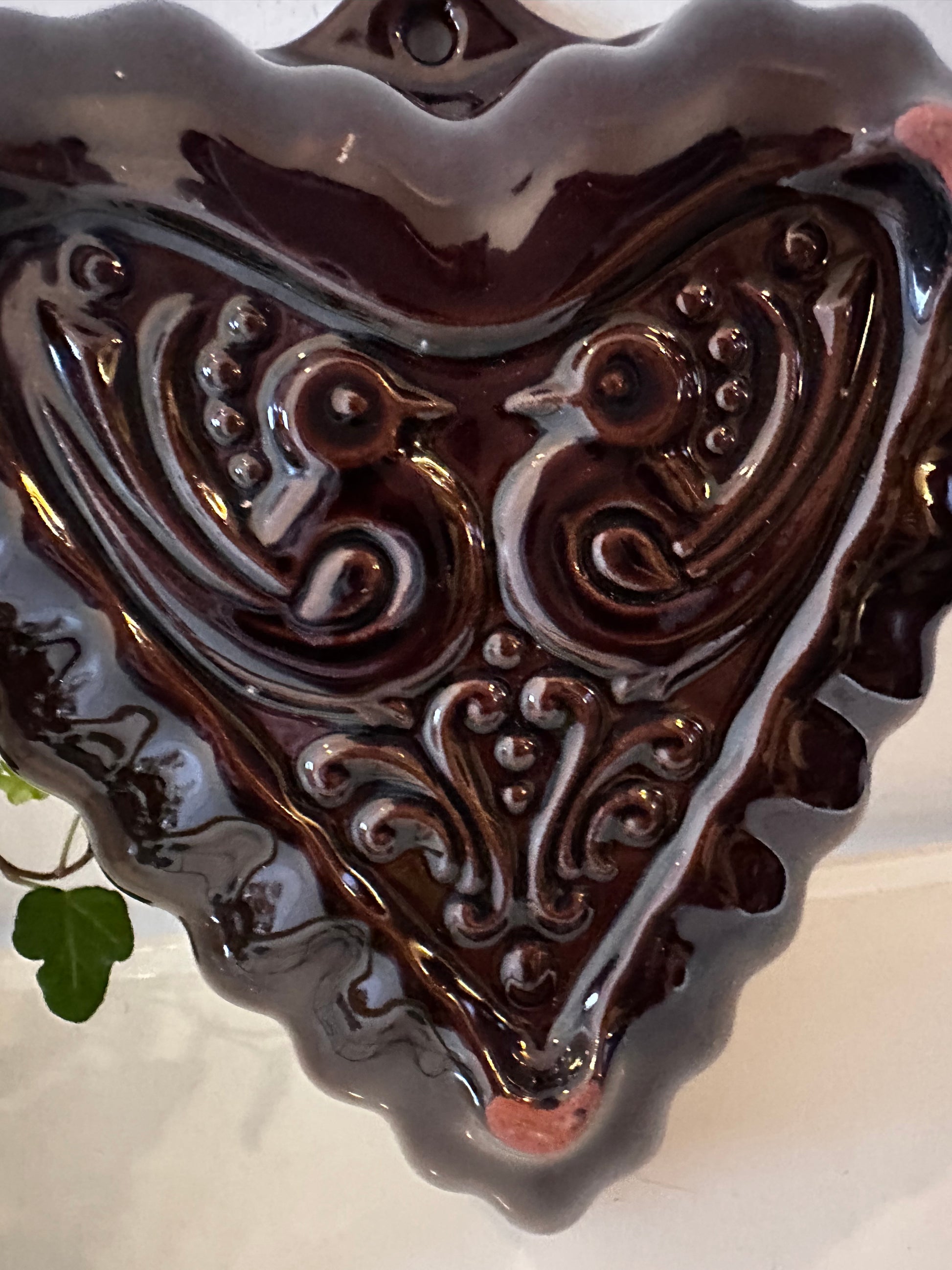 Hoe leuk is deze keramieken pudding/bak vorm. Ook geweldig als decoratie object in de keuken. Heeft een ophangoogje en is in een mooie vintage staat. Is vormgegeven als een hart. Dateert jaren 70 en afkomstig uit Duitsland