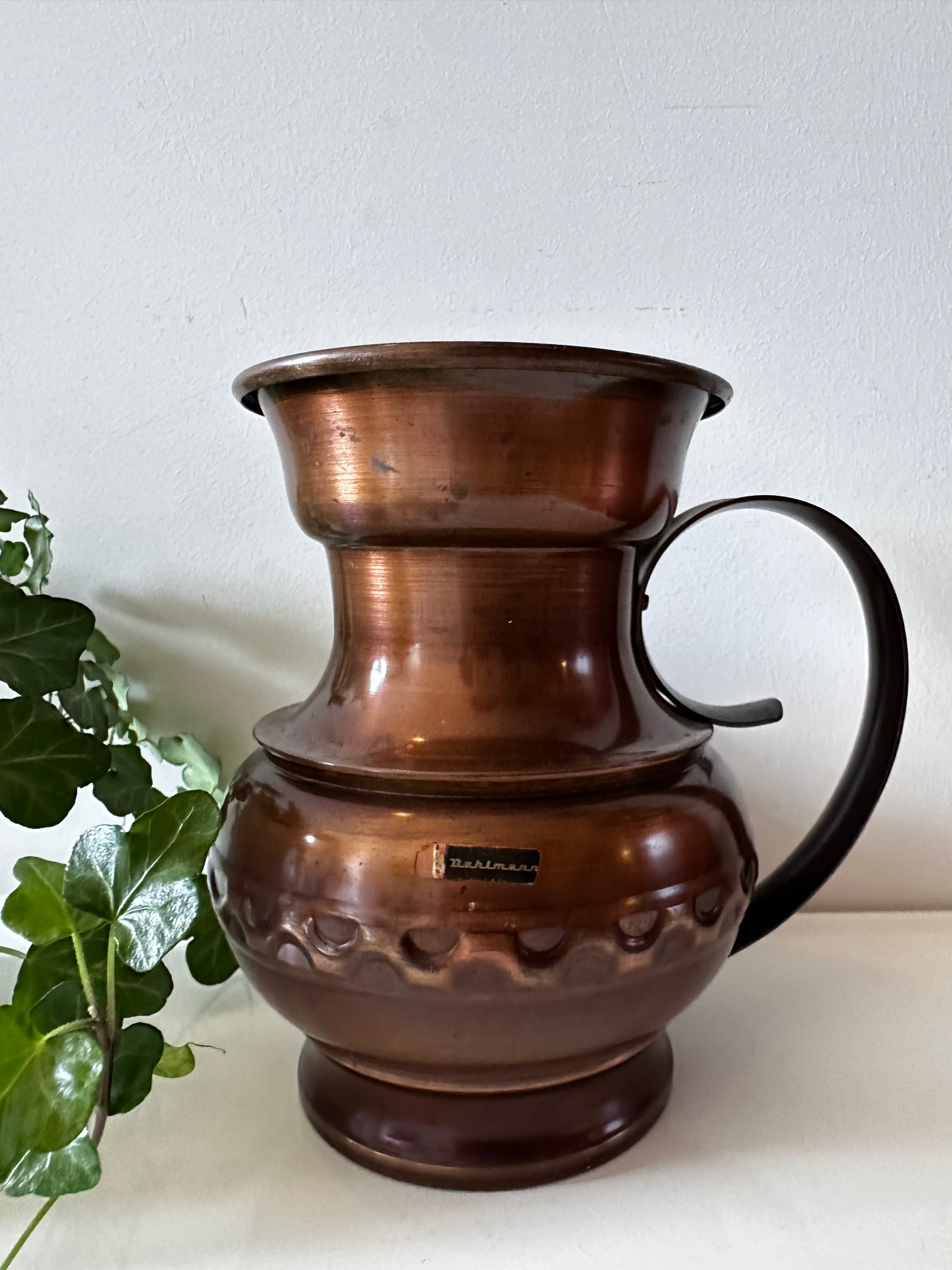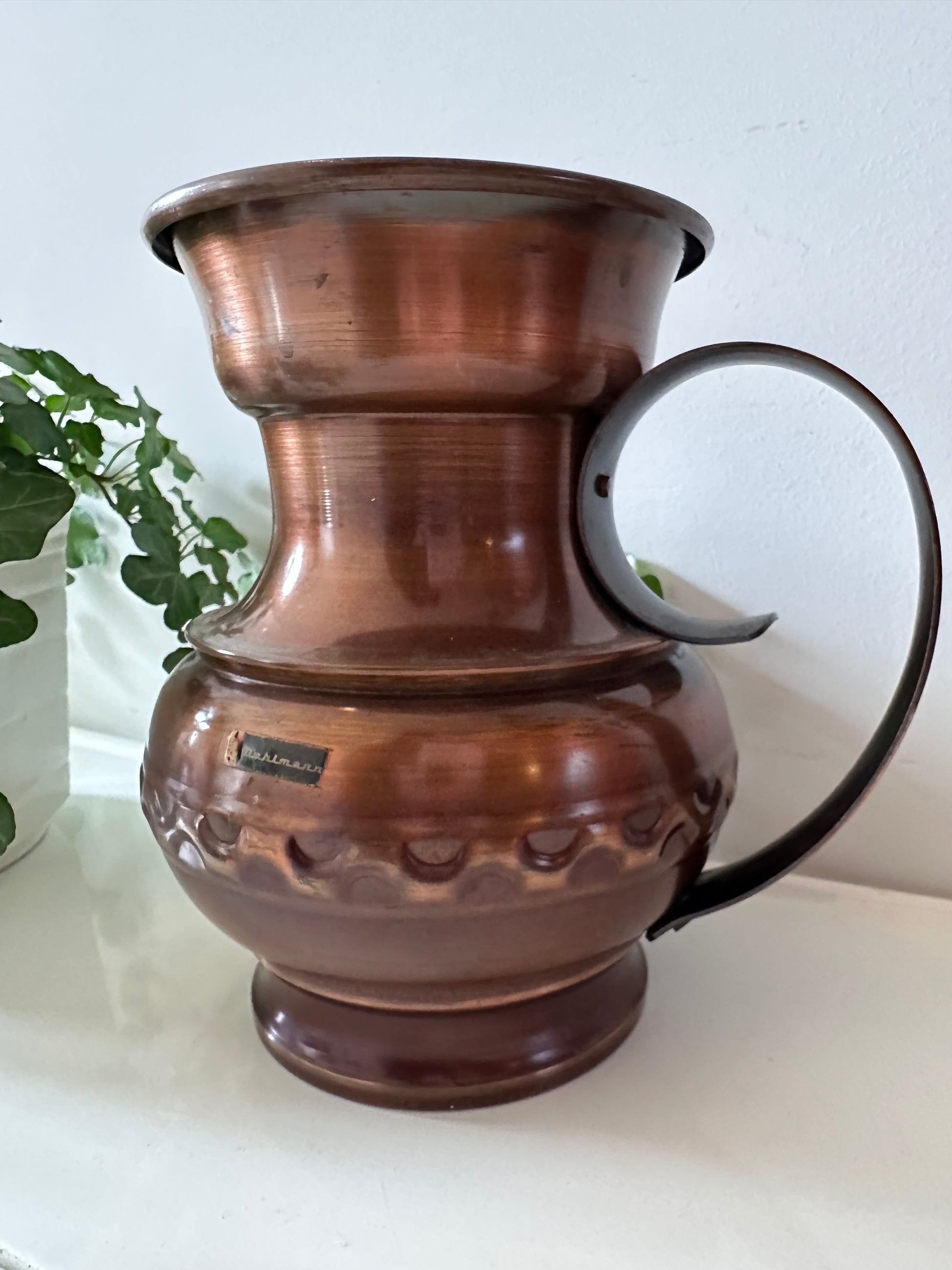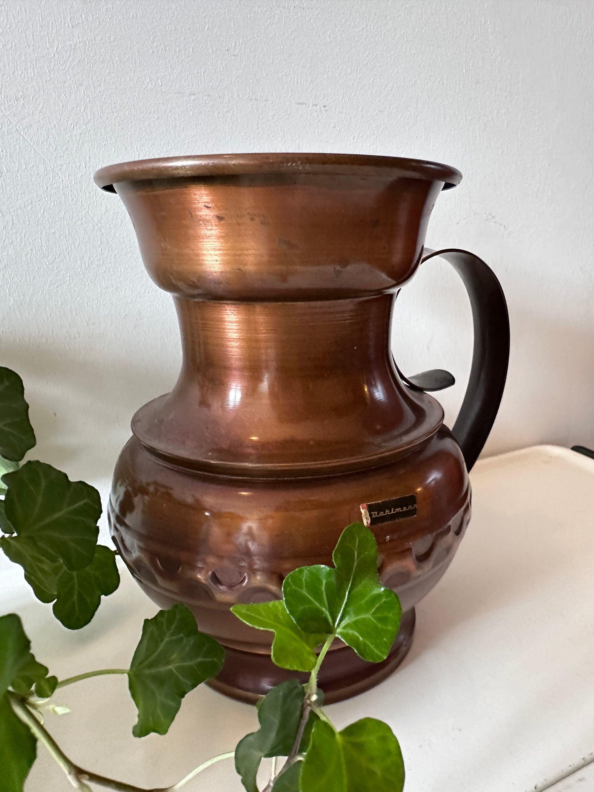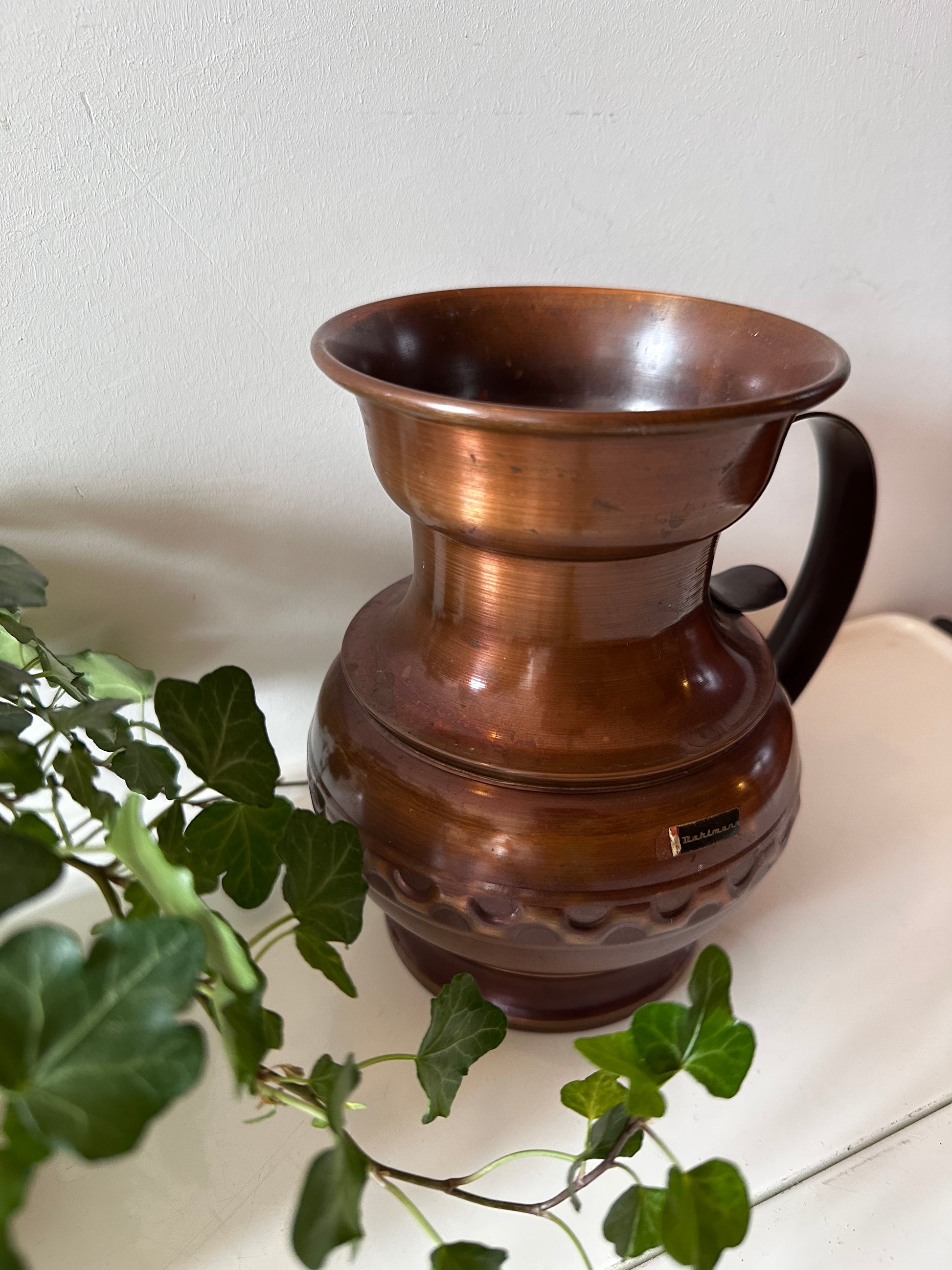 Een toffe koperen kan met een stoere uitstraling. Perfect als decoratie, maar ook te gebruiken als vaas! 🪴De kan is in een mooie vintage staat en heeft een merksticker Dahlmann. Deze Mid Century kan is in een top vintage staat.