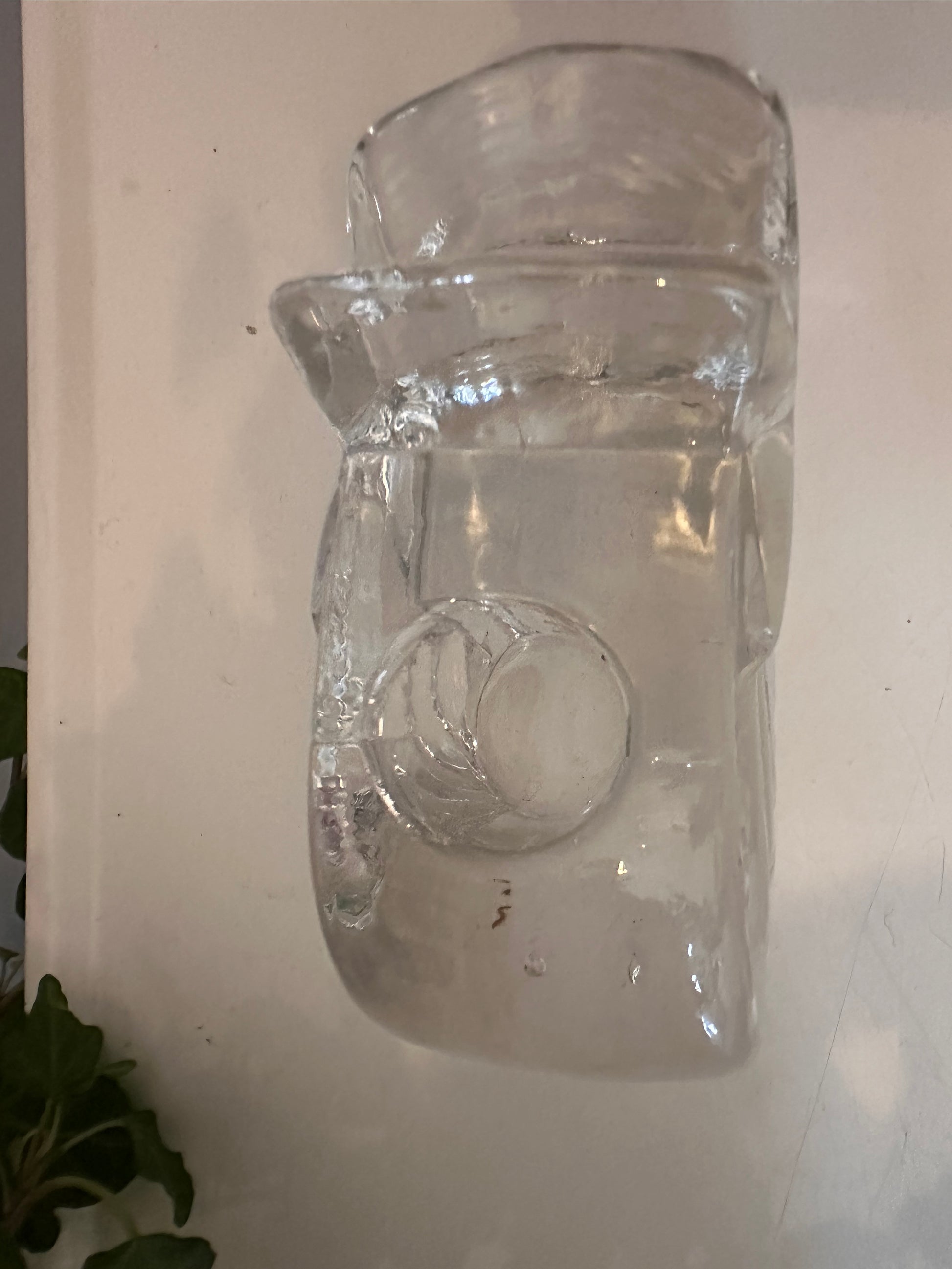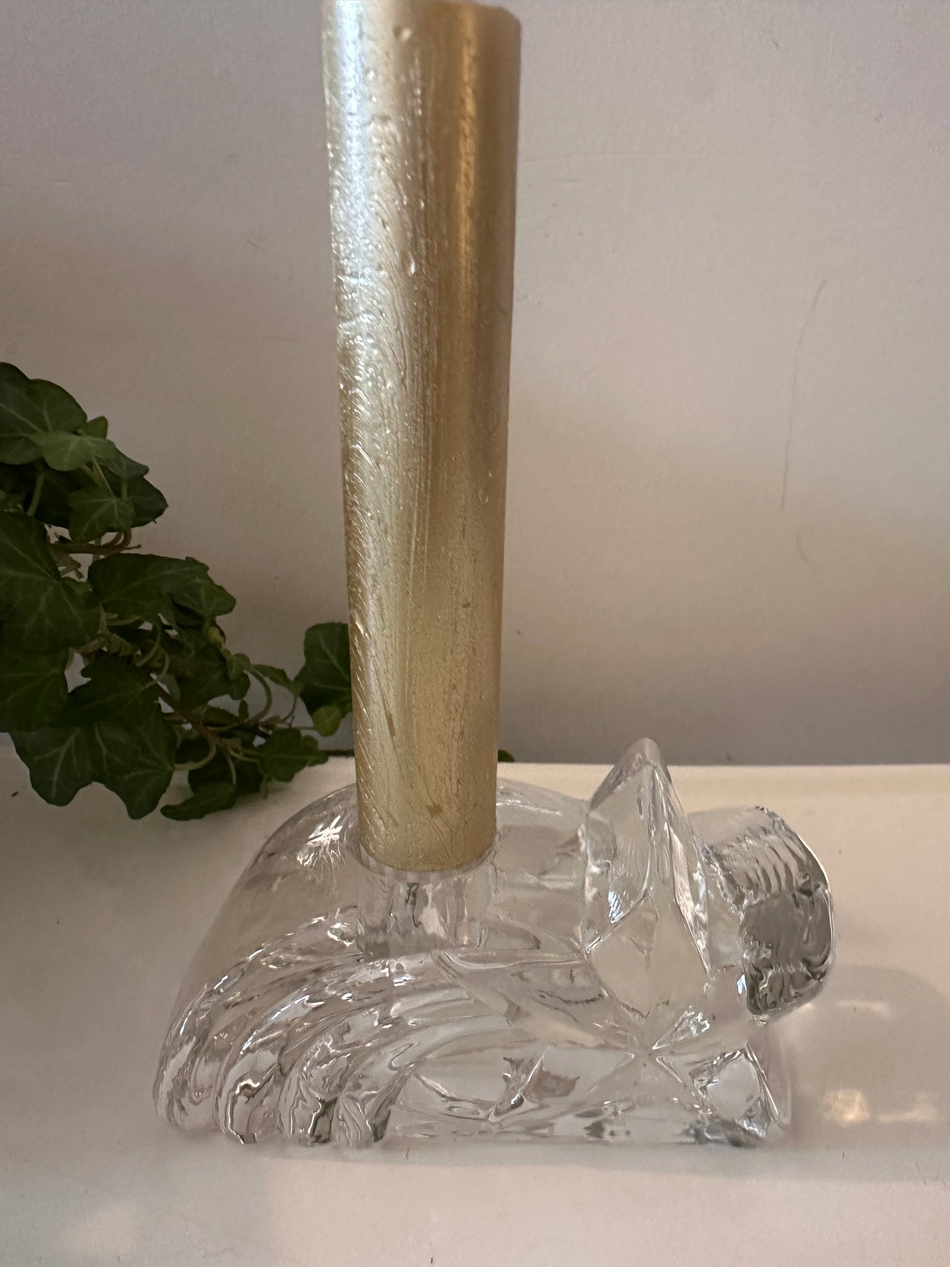Hoe leuk is deze! Gemaakt van helder kristalglas met die typische glans en subtiele facetten die het licht mooi vangen. Herkomst Duitsland, uit de jaren 80-90 — toen dit soort feestelijke ontwerpen populair waren. Ideaal als subtiele kersttouch, maar ook gewoon mooi het hele jaar door. Q560