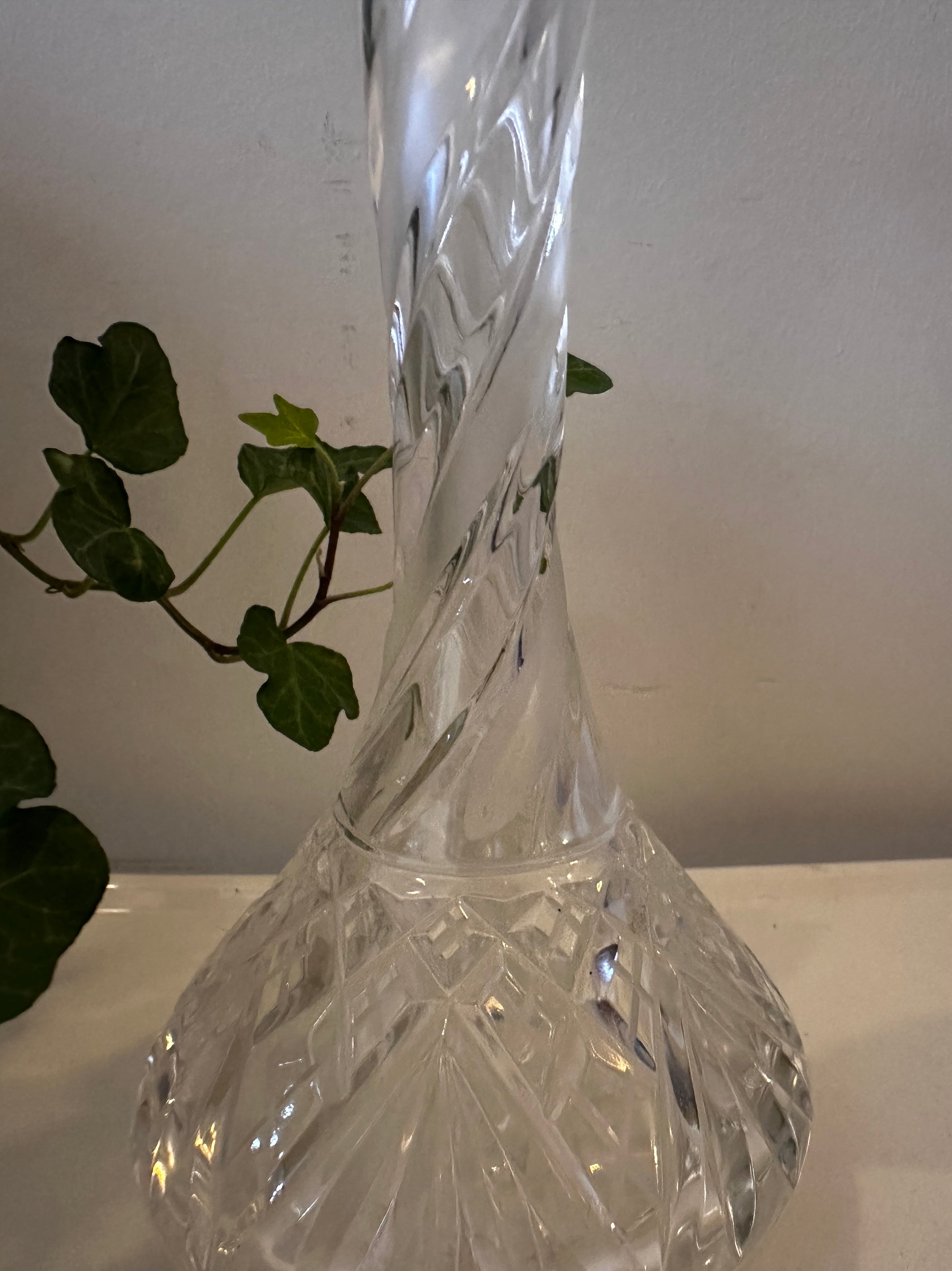 Een mooi elegant Solifleur vaasje. Bolvormig vaasje met een mooi uitgeslepen design. Het vaasje is van kristal, afkomstig uit Duitsland en dateert jaren 70.
