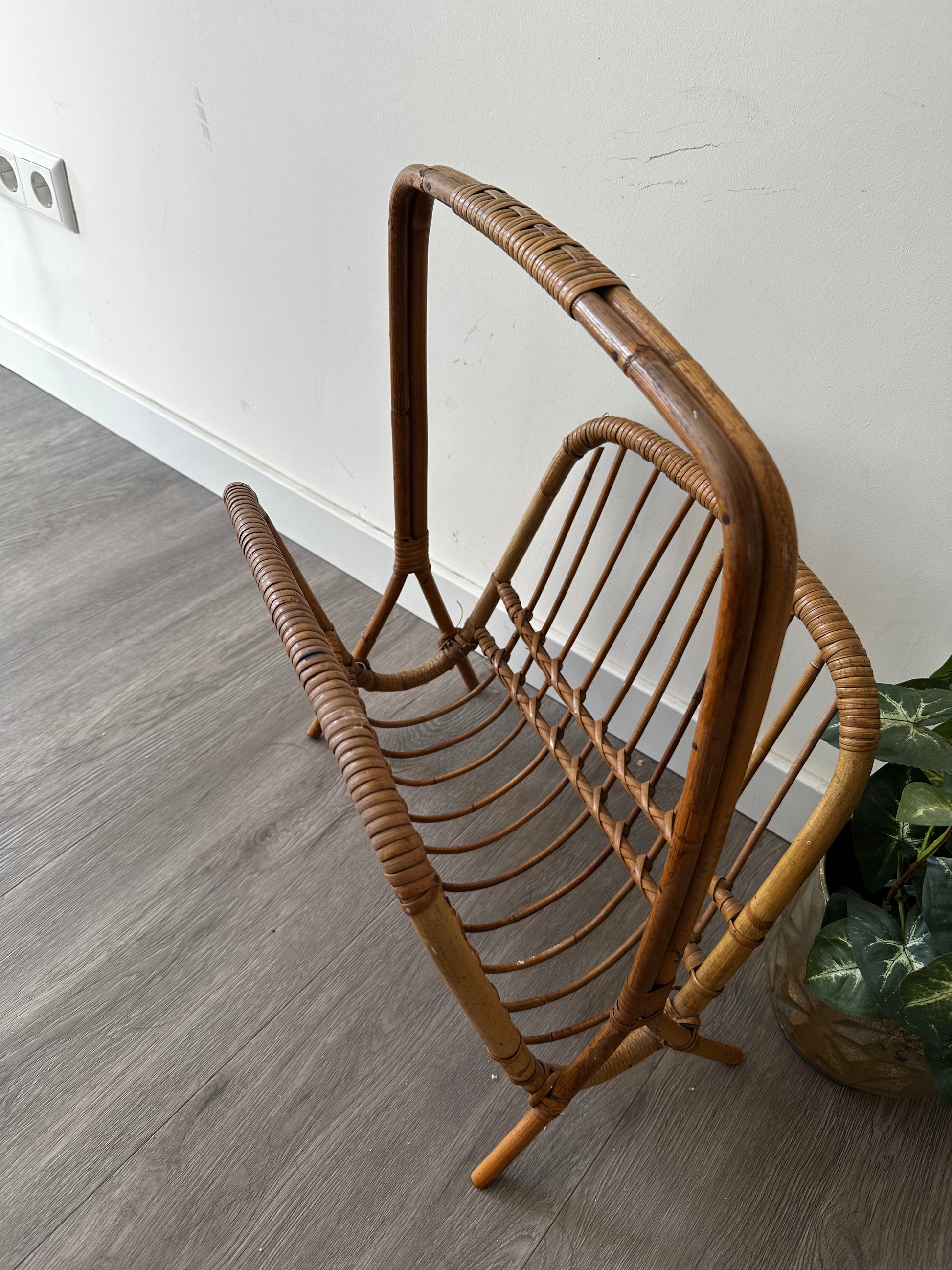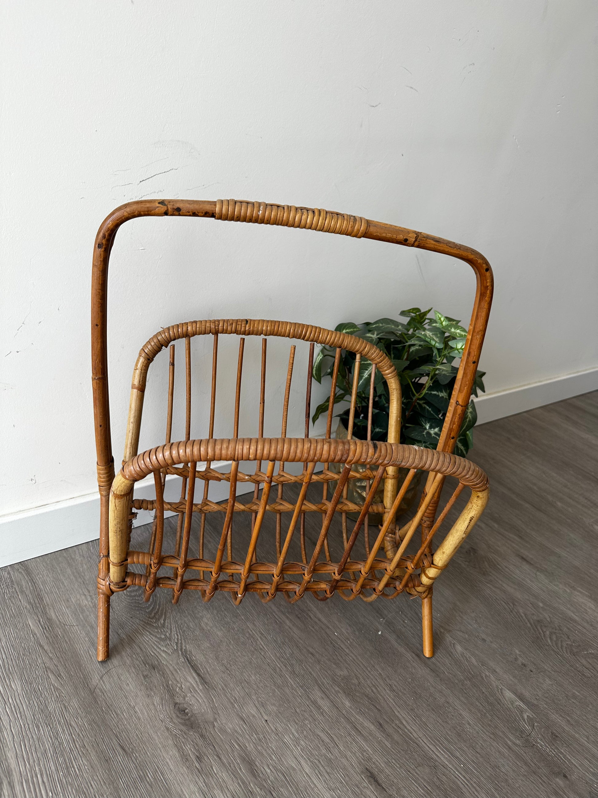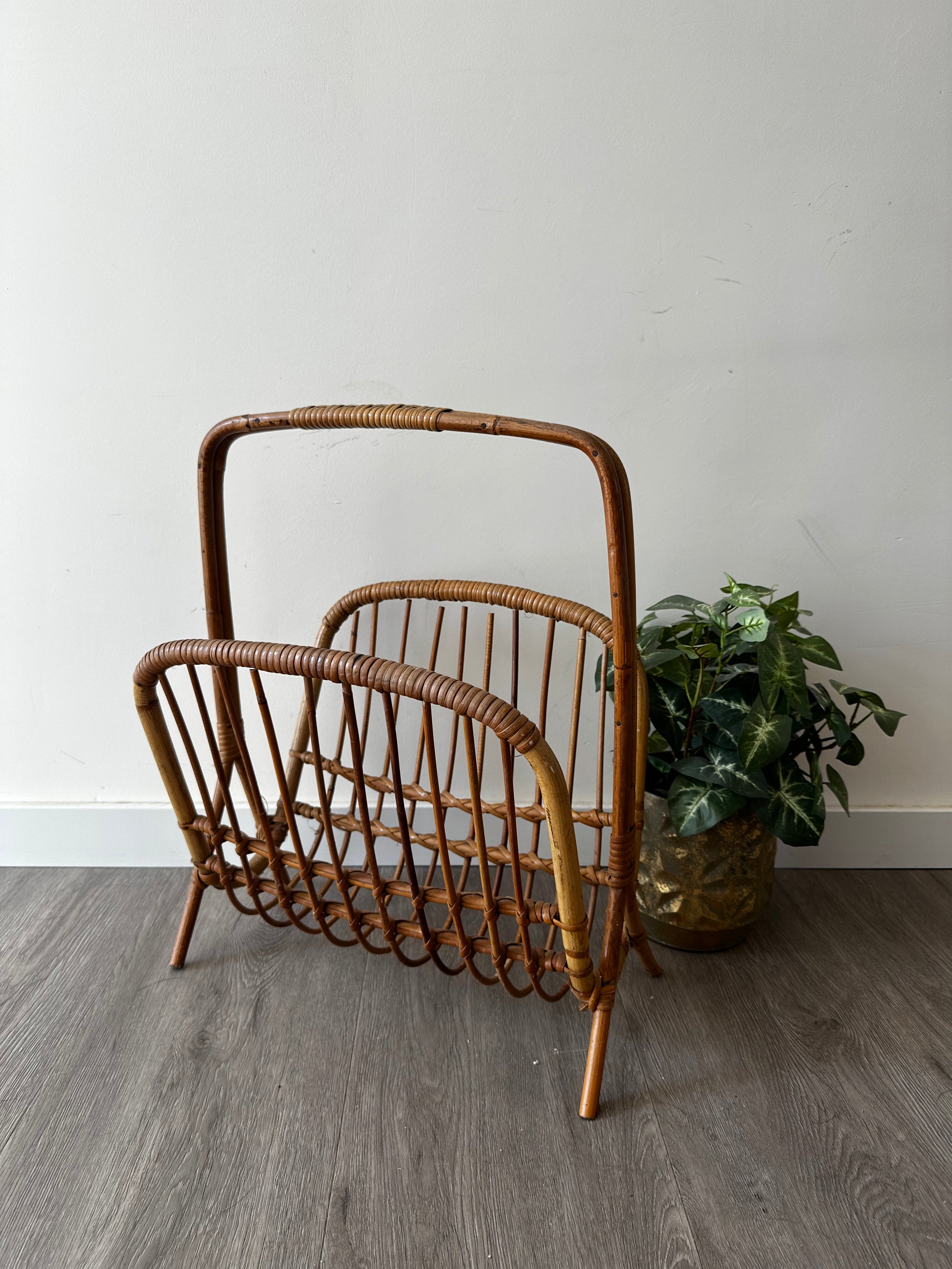 Geweldig leuke lectuurbak van rotan in een mooie vintage staat. Rotan is helemaal gaaf alleen sluiten de stokjes niet helemaal aan met boven. Is verder niet storend.