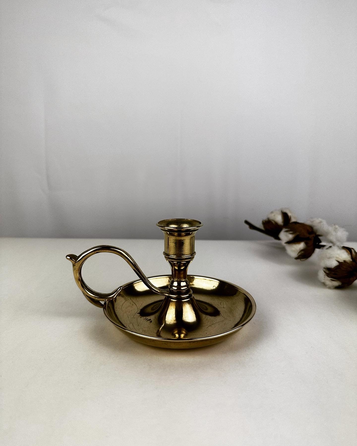 Een geweldig mooie messing tafel kandelaar. Hij is demontabel wat het messing poetsen gemakkelijk maakt. Hier en daar wat charmante gebruikssporen. De kandelaar is in een mooie vintage staat.