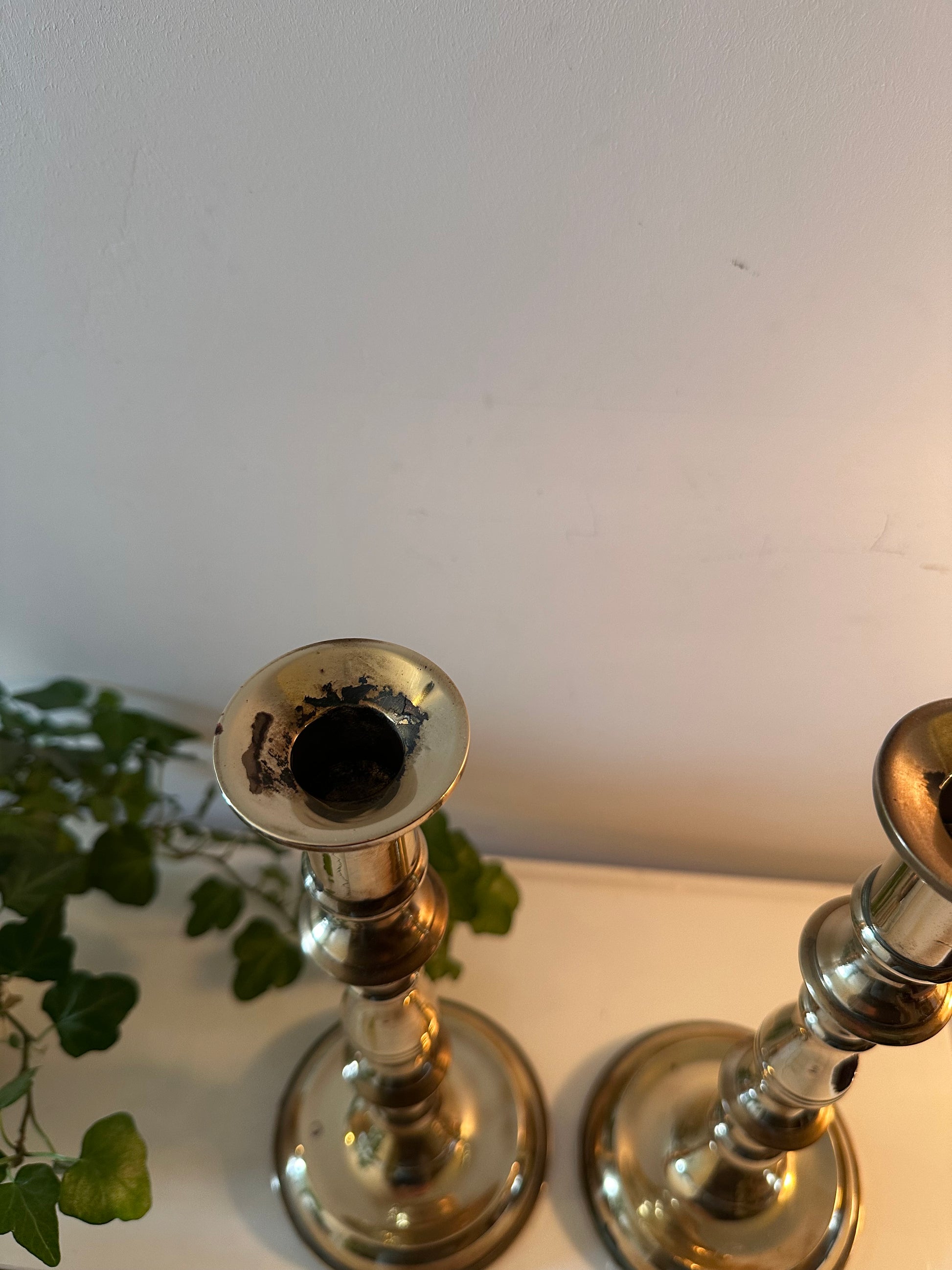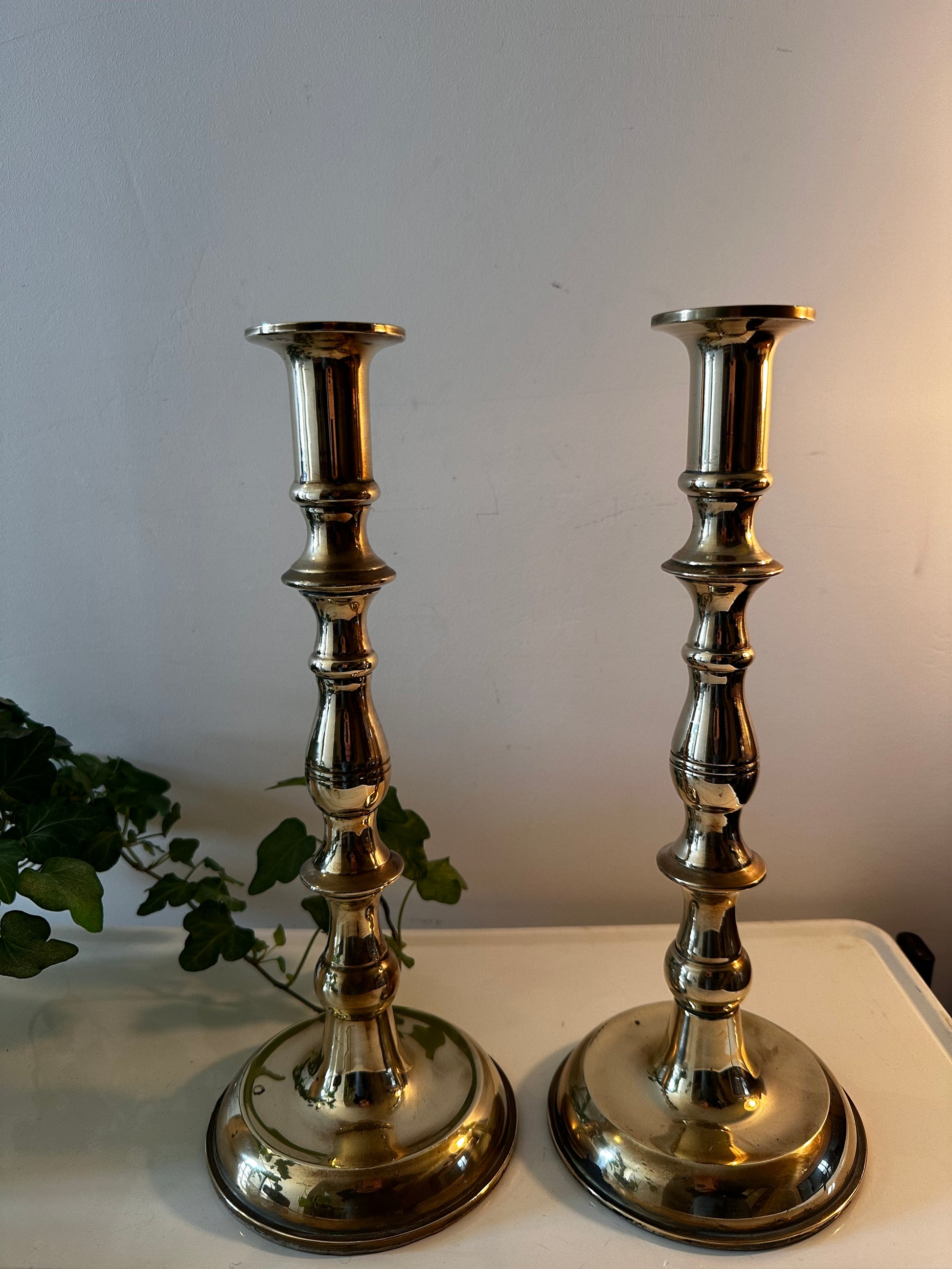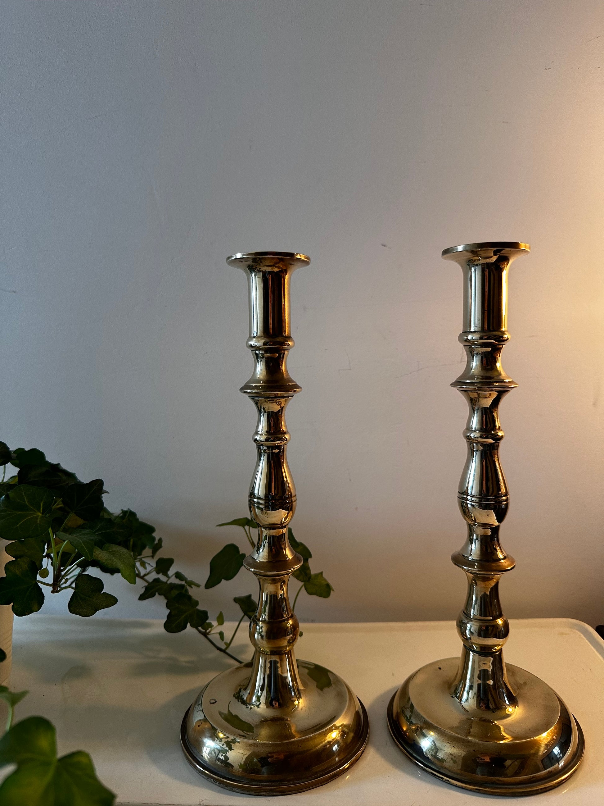 Wat een beauty’s deze grote messing kandelaars. Ze zijn in een supermooie vintage staat. Hier een daar een klein plekje maar dat hoort een beetje bij deze oude kandelaars. Mooi vormgegeven en onder bekleed met groen vilt.