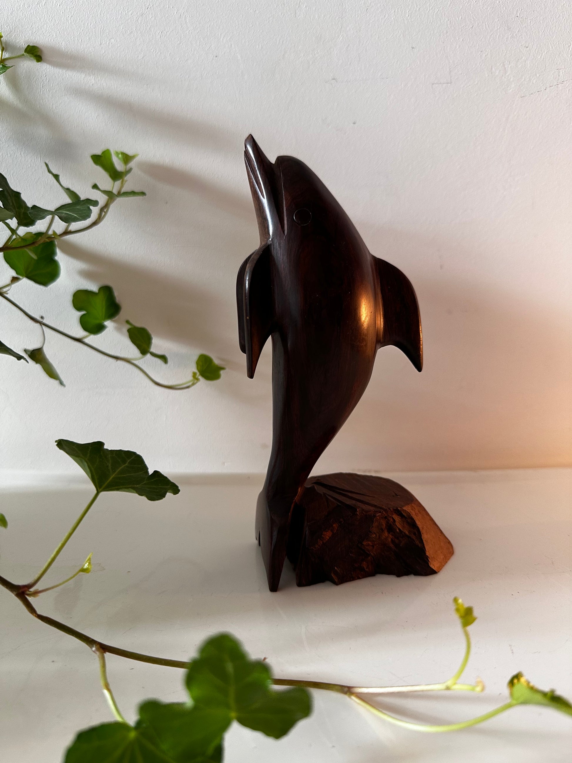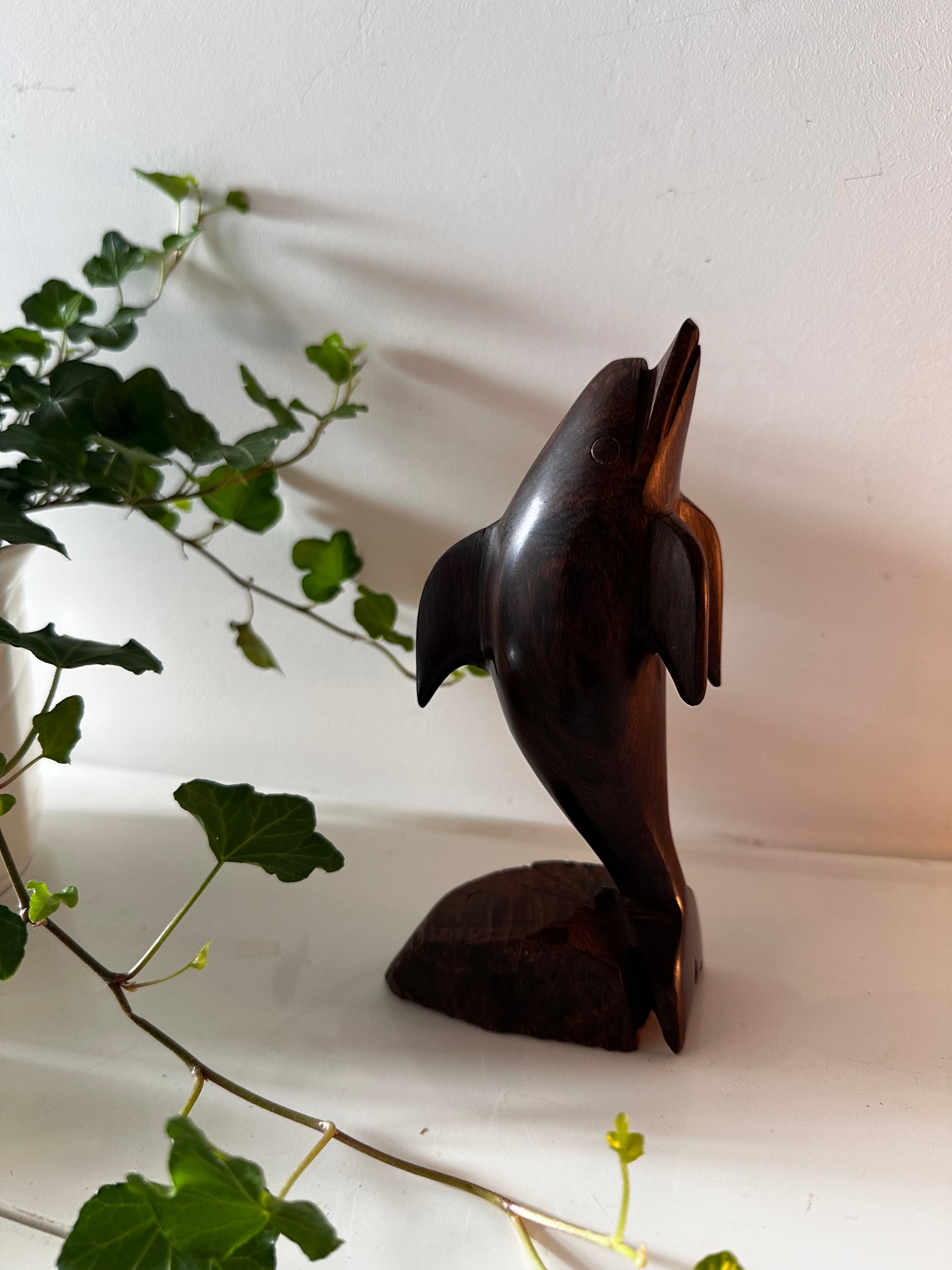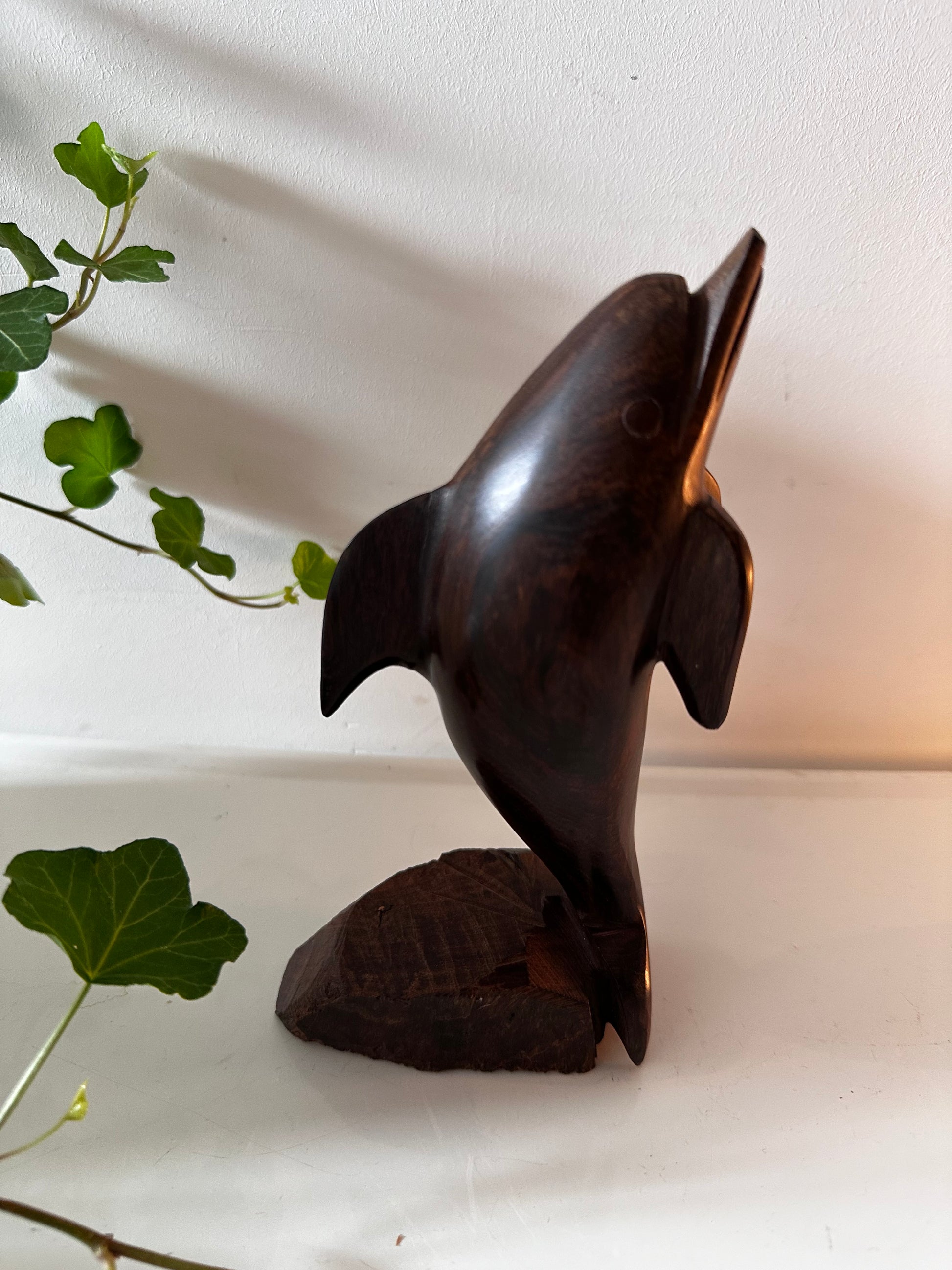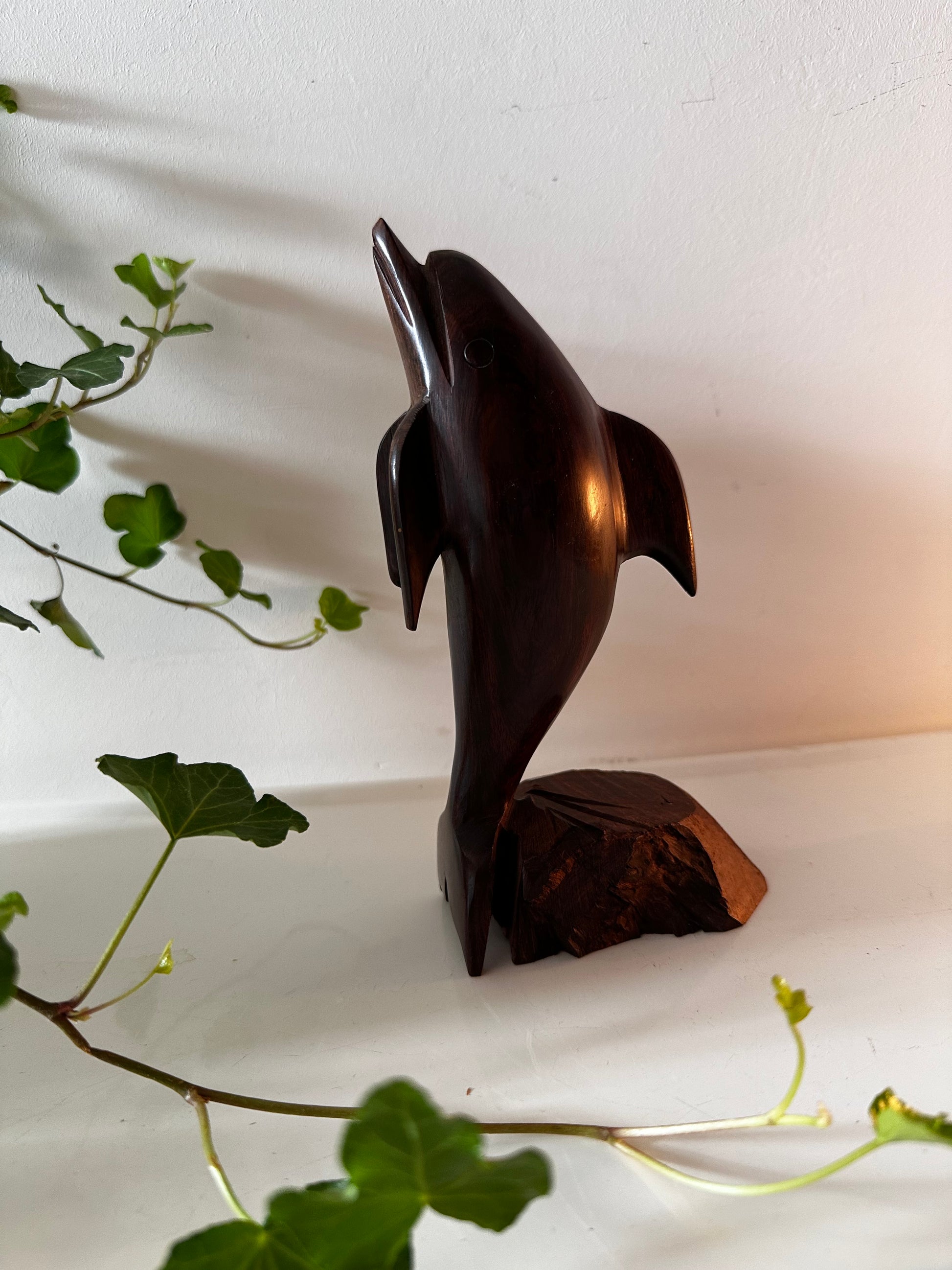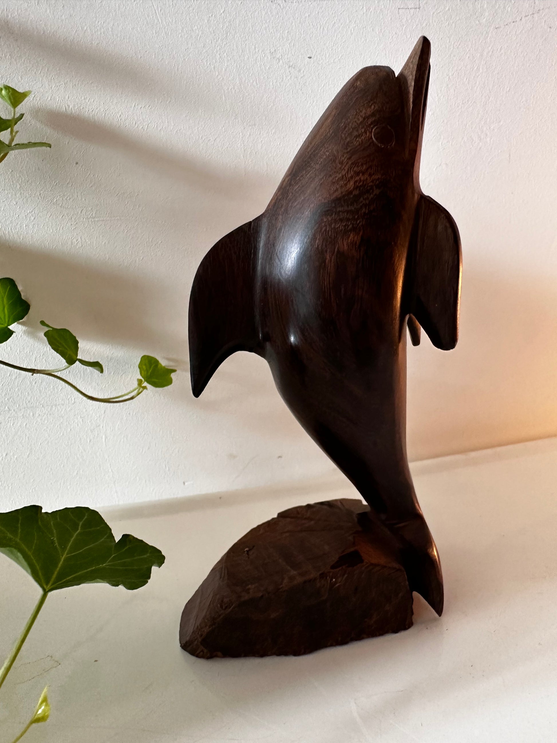 Een superleuke boekensteun, Mid Century in de vorm van een dolfijn. De boekensteun is gemaakt van hout en in een hele mooie vintage staat. Dateert jaren 70.