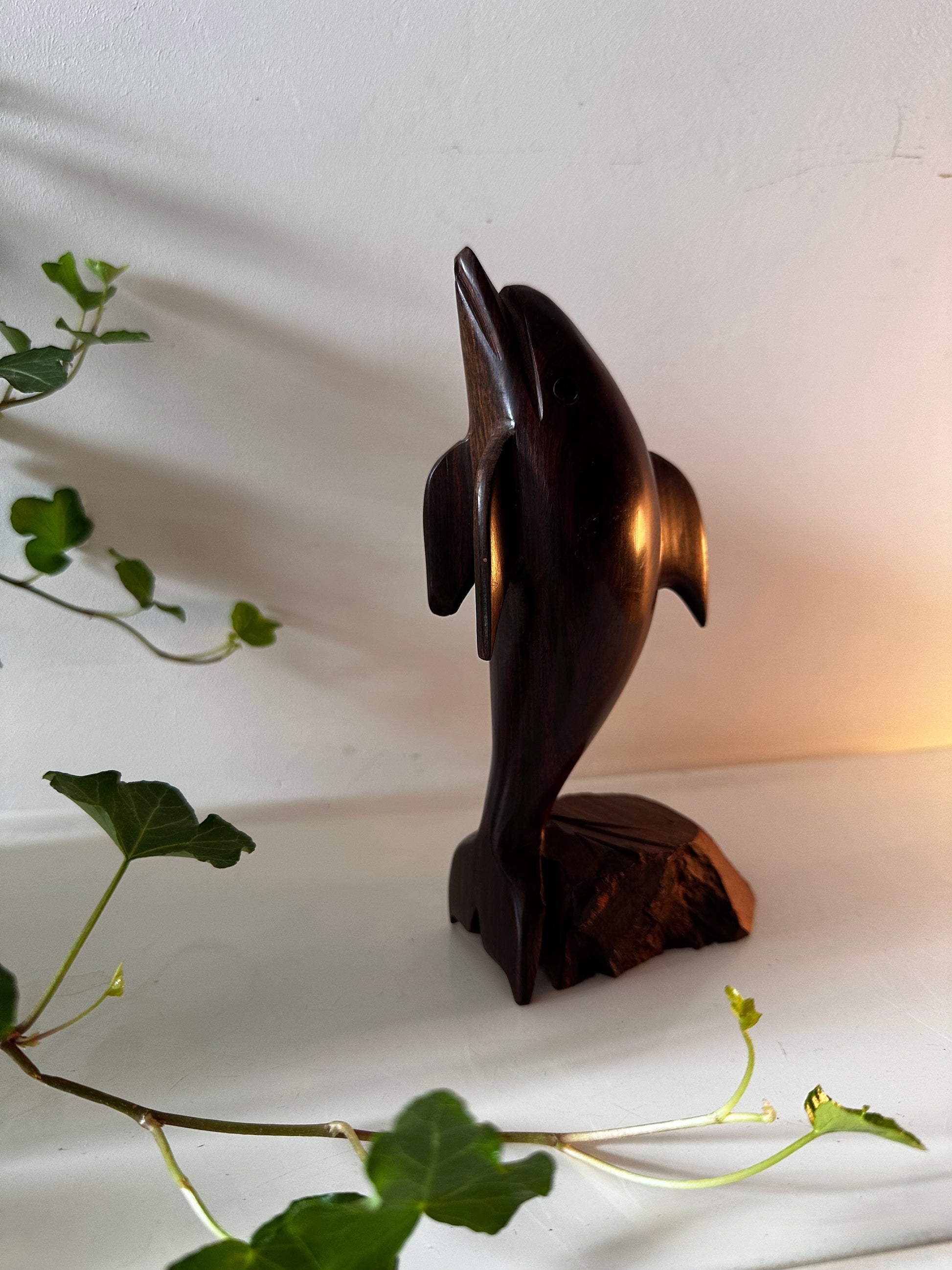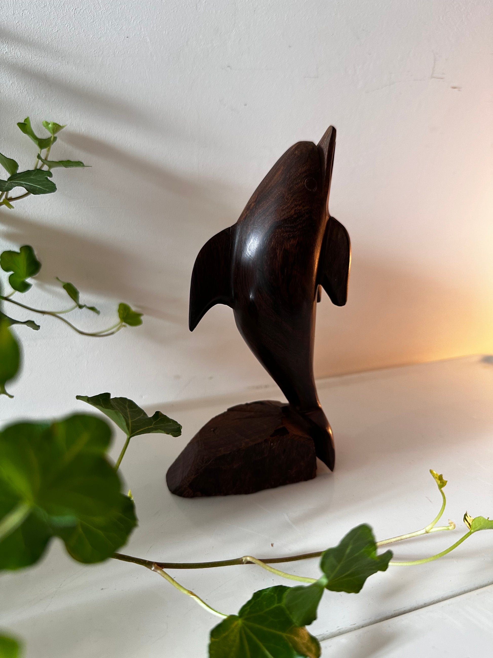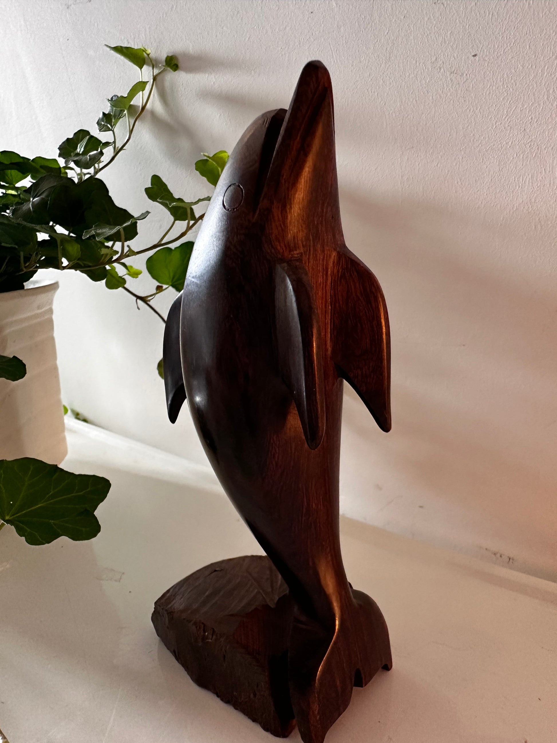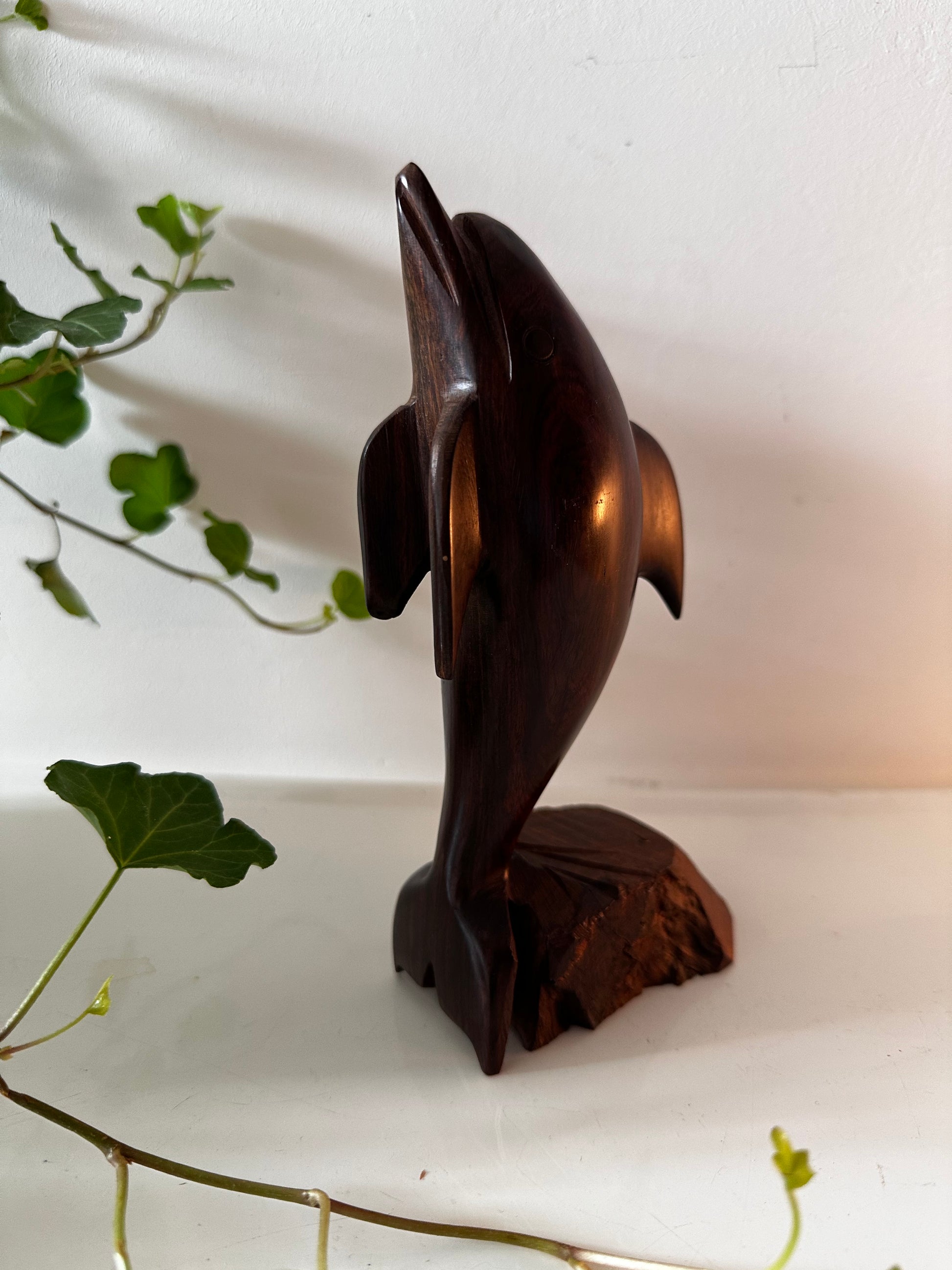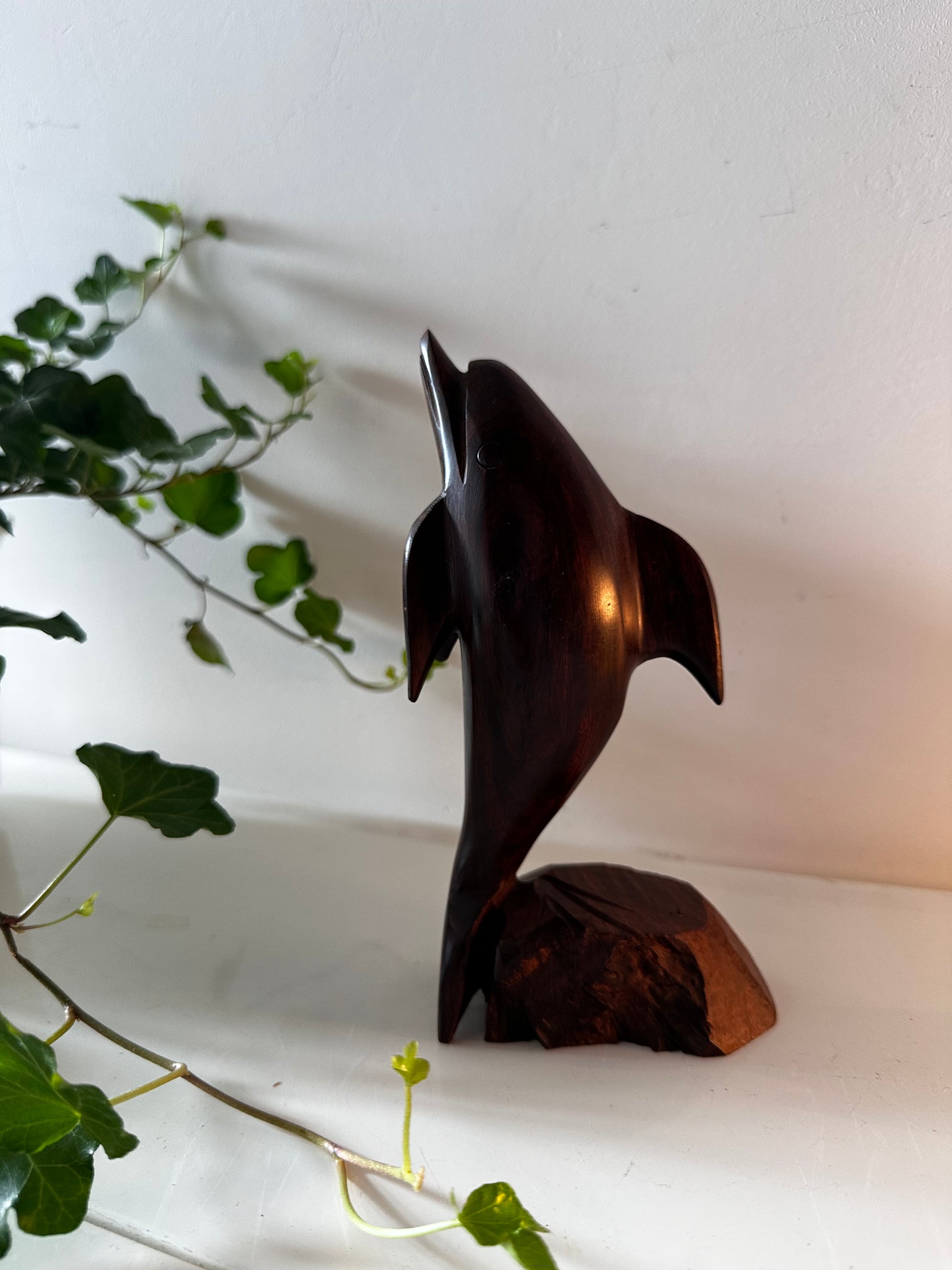 Een superleuke boekensteun, Mid Century in de vorm van een dolfijn. De boekensteun is gemaakt van hout en in een hele mooie vintage staat. Dateert jaren 70.