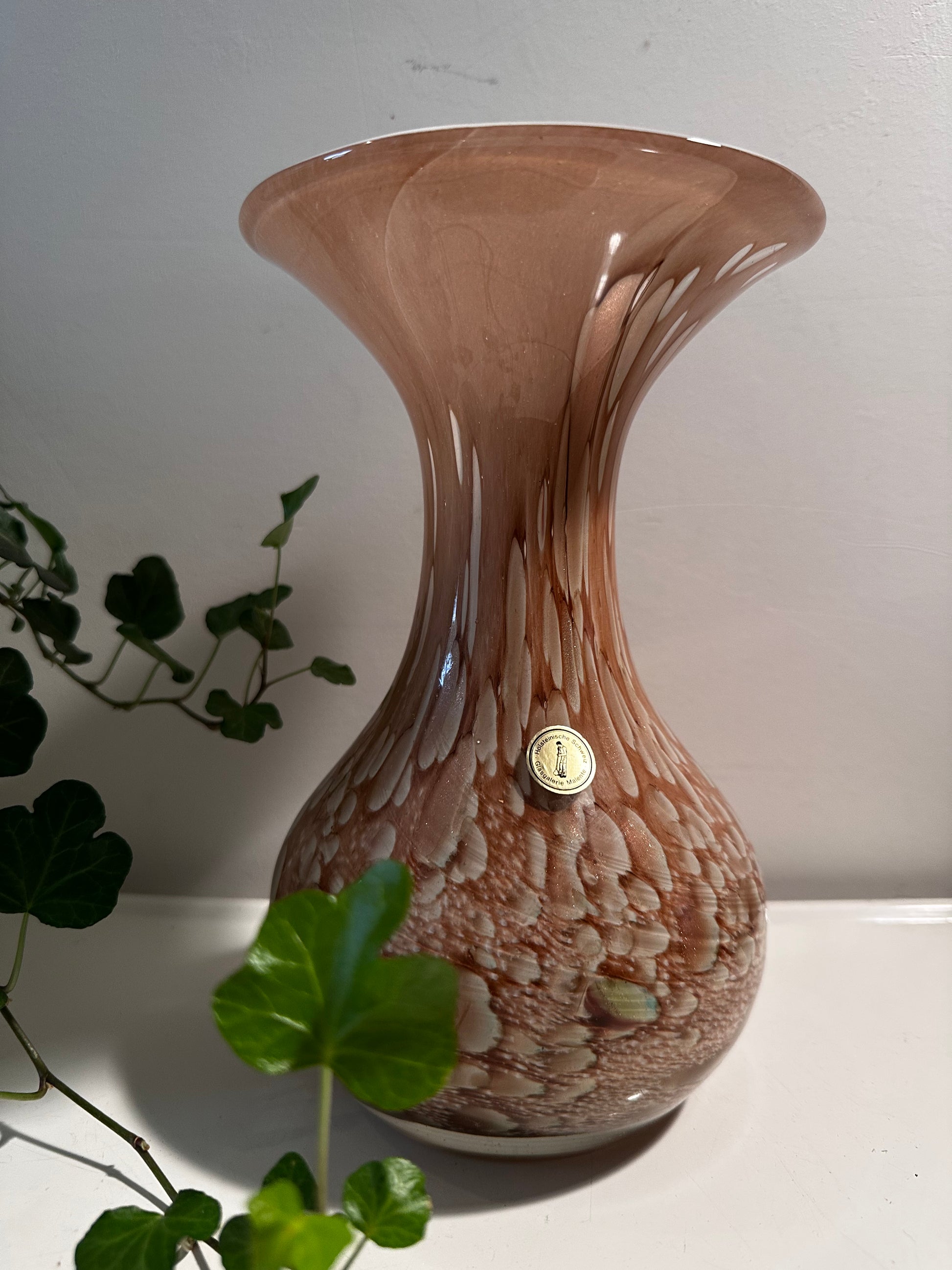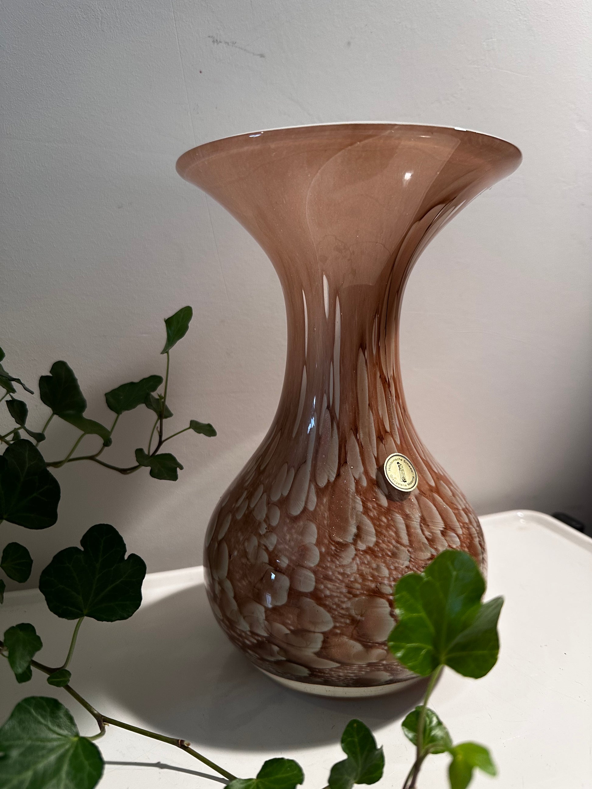 Wat een plaatje deze Murano glazen vaas. In een super mooie kleur! Taupe/bruin met wit. De vaas is mondgeblazen met merk stickertje.
