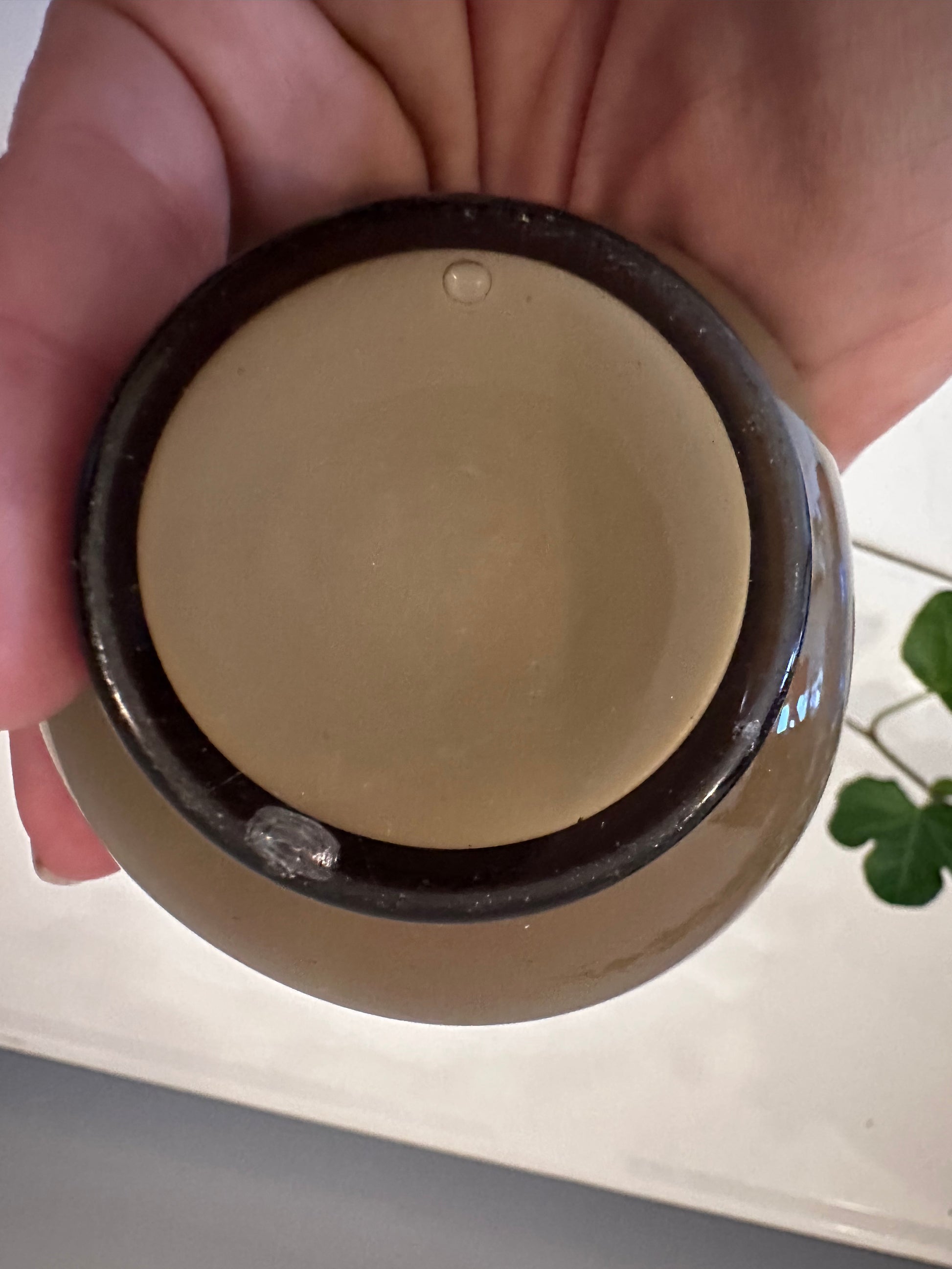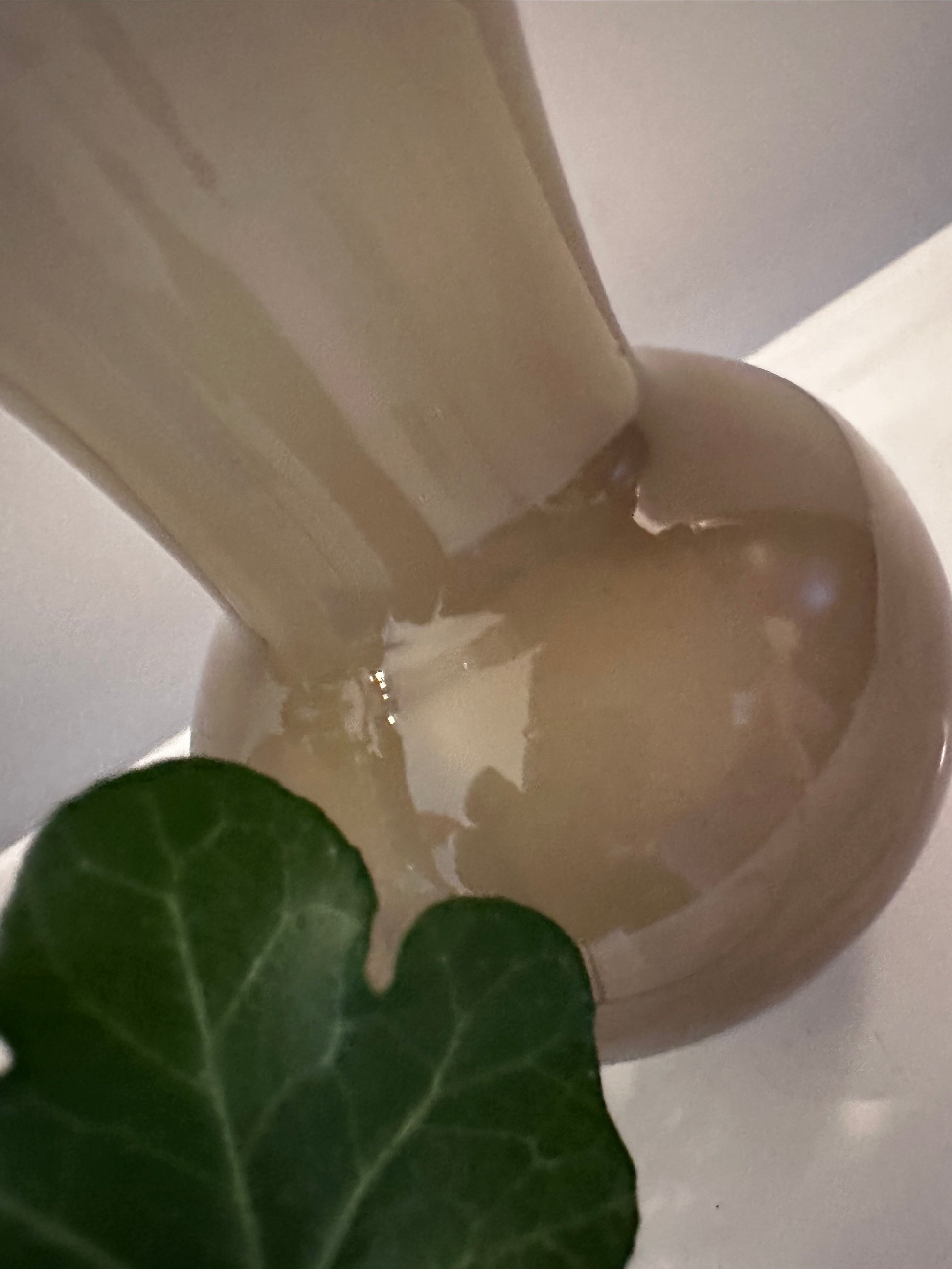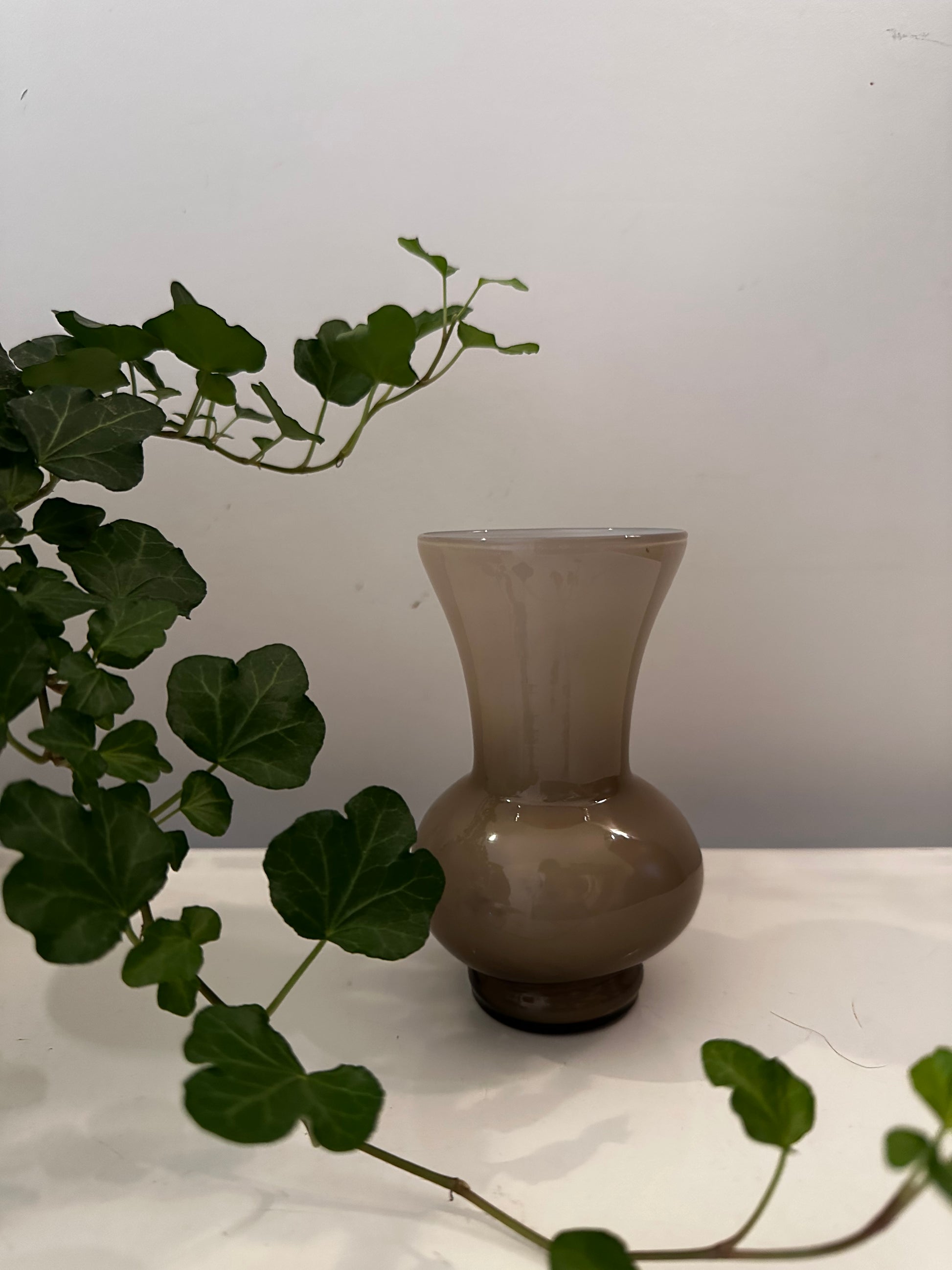 Een lief Murano glazen vaasje. In een mooie vintage staat. Heeft een soort taupe kleur en een witte binnenkant.