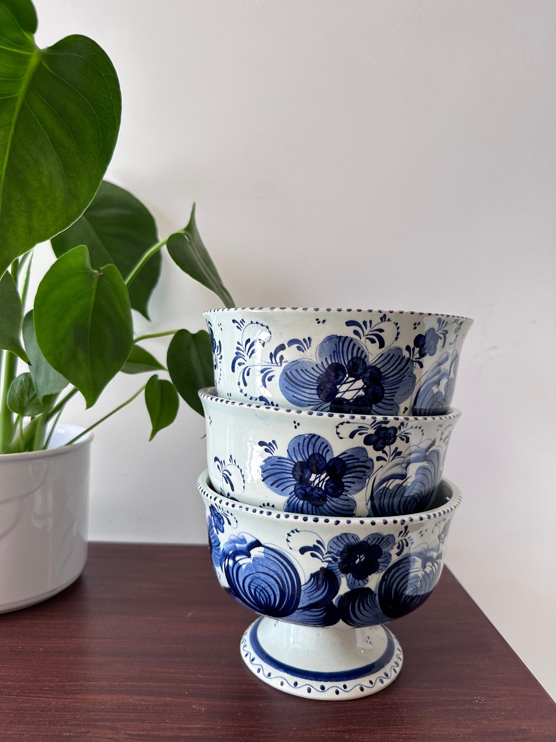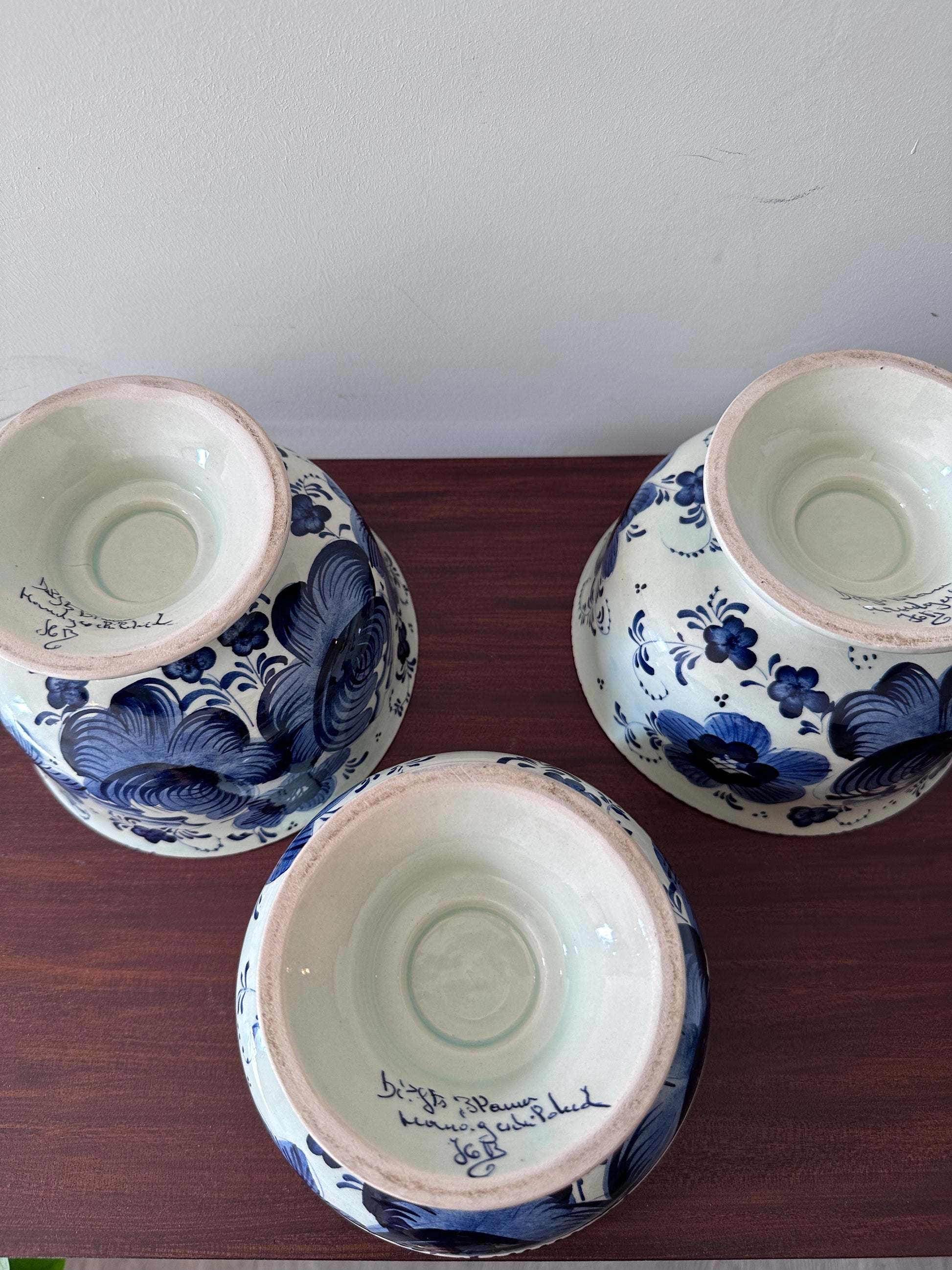 3 prachtige kommen / bloempotten in een perfecte vintage staat. Kommen zijn volledig in tact en van mooie kwaliteit. De kommen zijn alle drie gemerkt onder. Het feit dat dit een complete set is maakt het heel bijzonder.