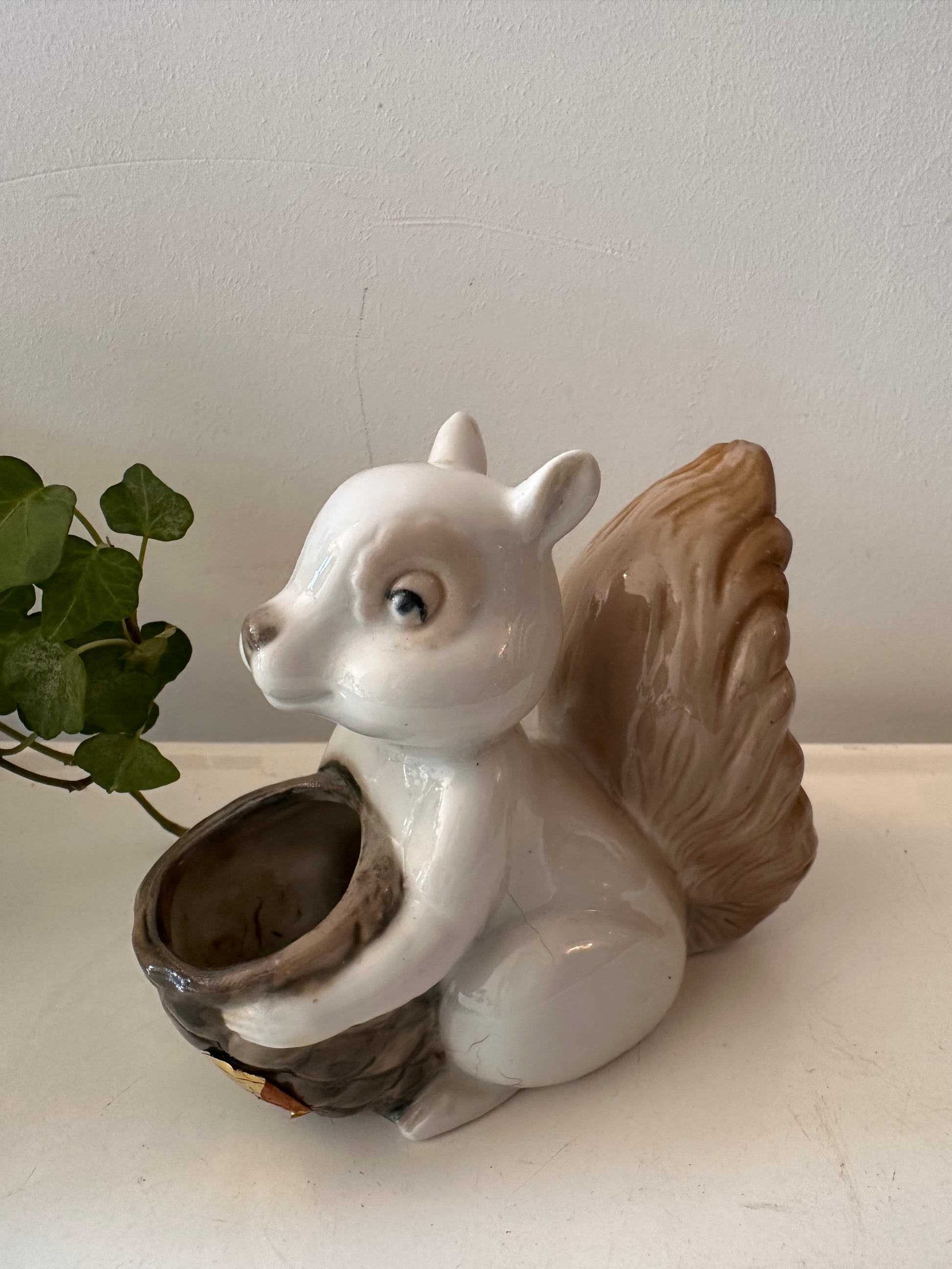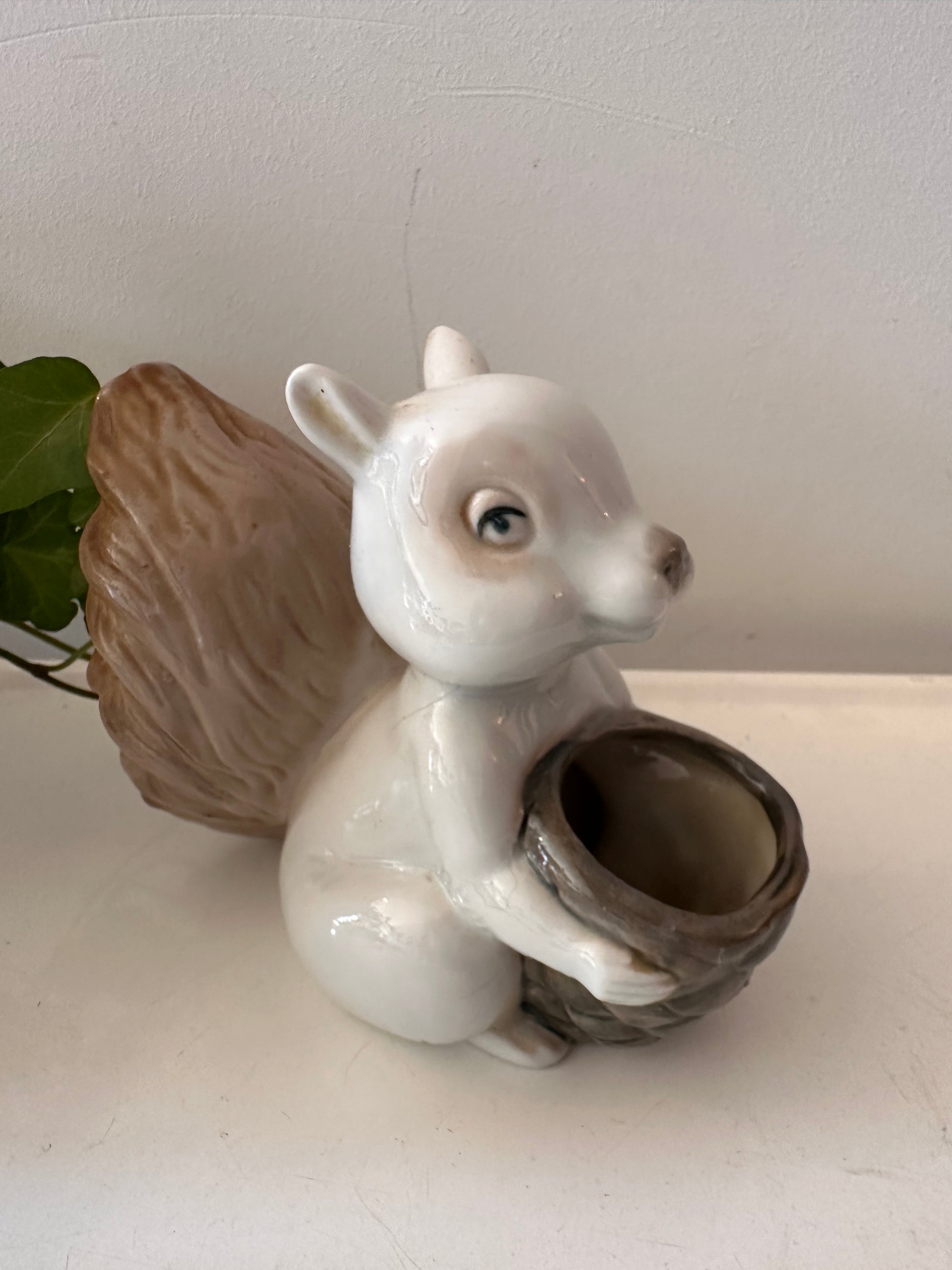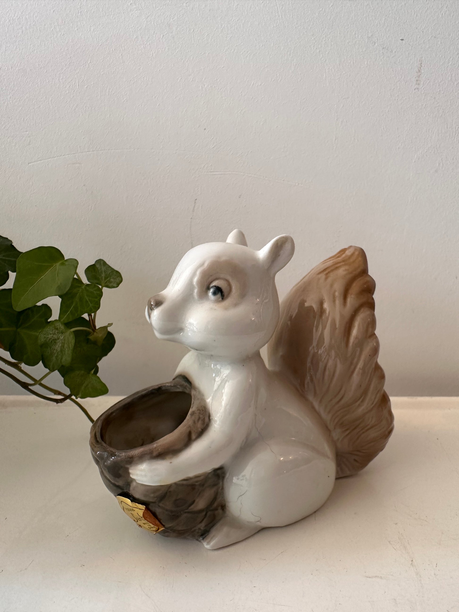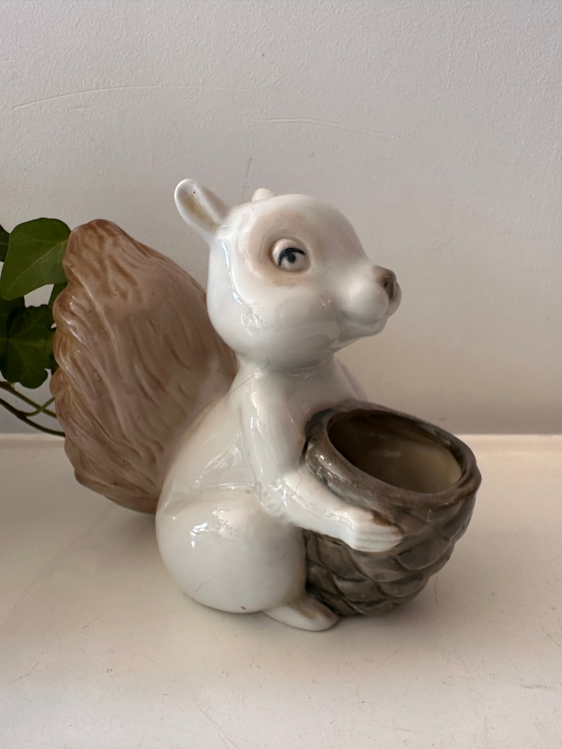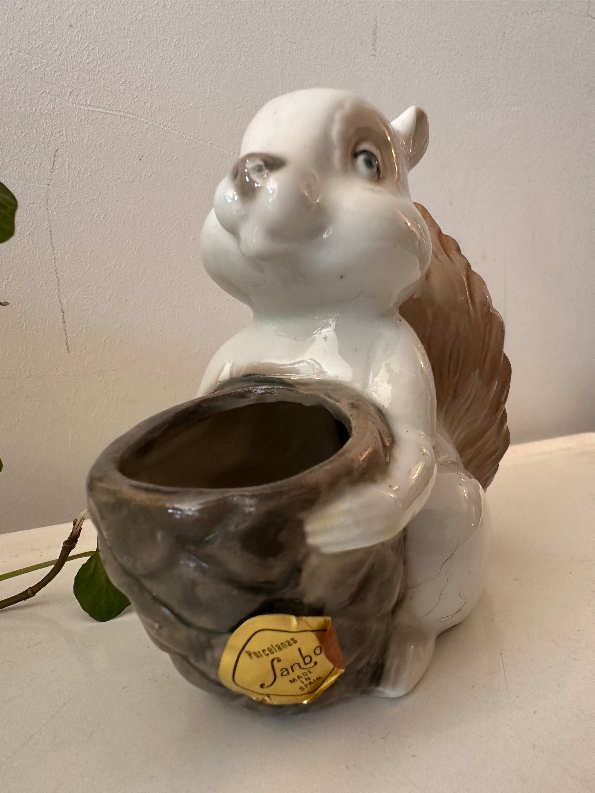 Hoe leuk is dit porseleinen eekhoorntje met dennenappel? Afkomstig uit Spanje en nog met originele sticker. Ideaal om iets kleins in te zetten, zoals snoepjes, sleutels of een mini plantje. Q268
