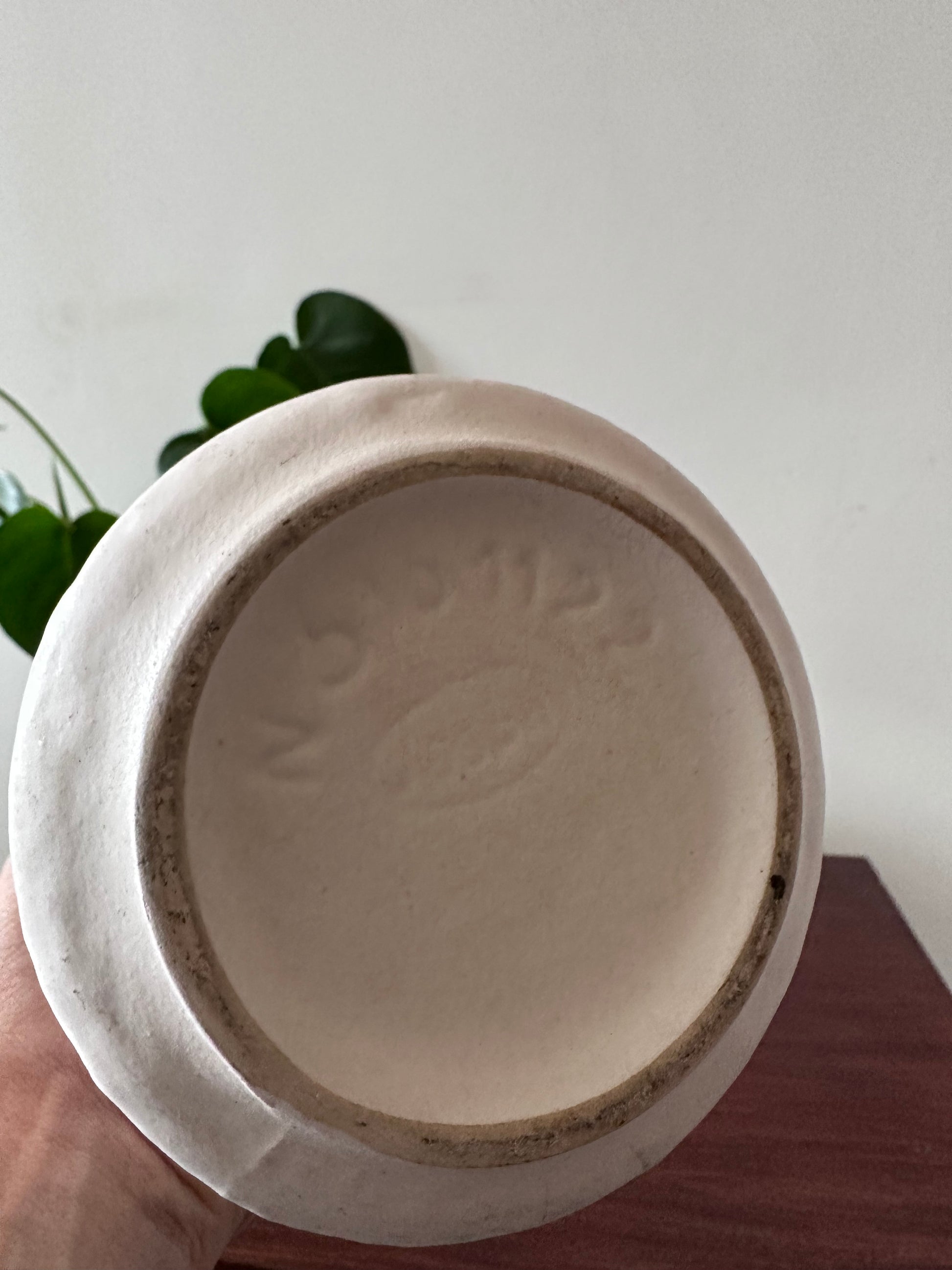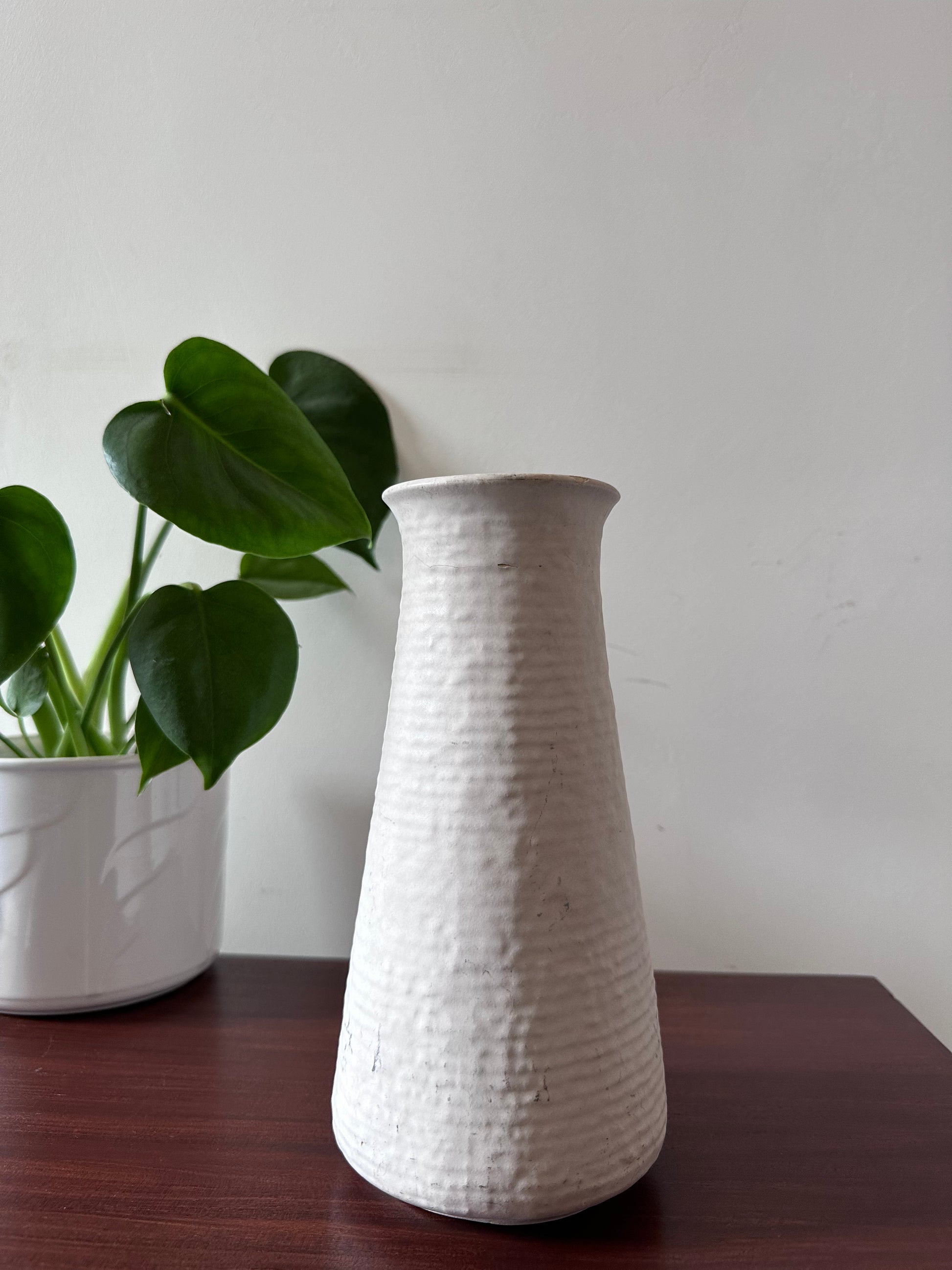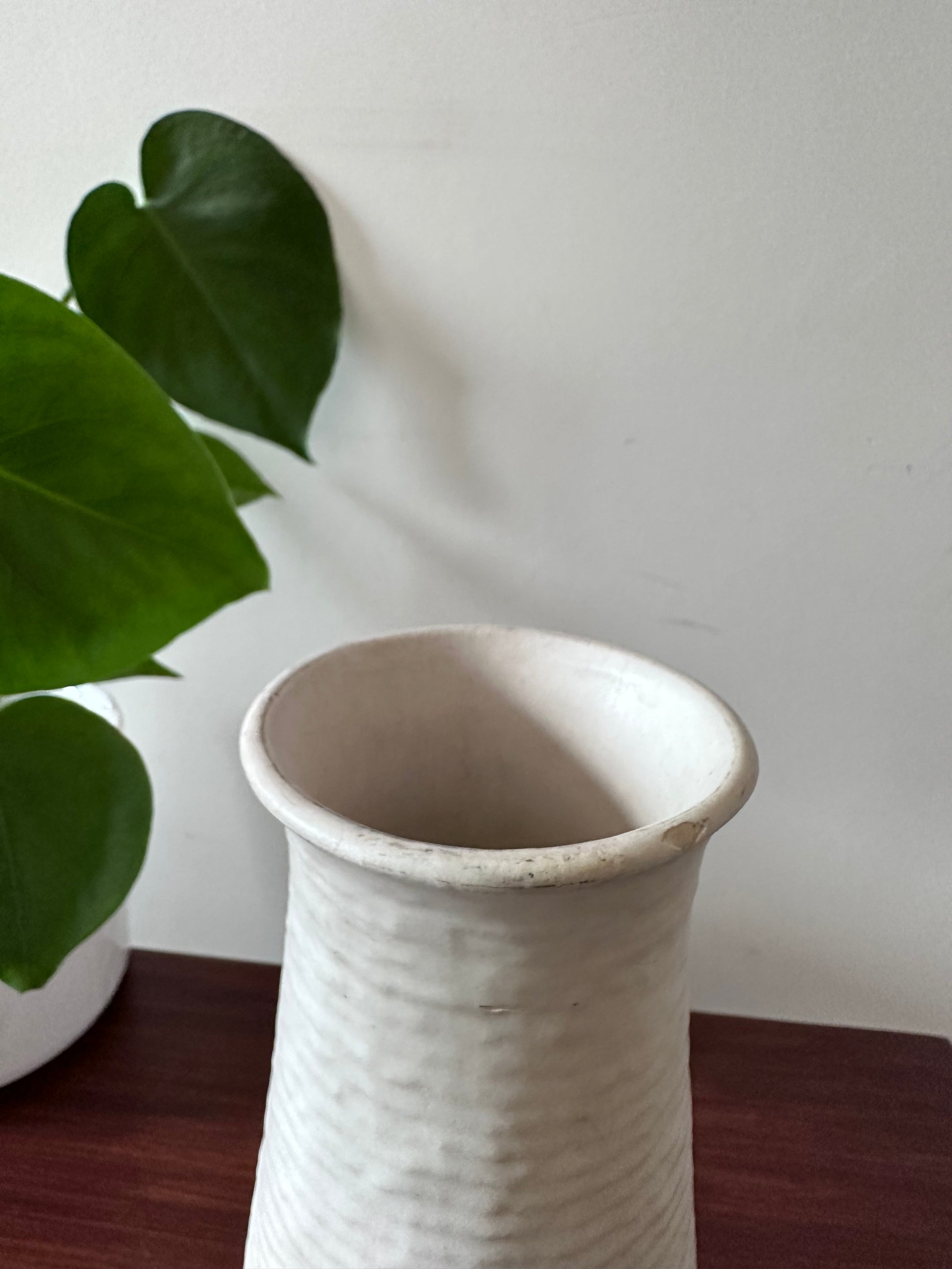 Een hele mooie vaas West Germany. Vaas heeft een bobbelig motief en een witte kleur. De vaas is gemerkt onder. Heeft wat donker grijze vlekjes/plekjes niet storend