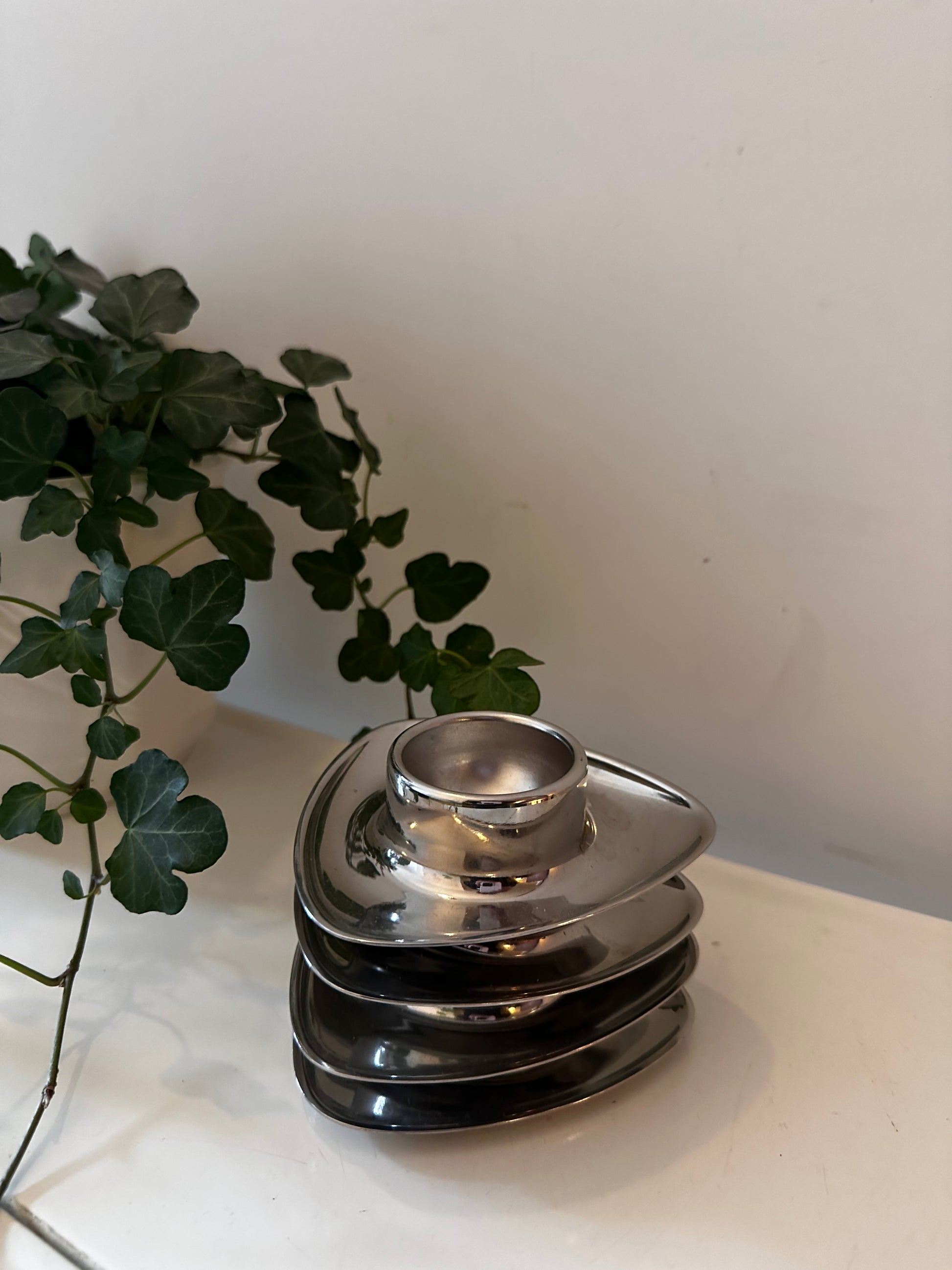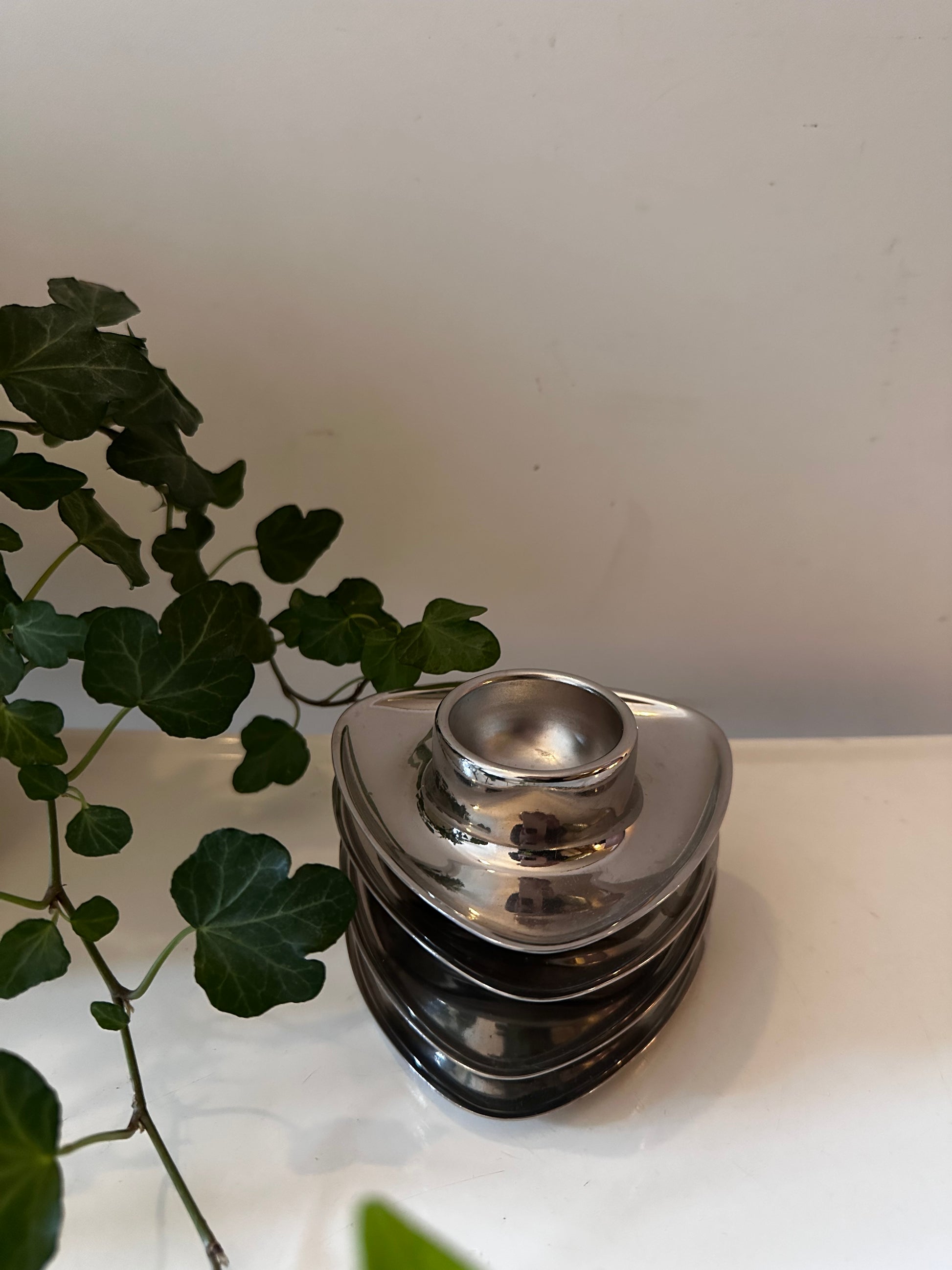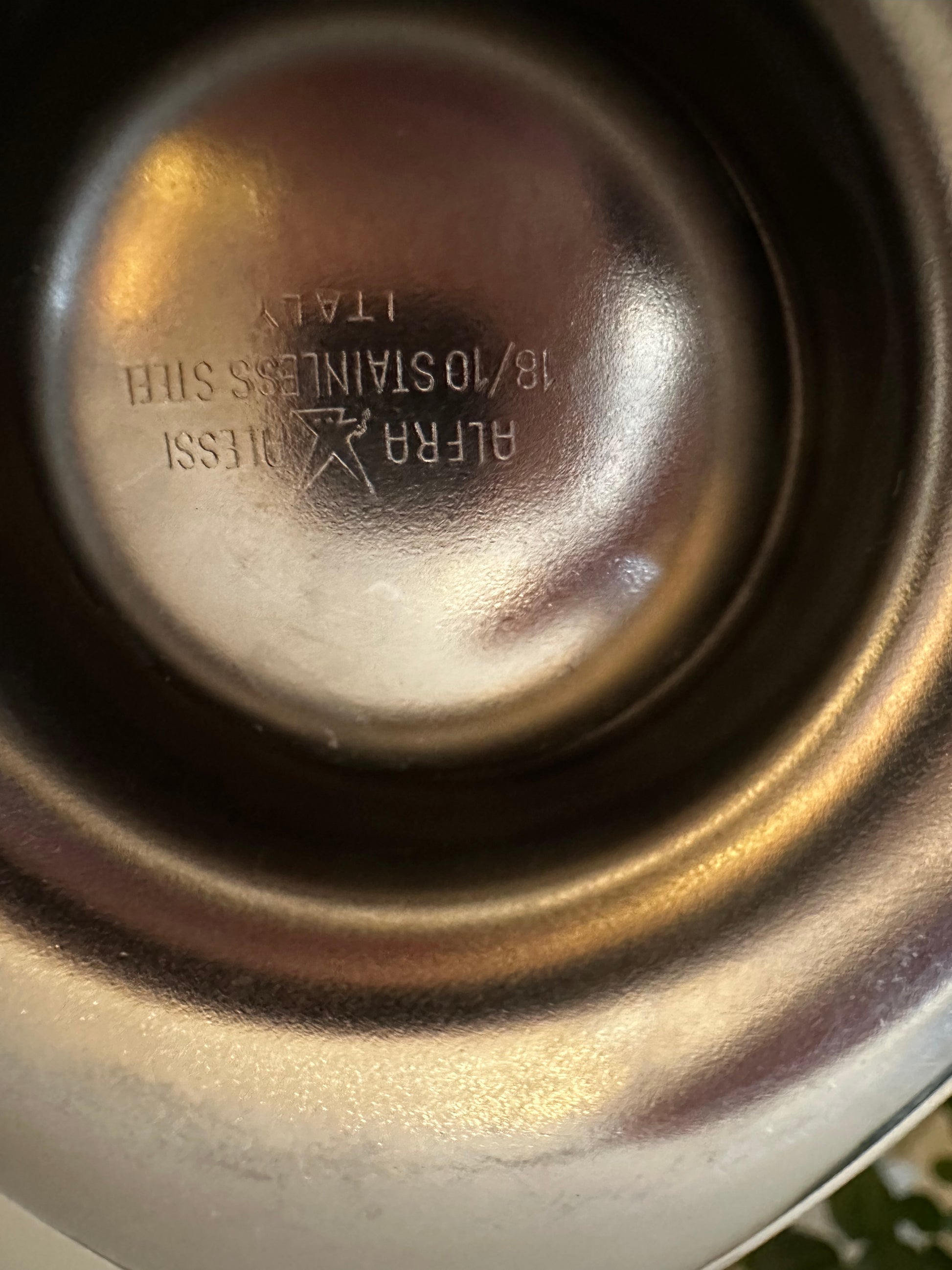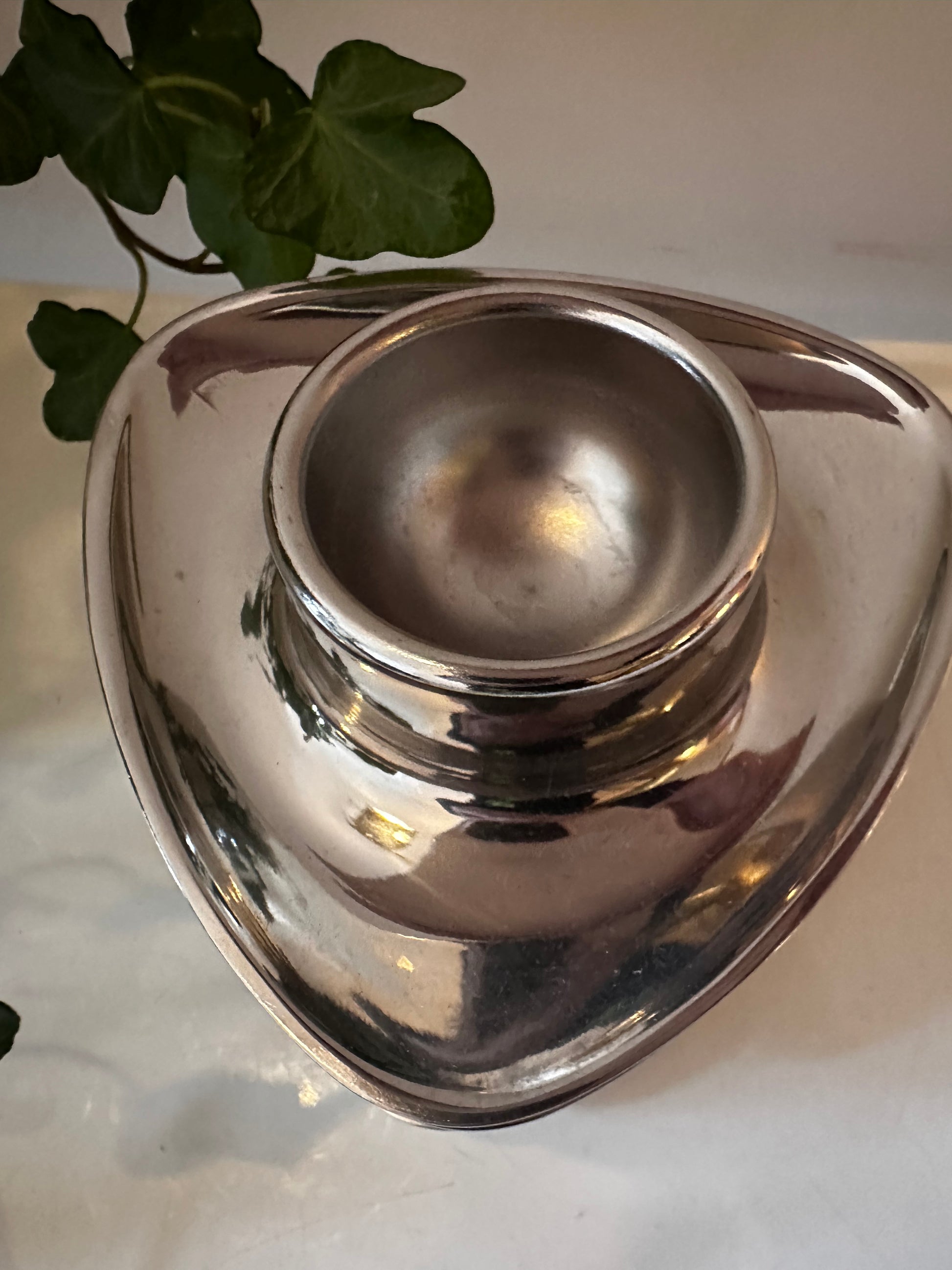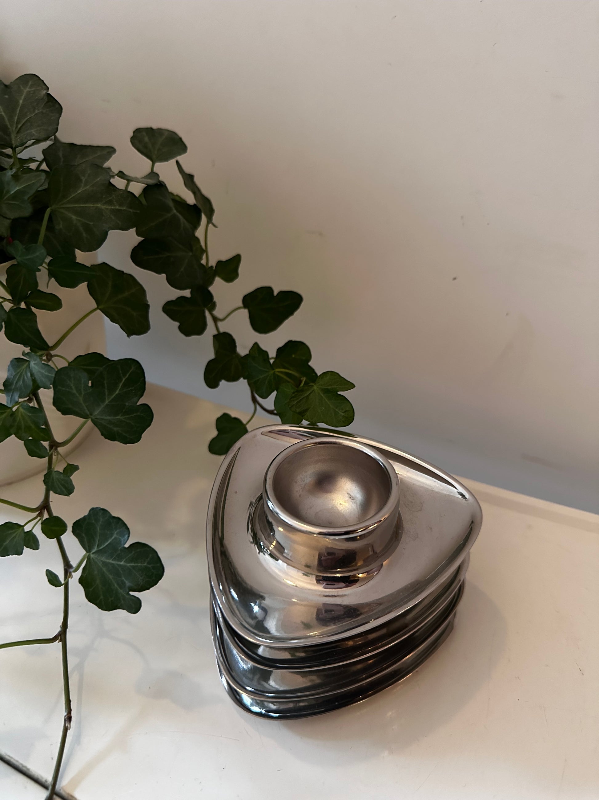 Italiaans design eierdopjes van geborsteld roestvrij staal, ontworpen in de jaren ’70 door Carlo Mazzeri en Anselmo Vitale voor Alfra Alessi. Minimalistisch Italiaans design met die typische driehoekige vorm – strak, functioneel en een echte designklassieker op tafel. Q971