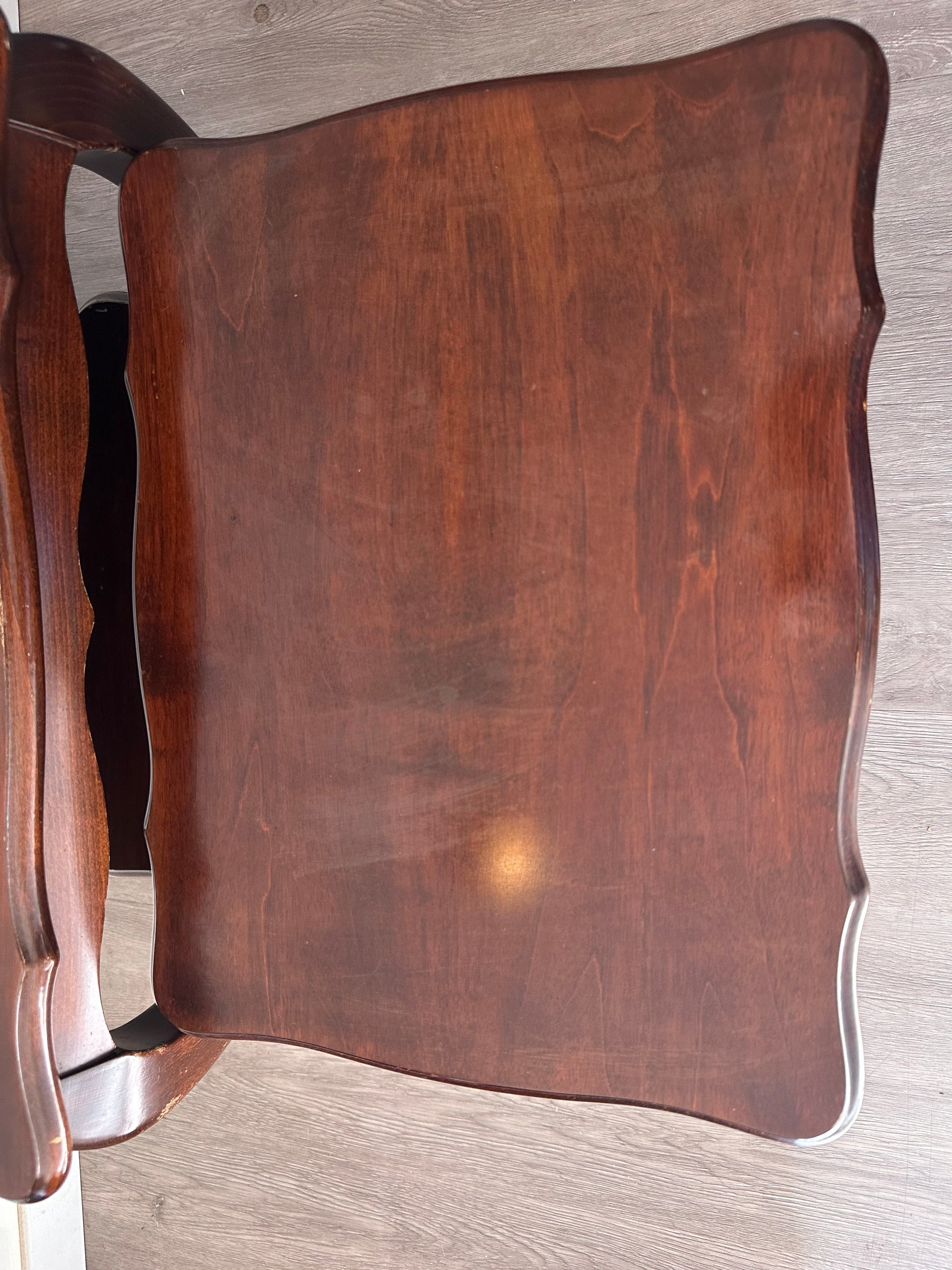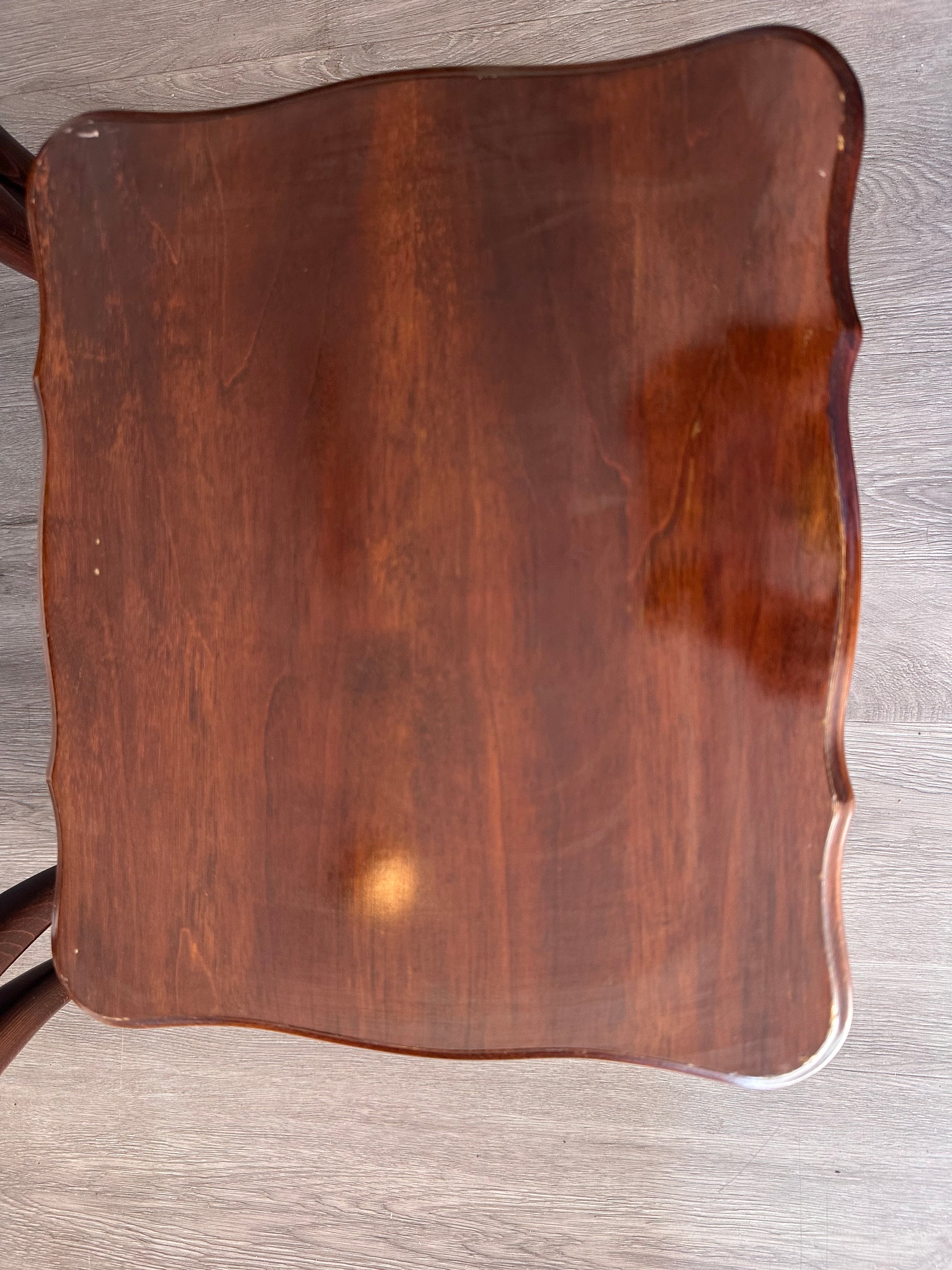 Hoe leuk zijn deze drie bijzettafels in Queen Anne-stijl? Je schuift ze makkelijk onder elkaar en gebruikt ze los of samen. Sierlijke poten, golvende bladrand en warme houttint geven ze dat klassieke vintage karakter.
