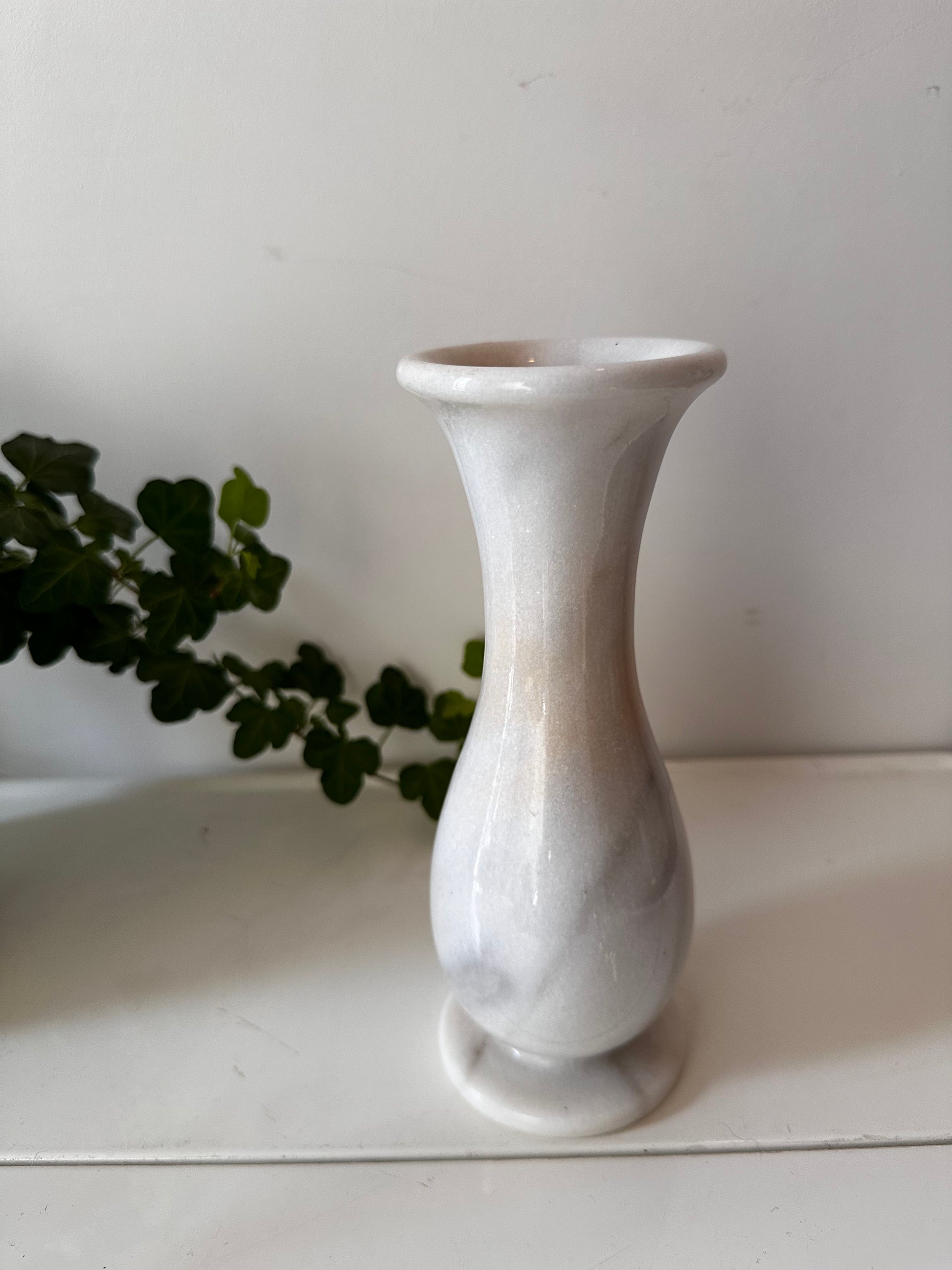 Prachtige Onxy marmeren vaas in een supermooie vintage staat. Vaasje heeft een kleurenpalet van grijs wit en een vleugje beige. Onxy vazen zijn altijd wat zwaardere modellen