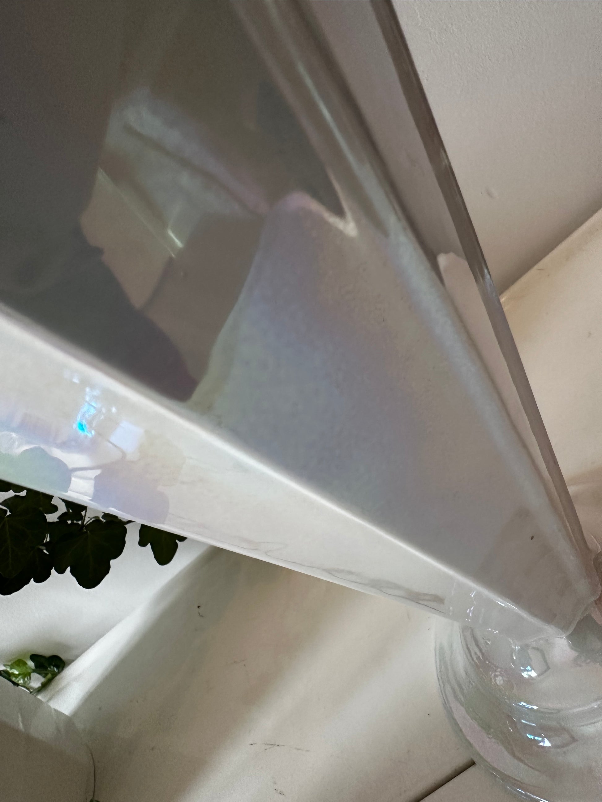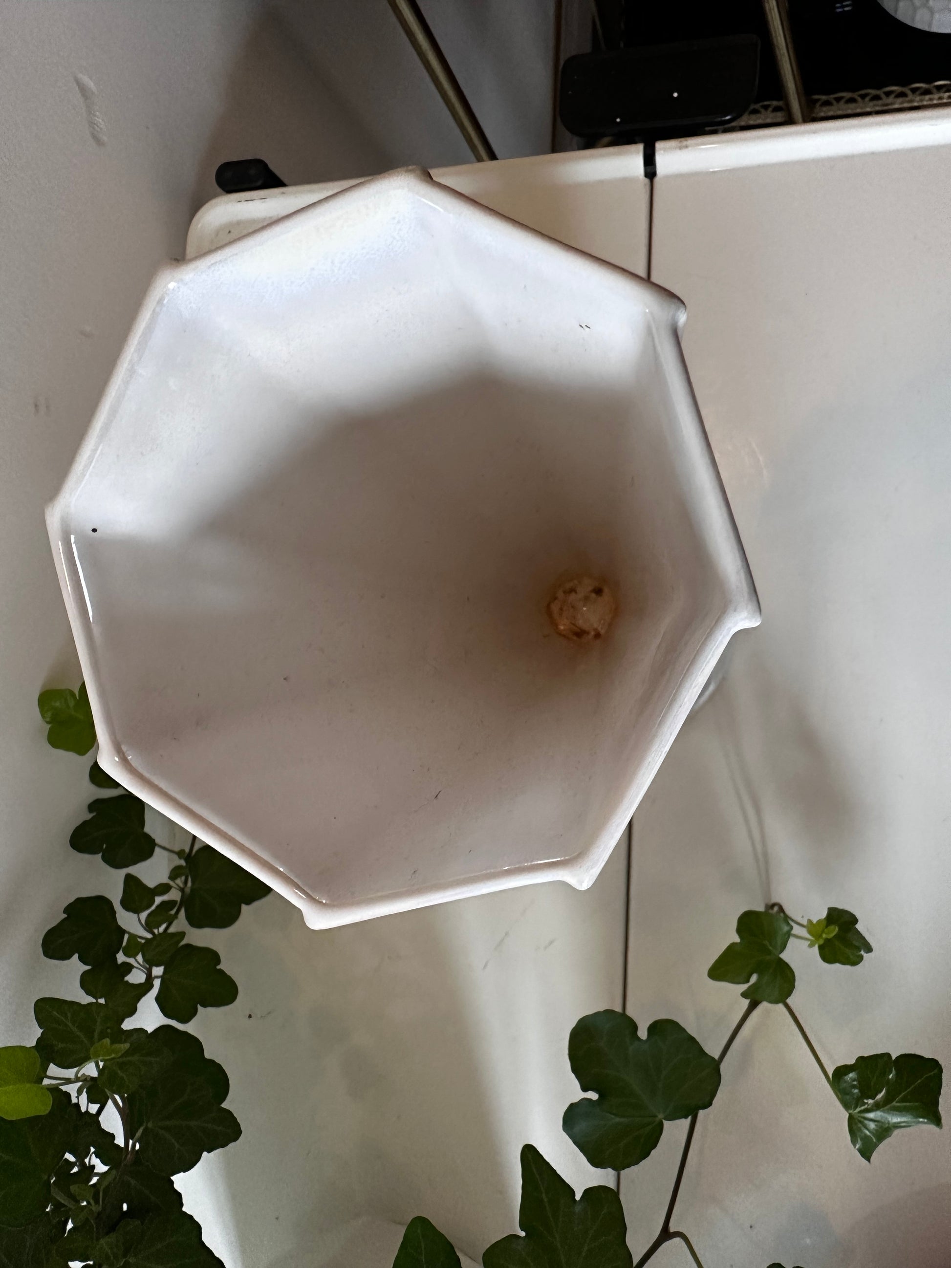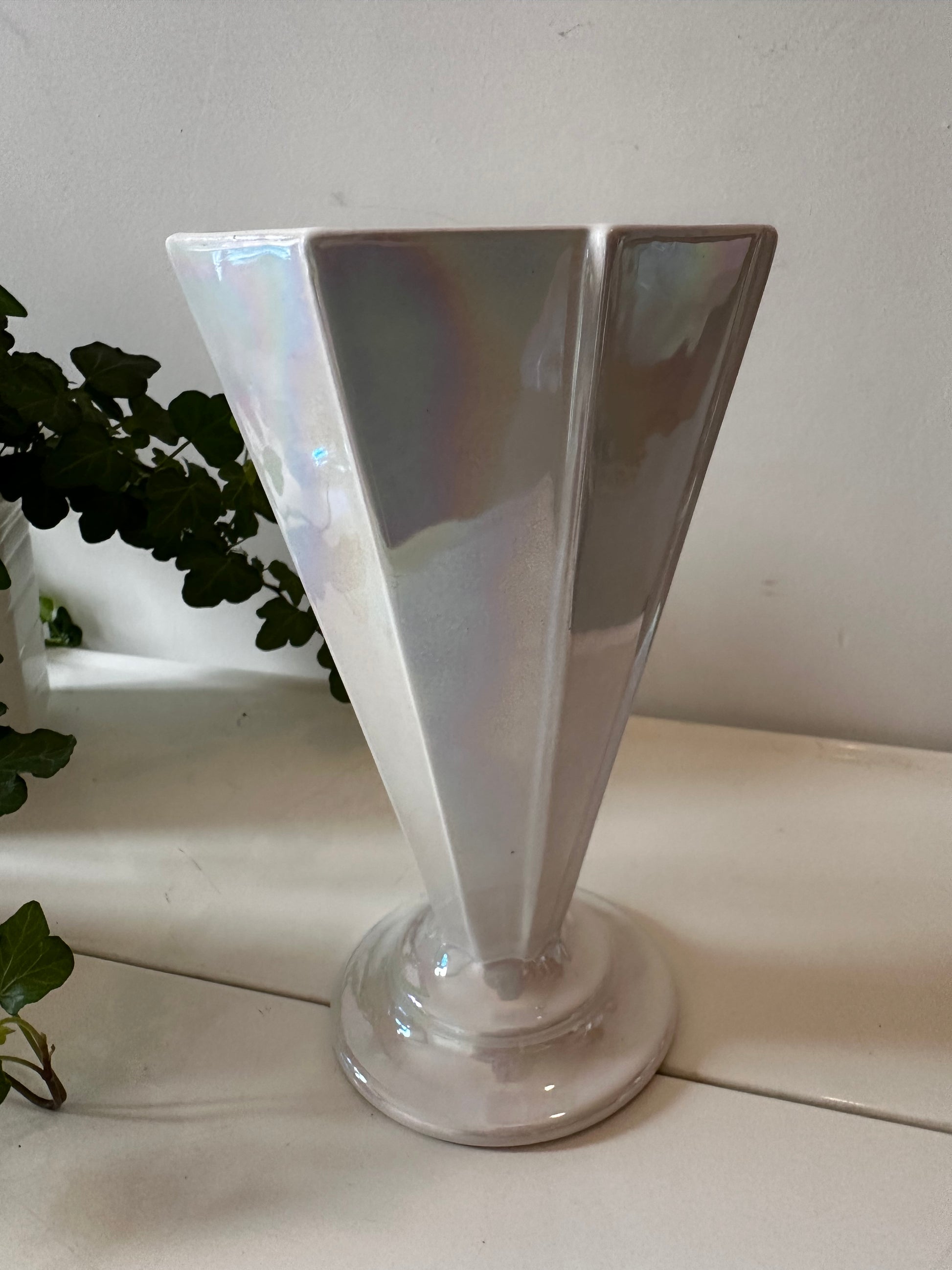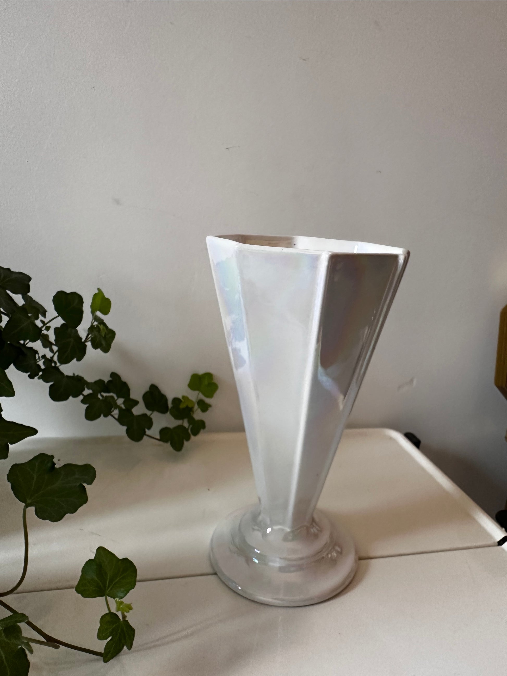 Hele toffe achtkantige vaas met een parelmoer kleur in een top vintage staat. Vaas is een uitlopend model.