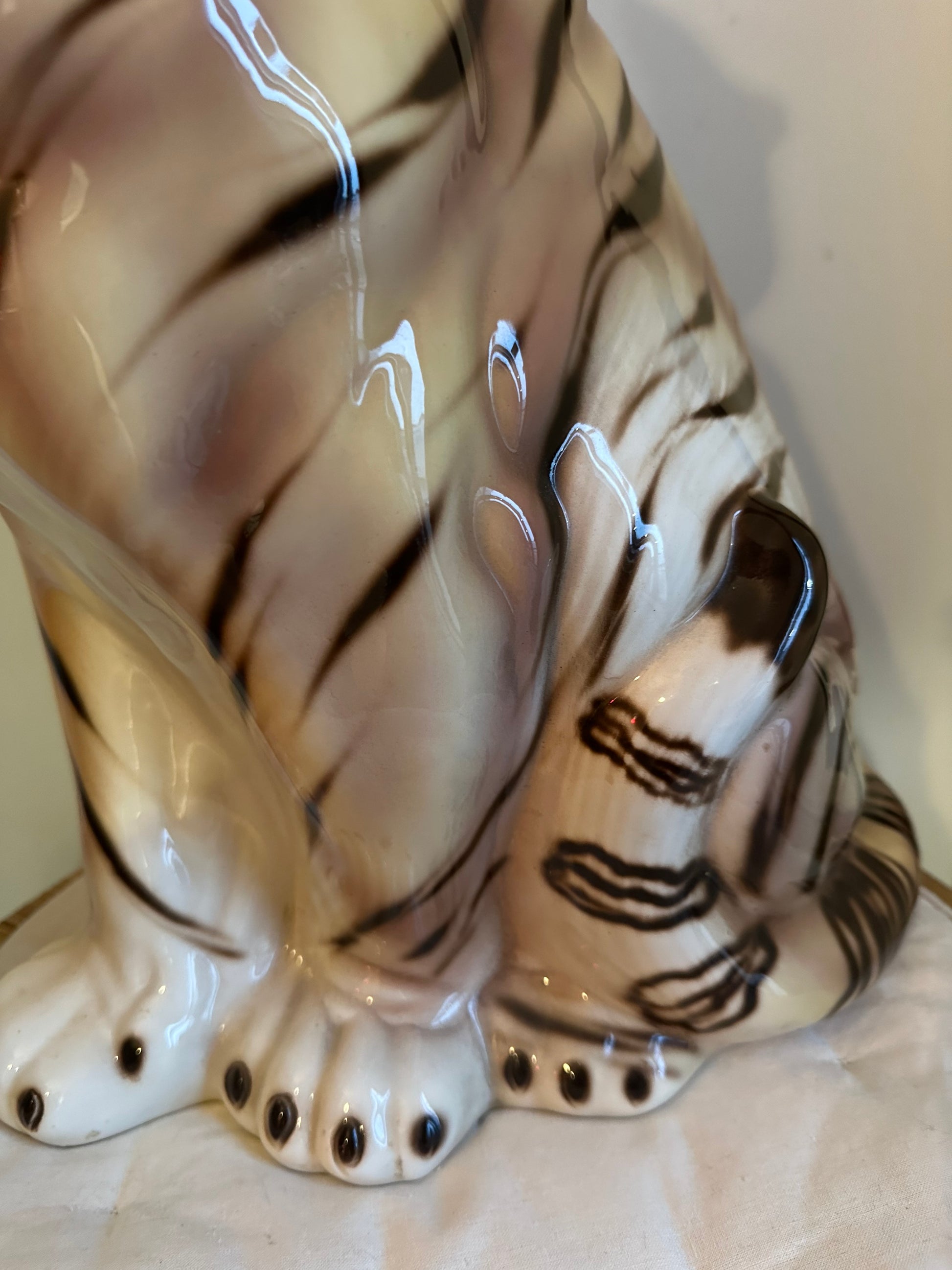 Wauw wat een te gek beeld is dit. Een XL porseleinen tijger. In een supermooie vintage staat. Een minuscuul beschadiging aan het oortje. Gemerkt onder Italiaans porselein dateert jaren 50.