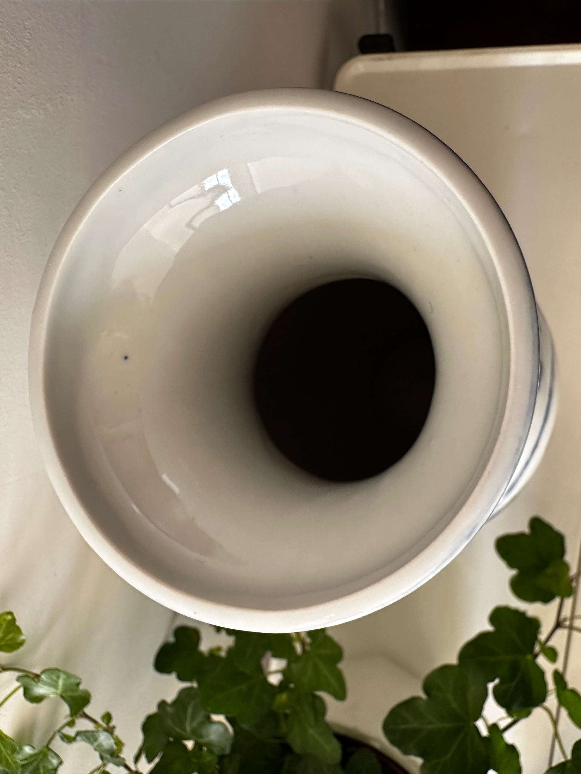 Supermooie porseleinen Chinese vaas. Mooie decoratieve beschilderd, met vogels en planten. In een mooie vintage staat. Wit met blauw gekleurd.