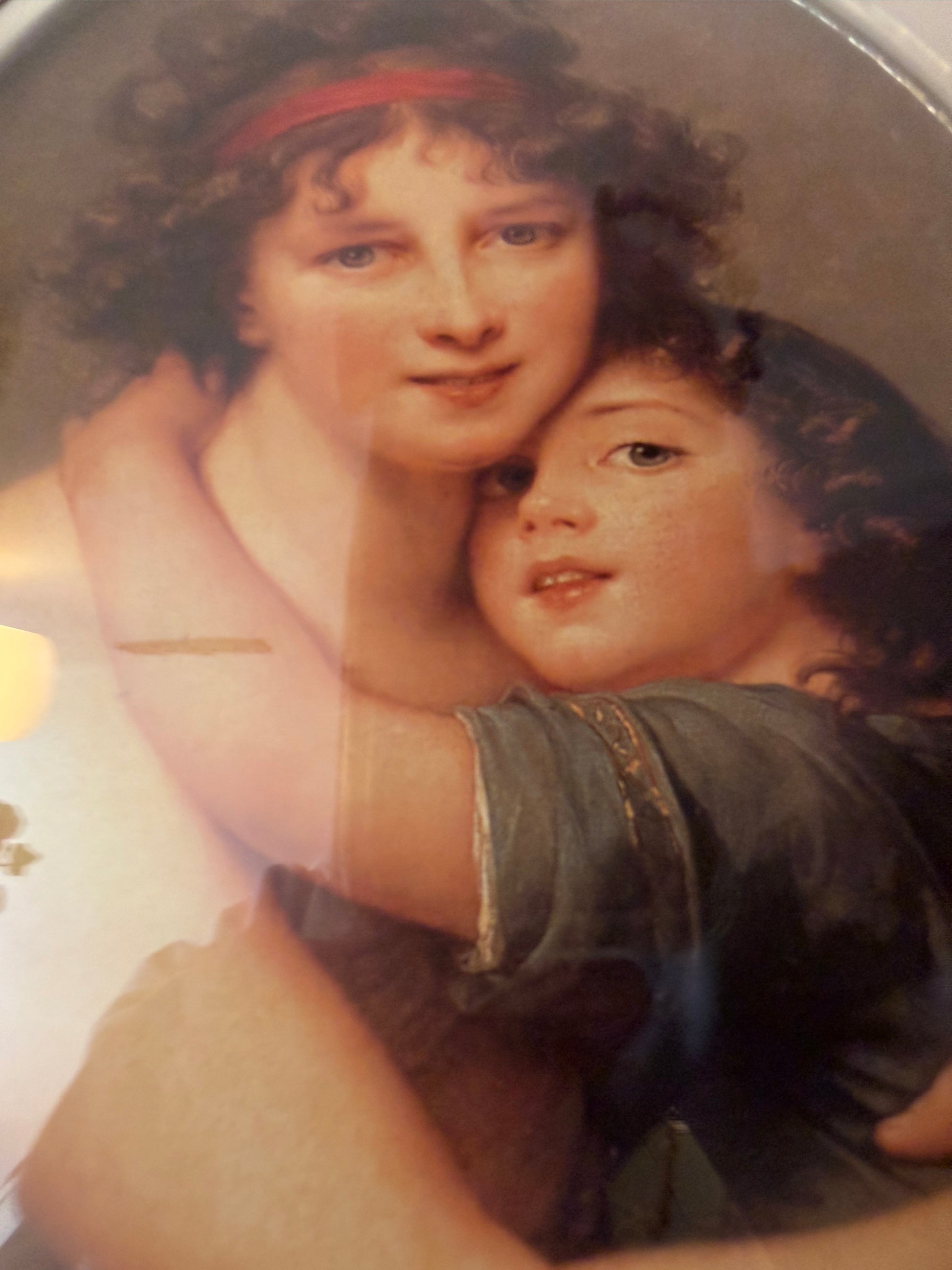 Prent moeder en kind in ovale lijst met bol glas