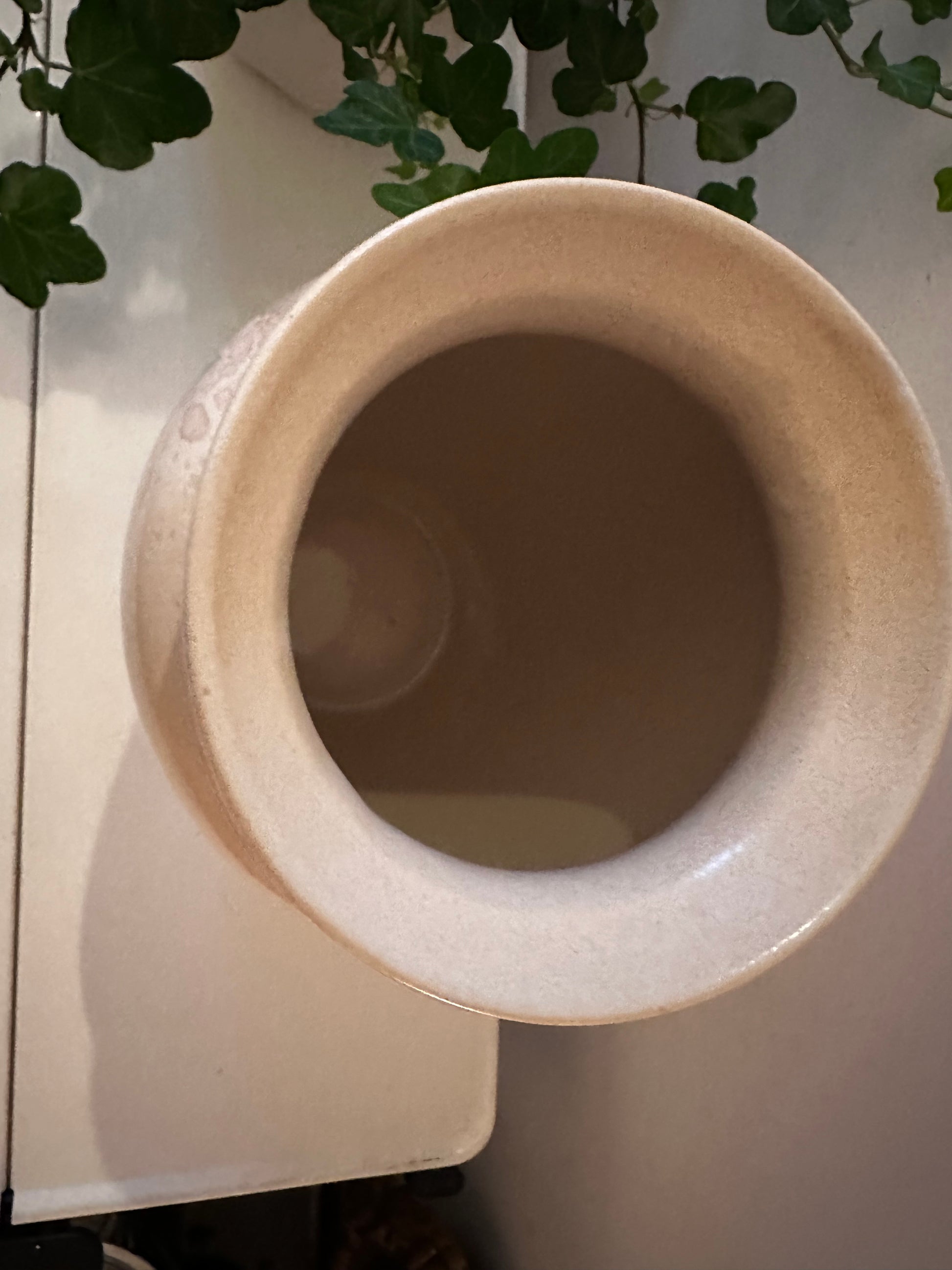 Een beauty van een vaas. Pracht van een Scheurich West Germany vaas, afkomstig uit Duitsland en dateert jaren 60/70. In mooie zachte crème tinten. Vaas is gemerkt onder en in een top vintage staat. Afmetingen hoog ca 25 cm breed ca 16 cm