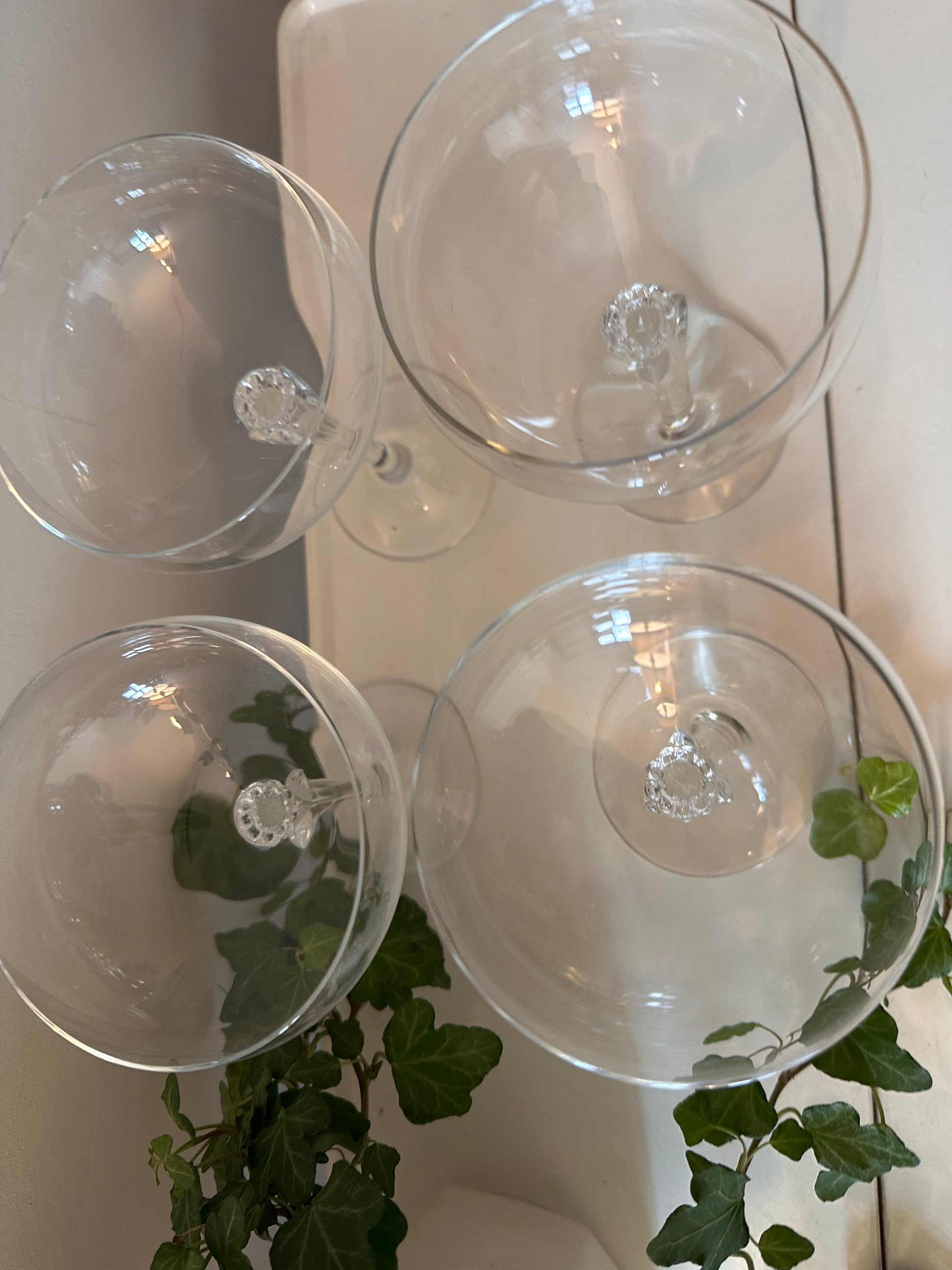 Supermooie set! Deze vier kristallen coupeglazen hebben een sierlijke voet met subtiele details en een tijdloos design dat meteen feestelijk aanvoelt. Perfect voor champagne of een frisse cocktail, maar ook prachtig als dessertglas. Helder kristal met fijne afwerking β stijlvol en klassiek tegelijk. Q576