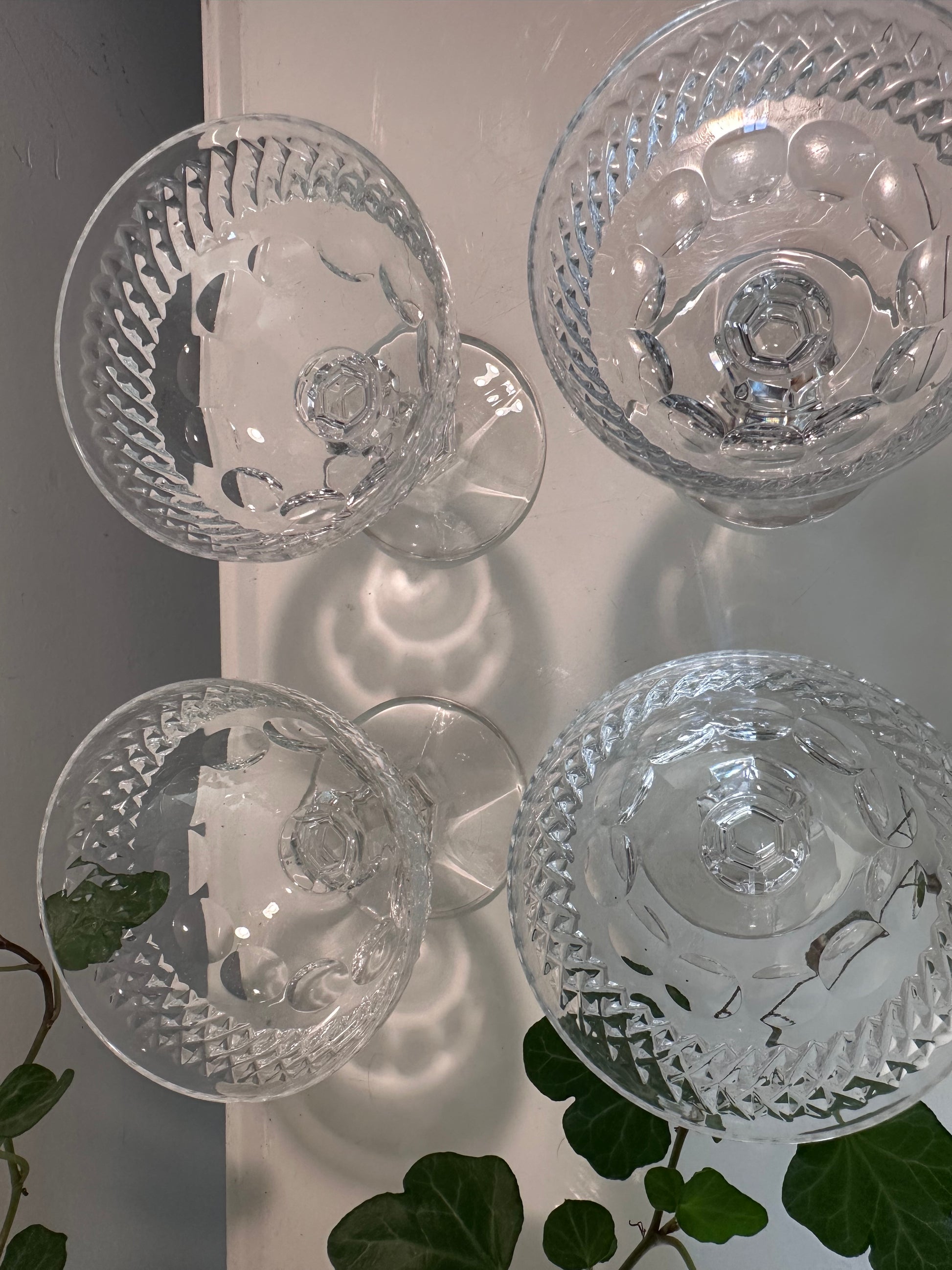 Wat is kristal glaswerk toch mooi. Dit zijn vier vintage kristallen likeurglaasjes. Ze hebben een fraai uitgeslepen design en in een top vintage staat. Dateren jaren 60 en afkomstig uit Duitsland.