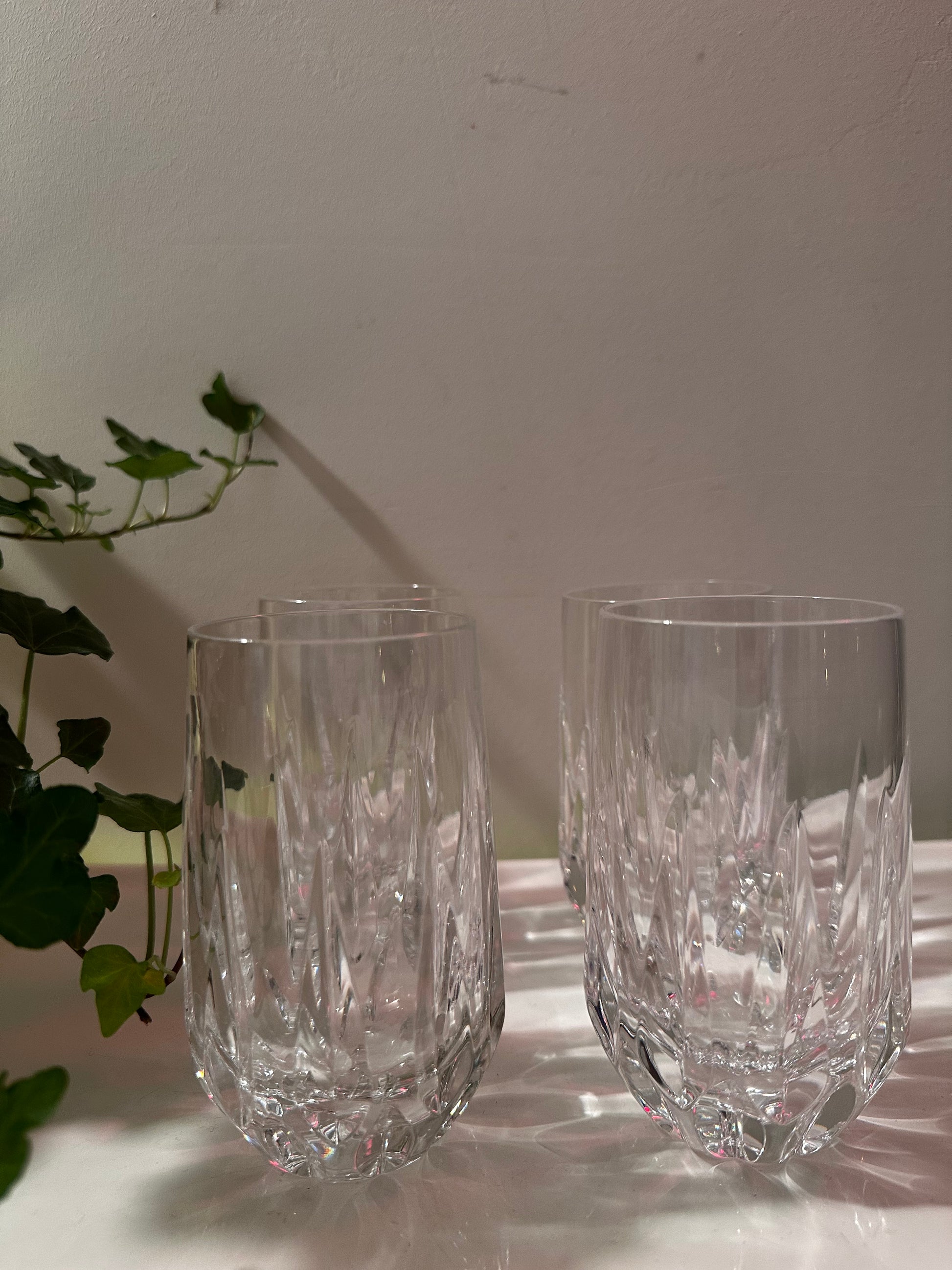 Een wonderschone set van 4 kristallen waterglazen. Prachtig op een mooi gedekte tafel. Ze zijn supermooi, van kristal en wat zwaardere modellen.