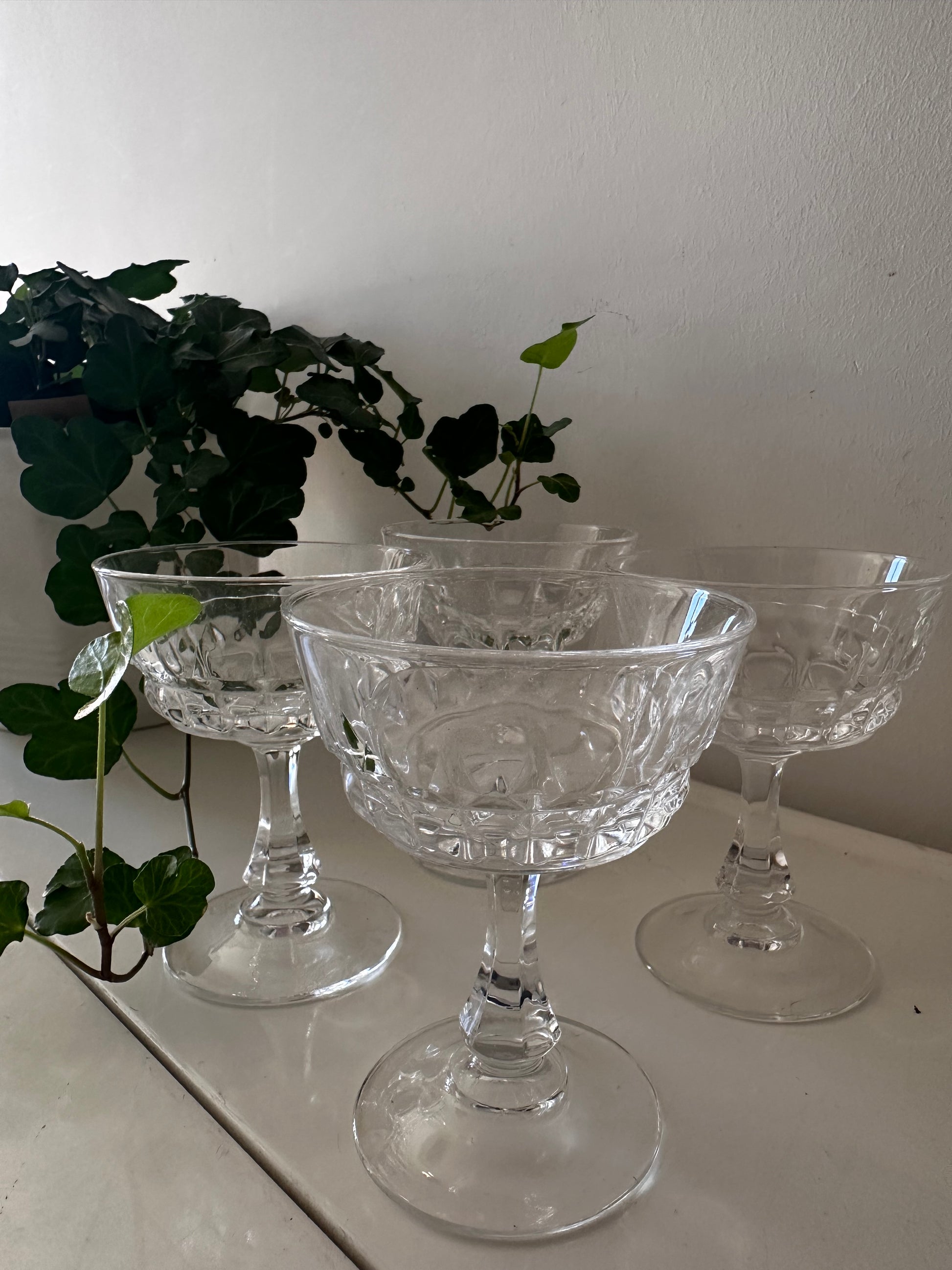 Set van 4 prachtige kristallen likeurglaasjes. De glaasjes zijn in een super vintage staat. Staan op een wat hoger pootje en hebben een mooi design