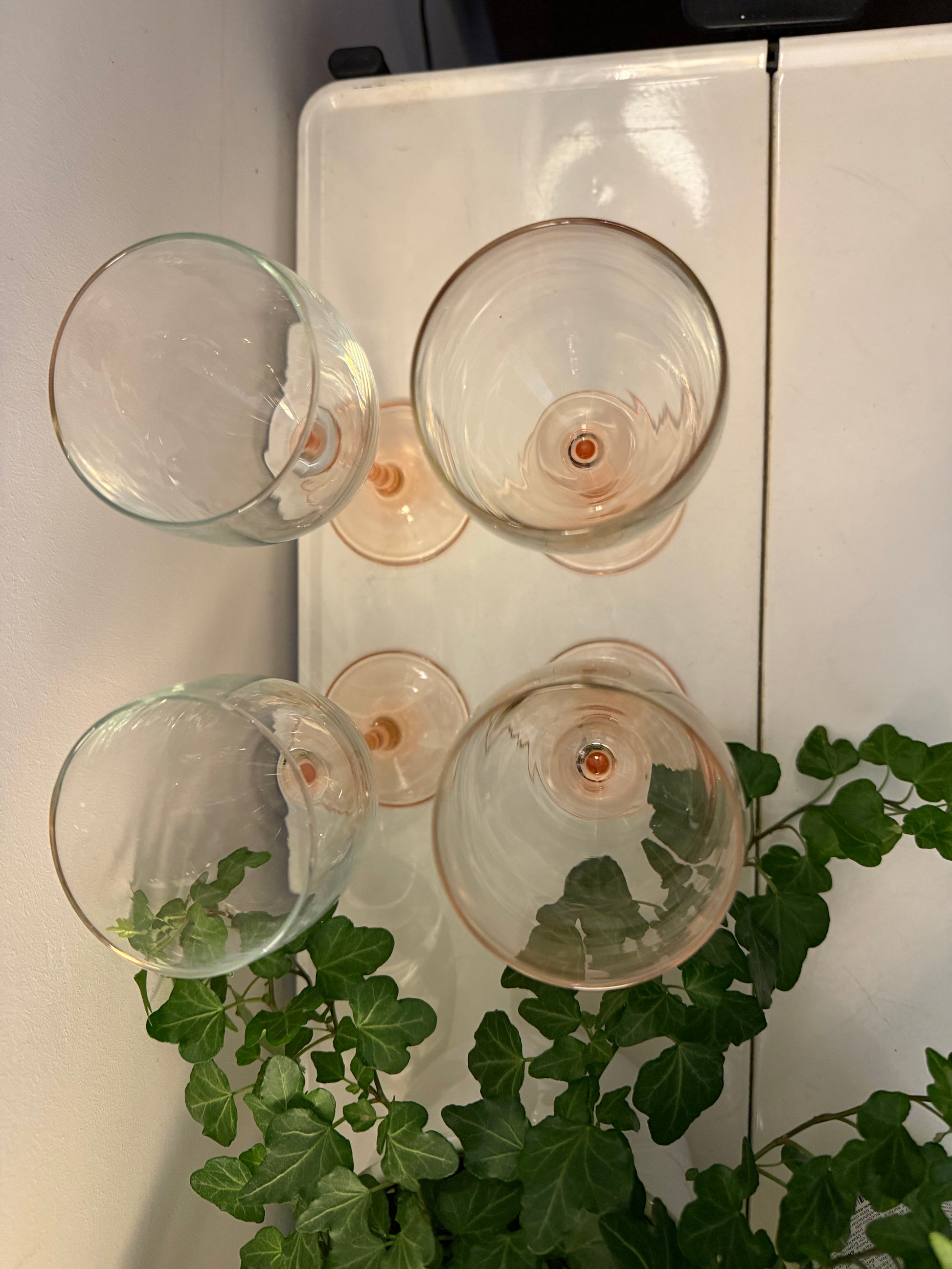 Set van 4 wijnglazen op roze oranje voet