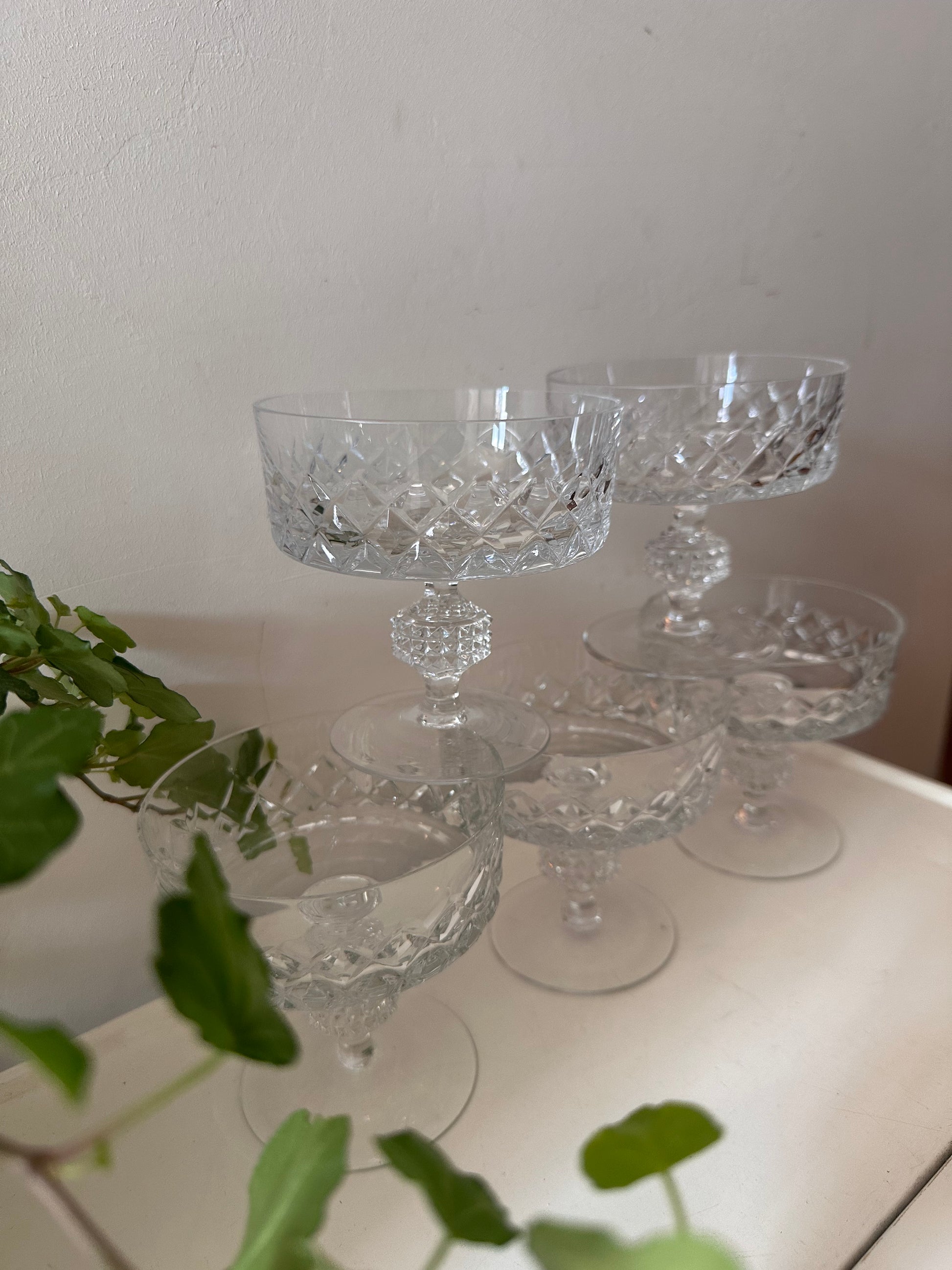 Set van 5 kristallen coupe champagne glazen