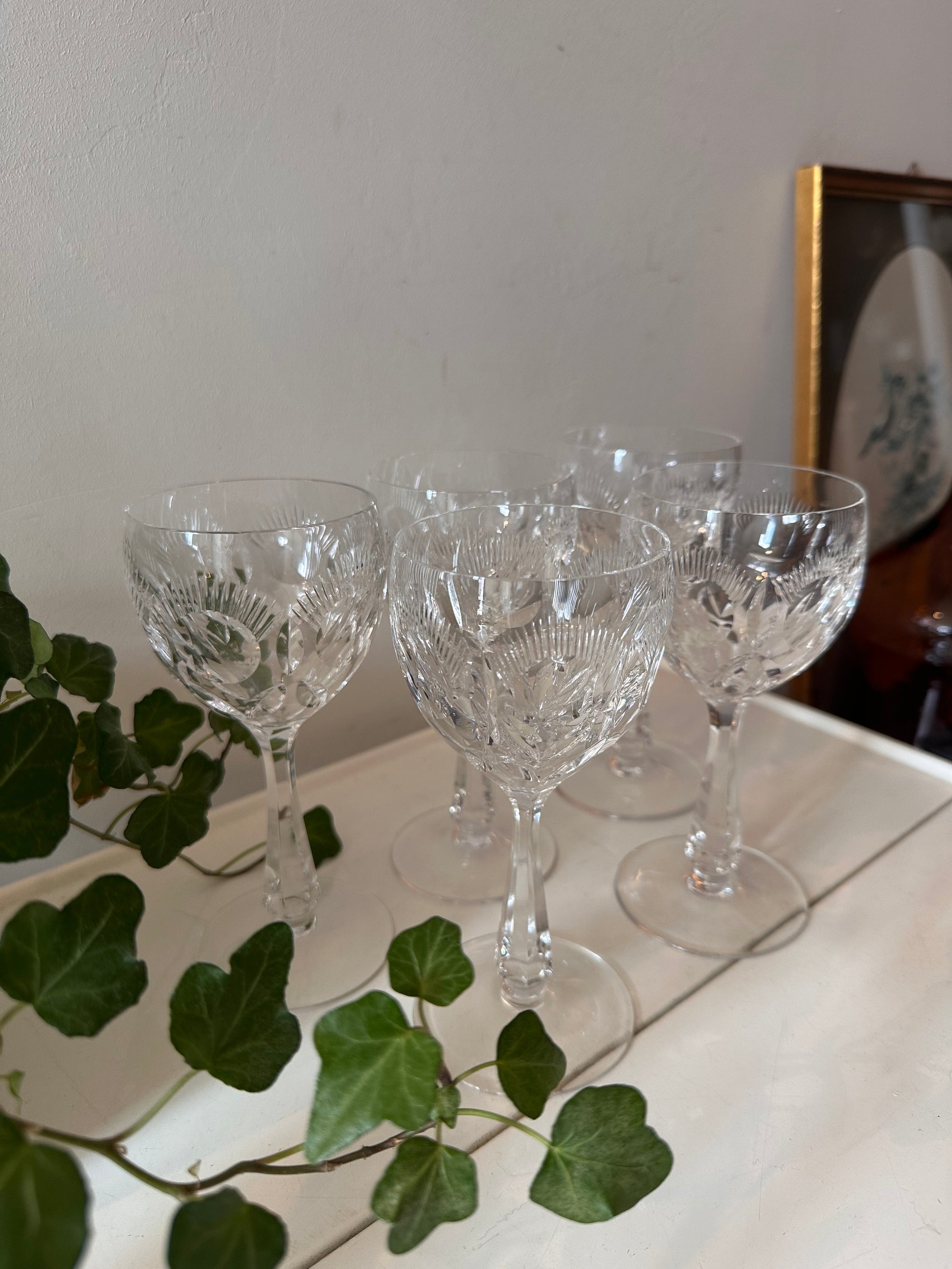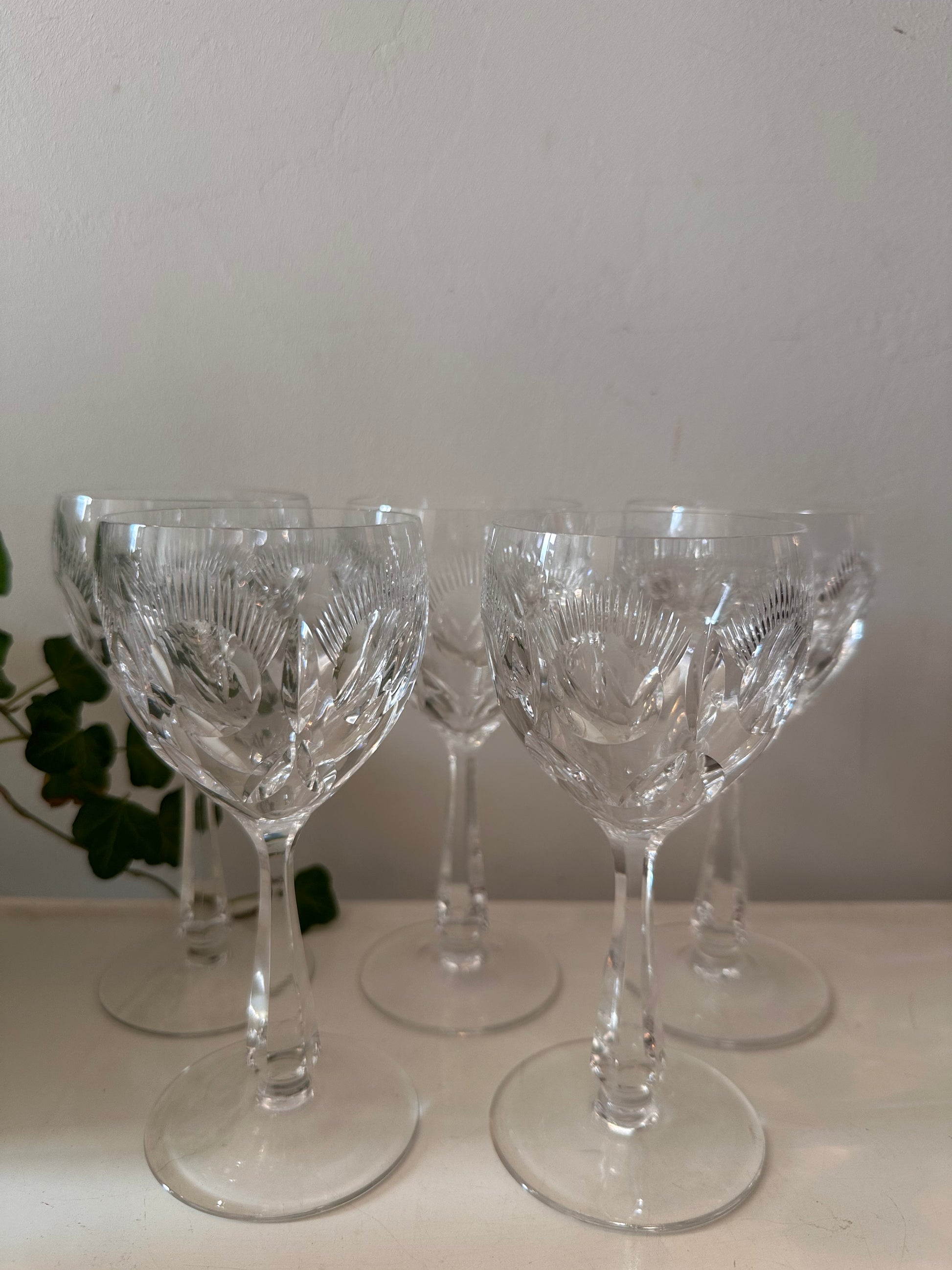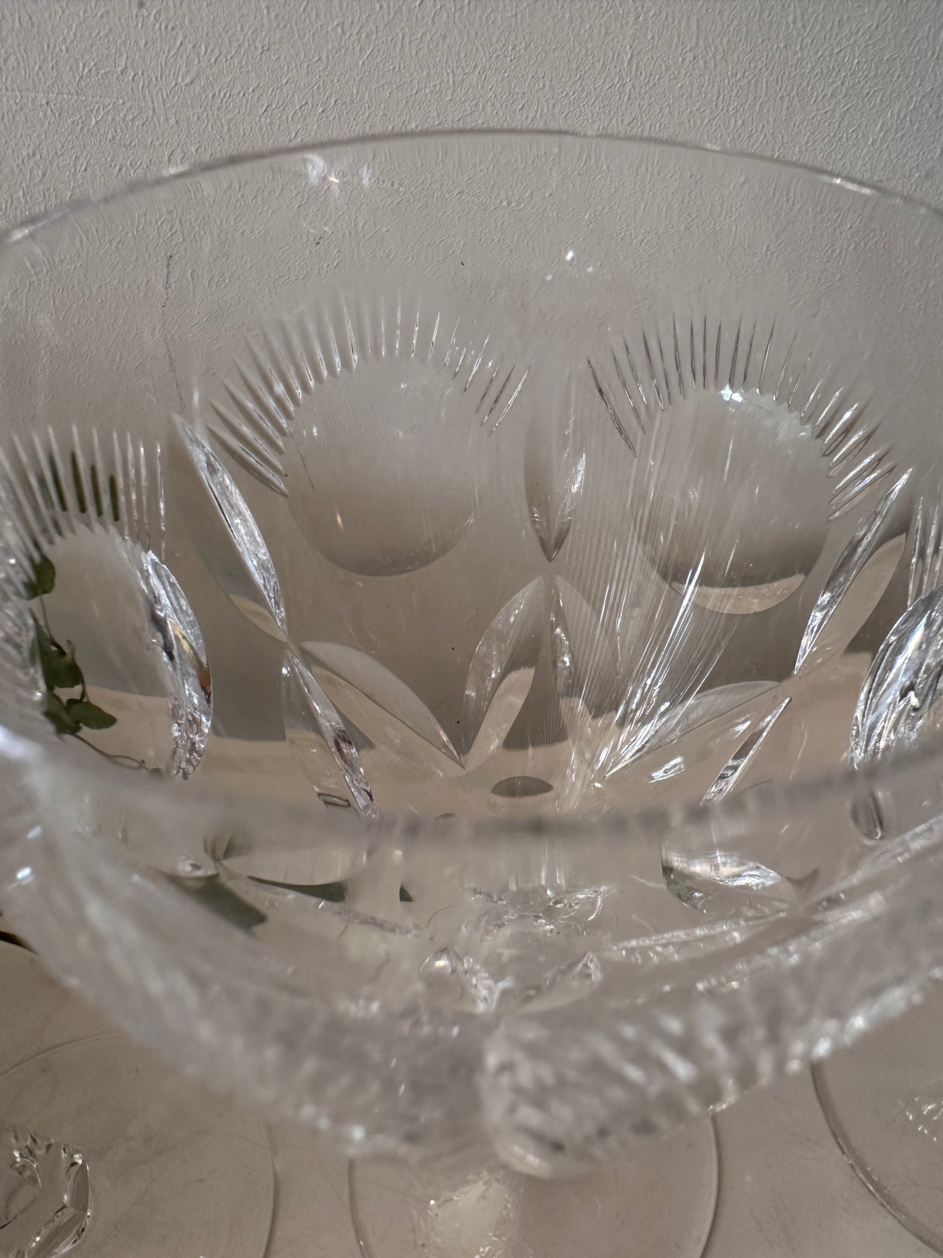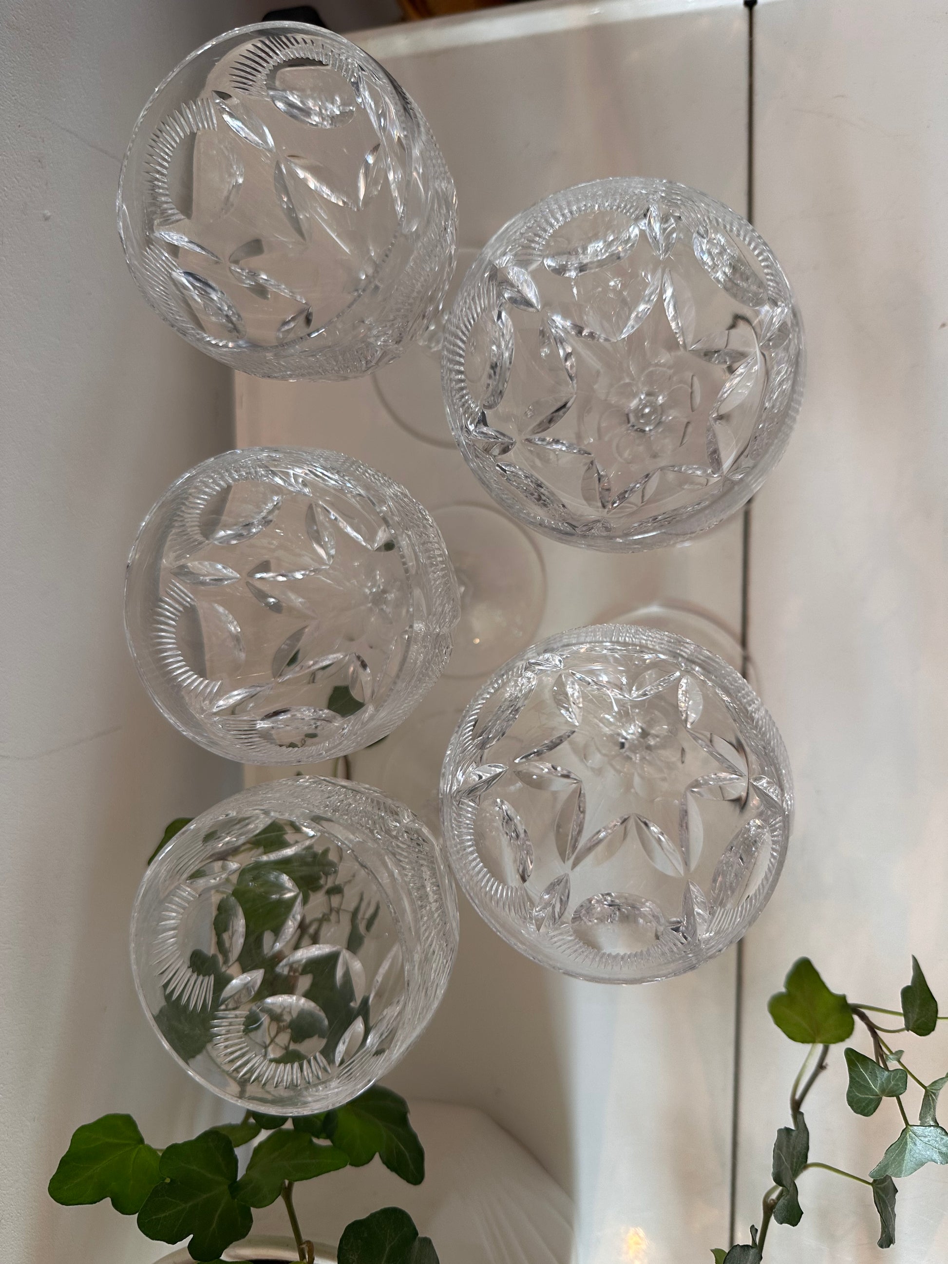 Chique set met die typische jaren 70 uitstraling – helder kristal, elegante steel en een fijne belijning in het glas. Super voor een mooi gedekte tafel of als glanzend detail in je vitrinekast. In mooie vintage staat, zonder chips. Q299