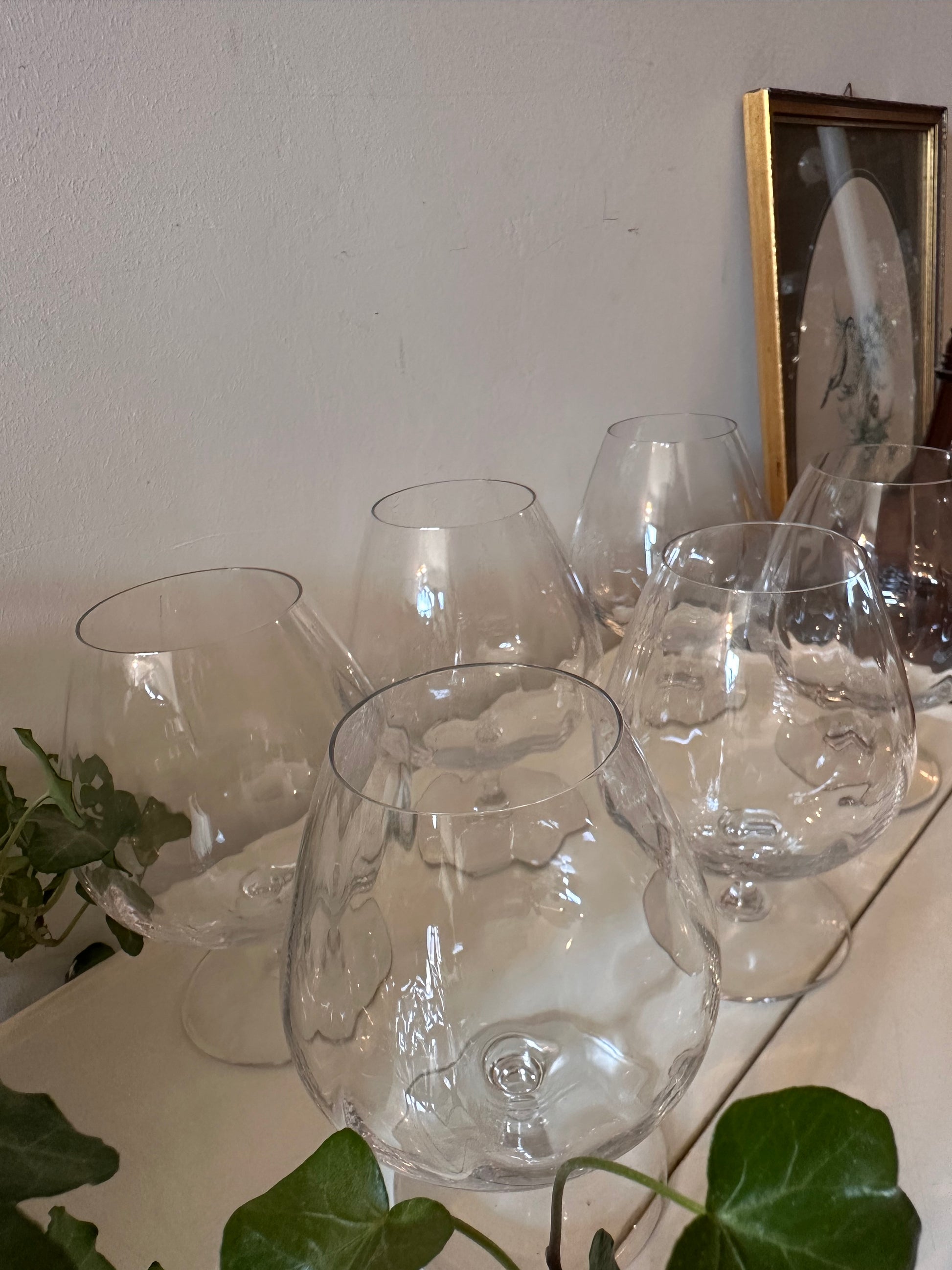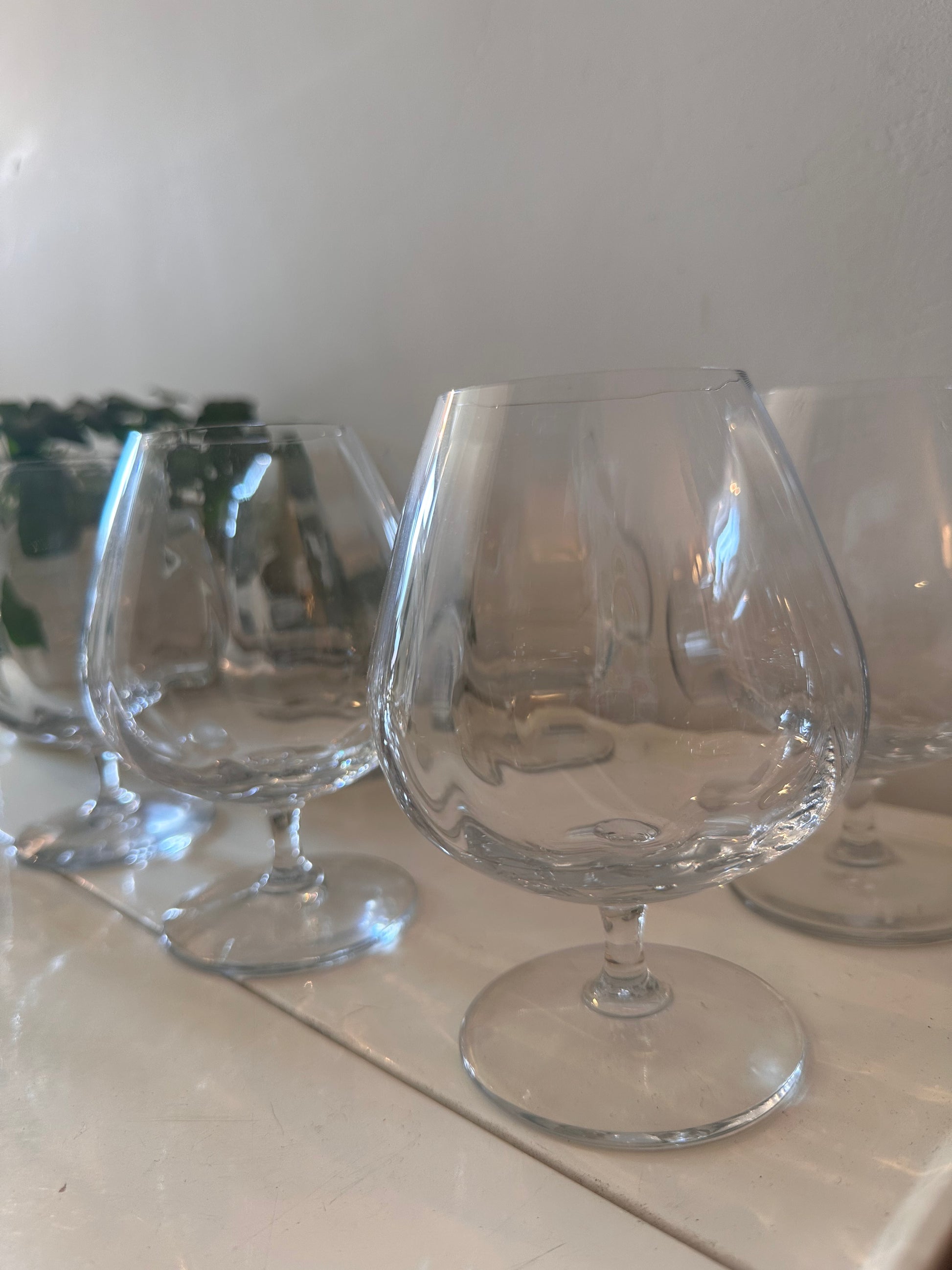 Prachtige vintage cognacglazen van helder kristal. Het leuke detail? De golvende bollingen in het glas, waardoor ze een sophisticated look krijgen. Ze liggen fijn in de hand en hebben een mooie balans – ideaal voor cognac, likeur of gewoon een stijlvol drankje. Q318