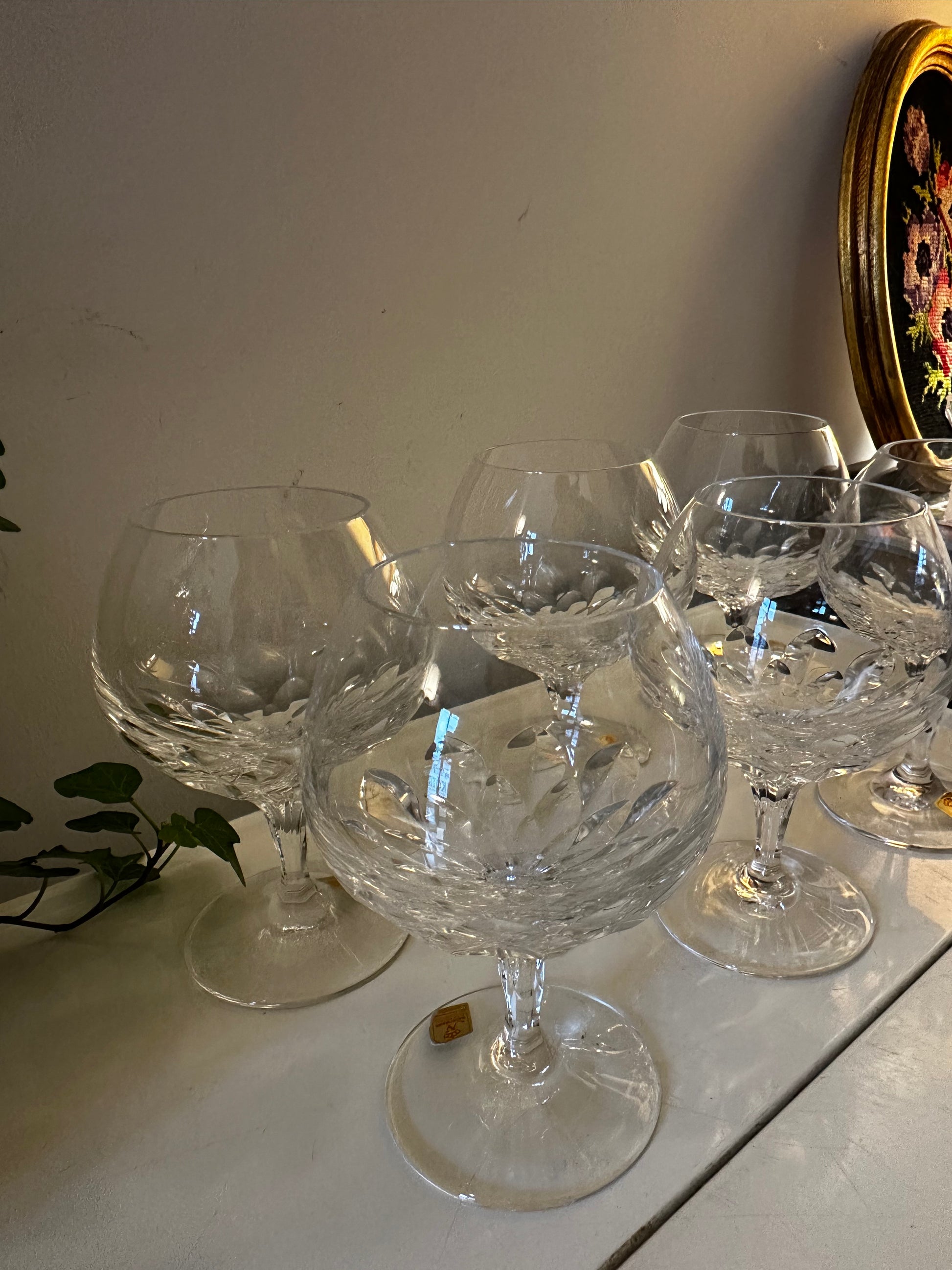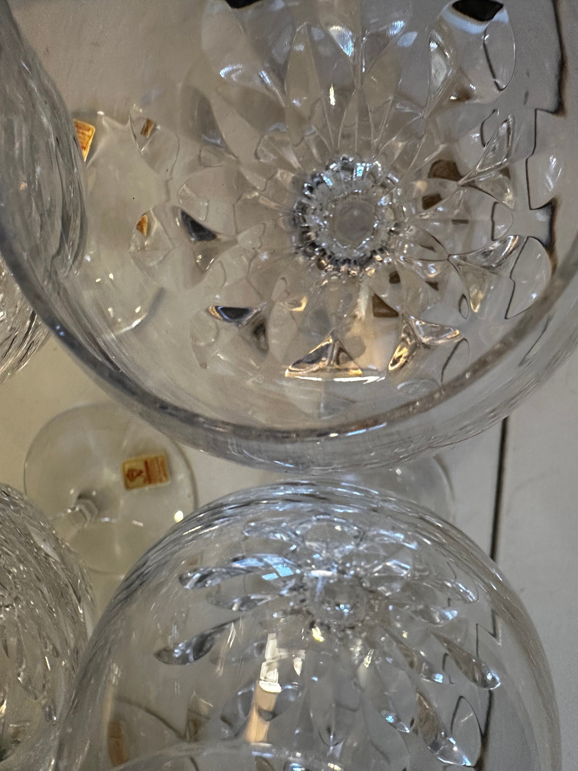 Mooie set van zes kristallen glazen van Nachtmann, met dat kenmerkende geslepen patroon waar het merk om bekend staat. Heldere kwaliteit en nog met originele stickers — echt een klassieke Duitse kristalset. Q384