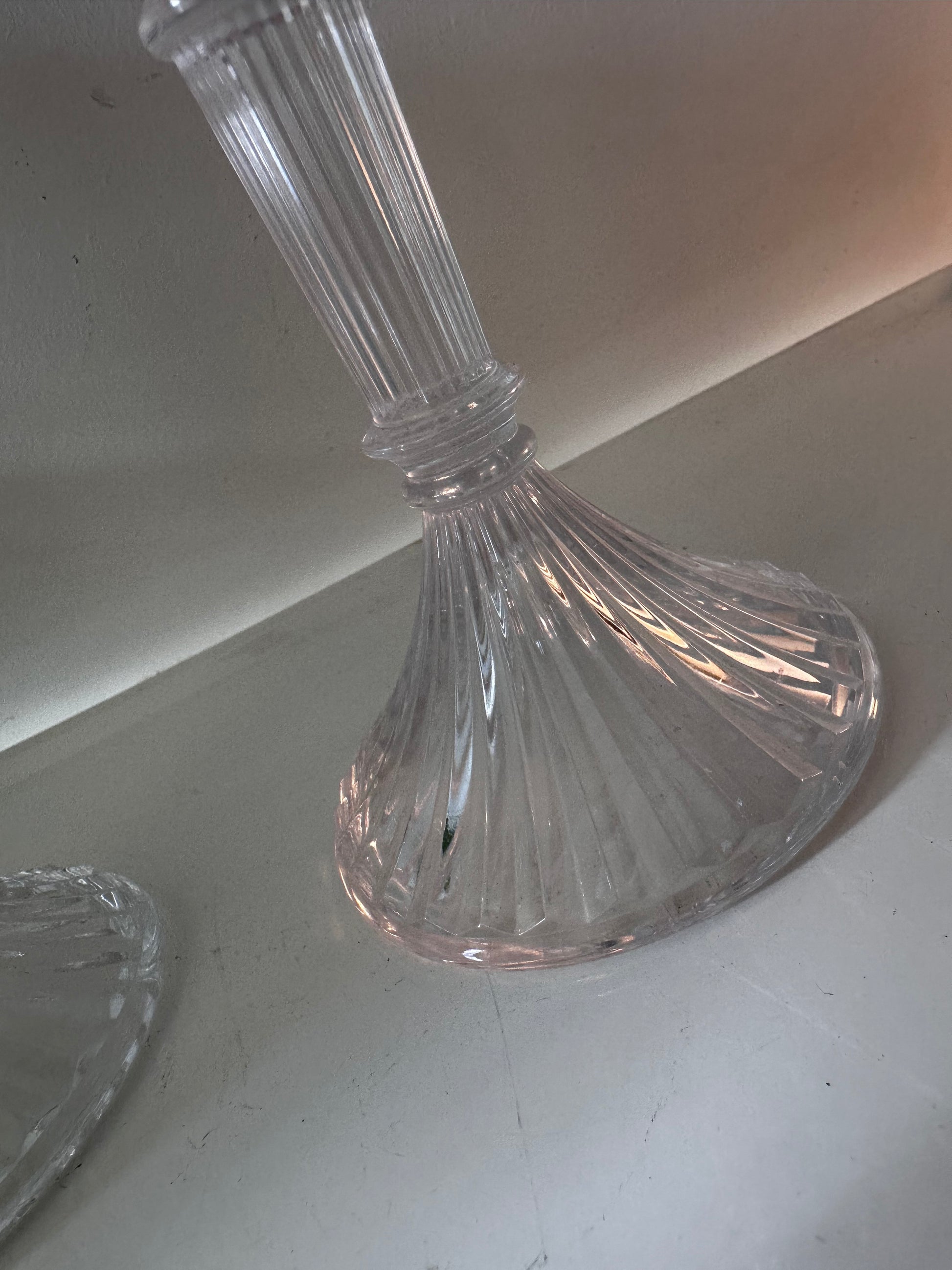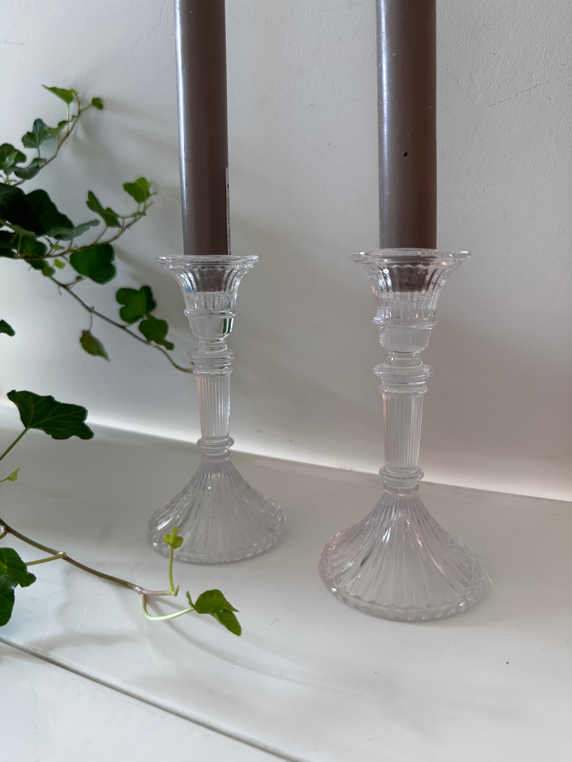 Een set van twee prachtige elegante kandelaars. De kandelaars hebben een mooie ranke vorm en design. De kandelaars zijn in een top vintage staat