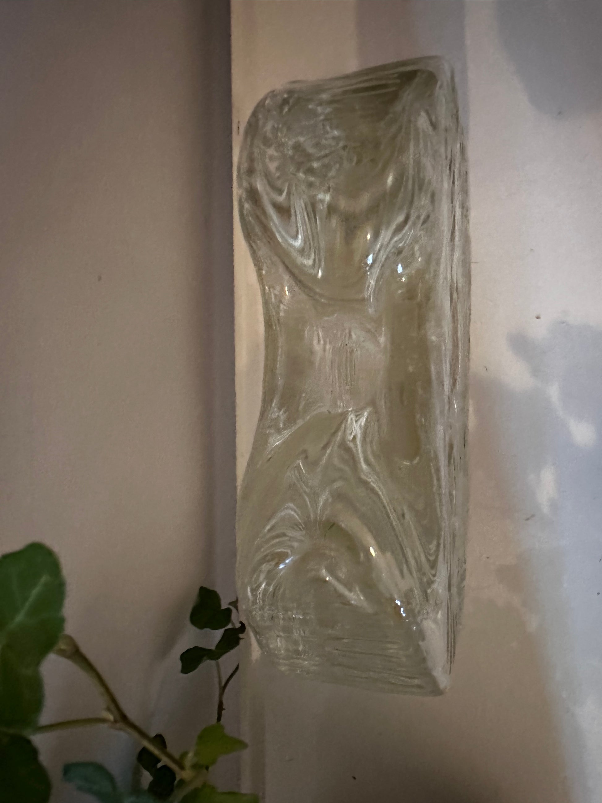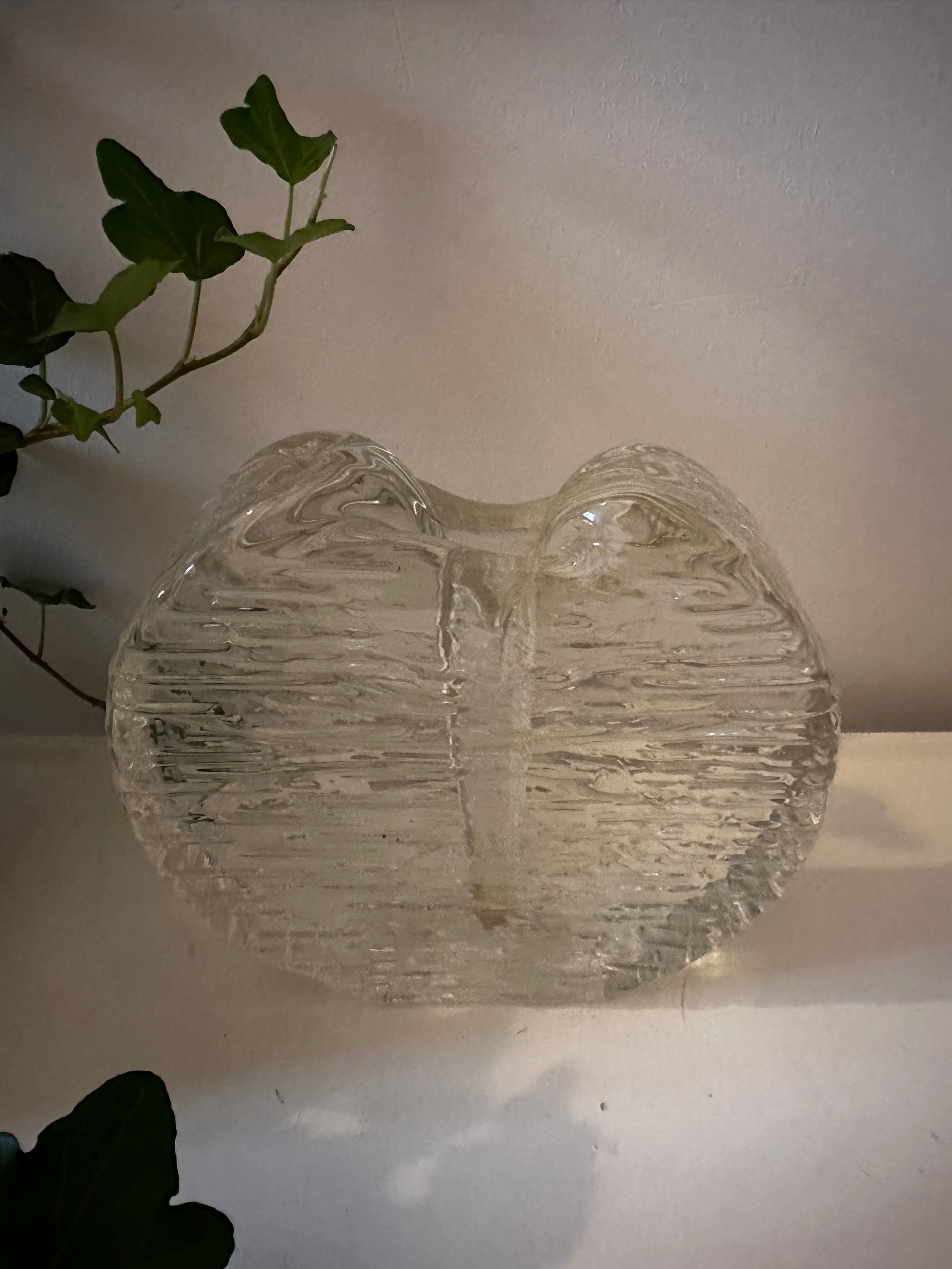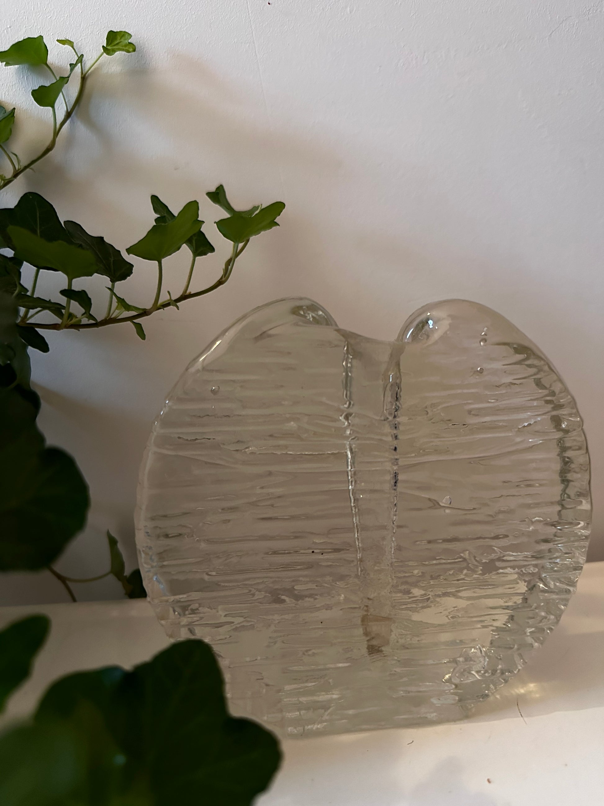 Een te gekke Solifleur blockvaas. Deze vaas is van kristal en in een mooie vintage staat. Vaas heeft een lijnen motief maar hier en daar ook een luchtbelletje wat de vaas een speels effect geeft.